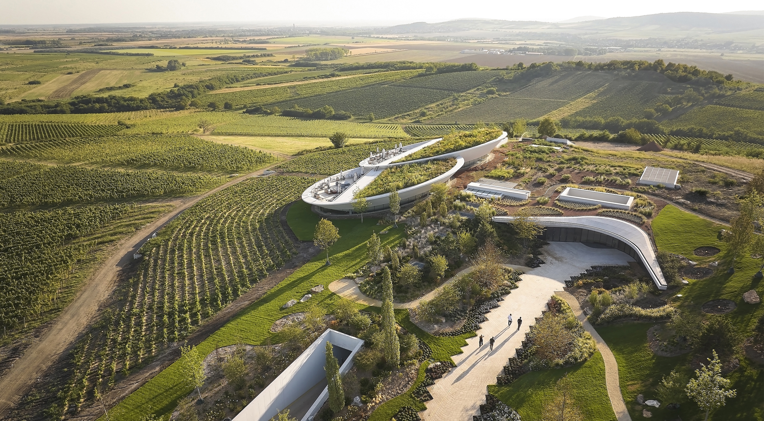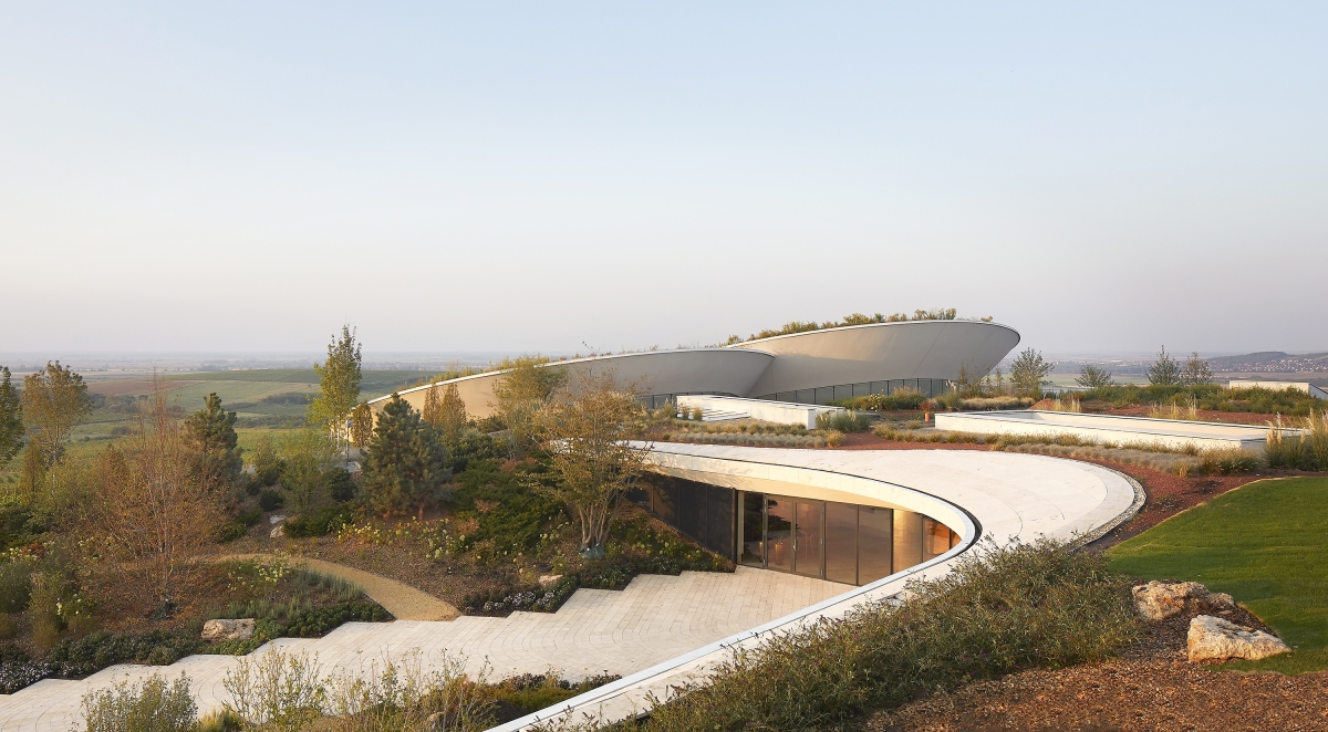 Sauska Tokaj Winery is located in the UNESCO-protected wine region of Tokaj-Hegyalja, Hungary. The project aimed to create a striking, modern winery primarily focused on fresh, dry white wines and champagnes, while also incorporating spaces for hospitality and gastronomy. Situated in the hilly area around the key settlements of the wine region, the building seamlessly integrates with its surroundings.