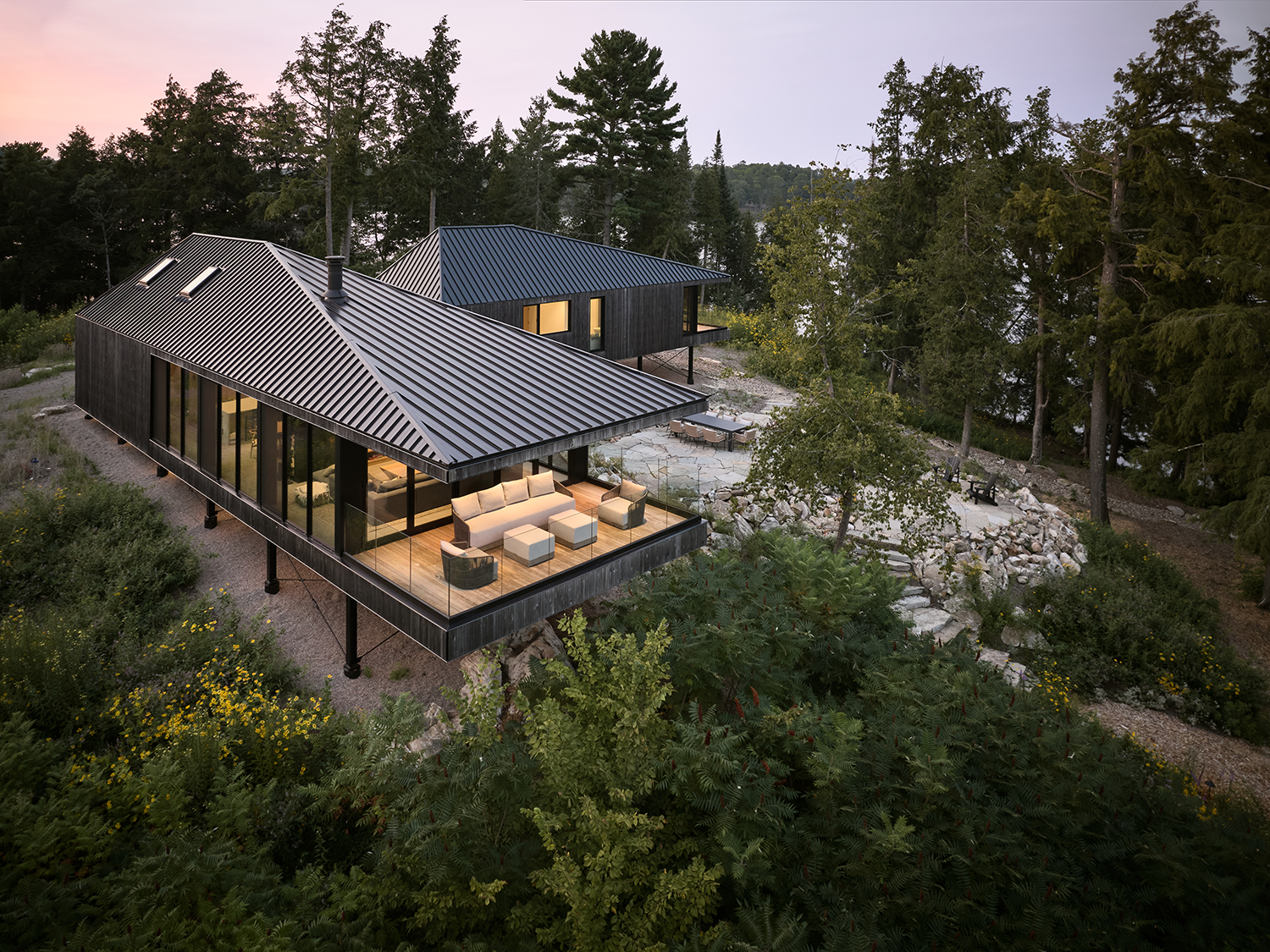 Conceived as an off grid, net zero family relaxation destination, this project presented the opportunity for a young Toronto based family to rekindle nostalgic childhood memories by designing a cottage on the lake they had spent their summer months as children. Born out of a desire to spend time in the natural environment with their two growing children, sustainable practices were placed at the forefront of the project design and construction practices. This is reflected in it’s integration of modern construction techniques and lightweight materials that reduce environmental impact and ensure efficiency.
