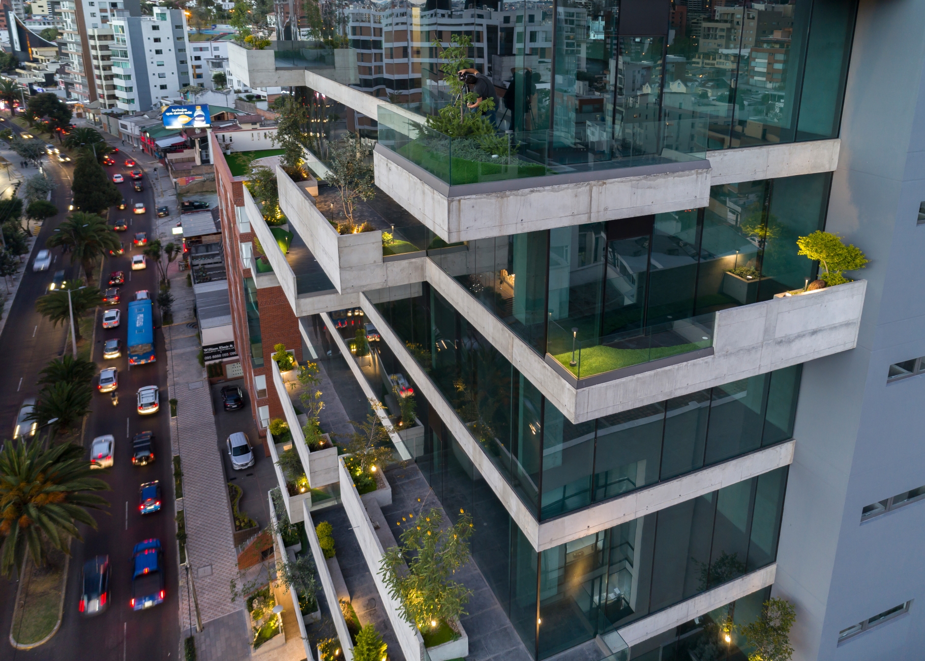 Located in Quito, CORPORATIVO 194 redefines the horizontal office through asymmetrical garden terraces that blur the boundaries between indoor and outdoor space. Horizontally and vertically arranged, these gardens integrate the building into the urban fabric, offering a distinct architectural experience. Using native plants, they serve as vertical connectors that reconnect users with their environment. LEED Platinum certified, the project merges nature and architecture while challenging conventional limits.