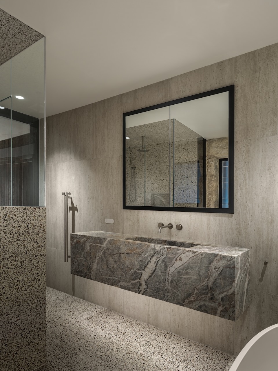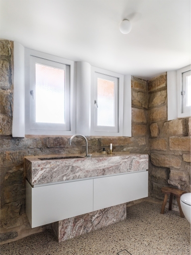 We faced the challenge of modernising a space steeped in history without erasing its story. We embraced the existing sandstone walls and integrated them with newly chosen materials such as terrazzo floors, opaque glass bricks, and timber panelling. We focused on improving functionality while respecting the original architecture, optimising the lower ground light restricted areas for better interaction and light. Sustainability was a cornerstone—selecting durable, timeless materials to reduce future environmental impact. We adhered to a strict budget, maximising impact in key areas, and collaborated with local craftsmen to ensure every detail was precisely as envisioned.