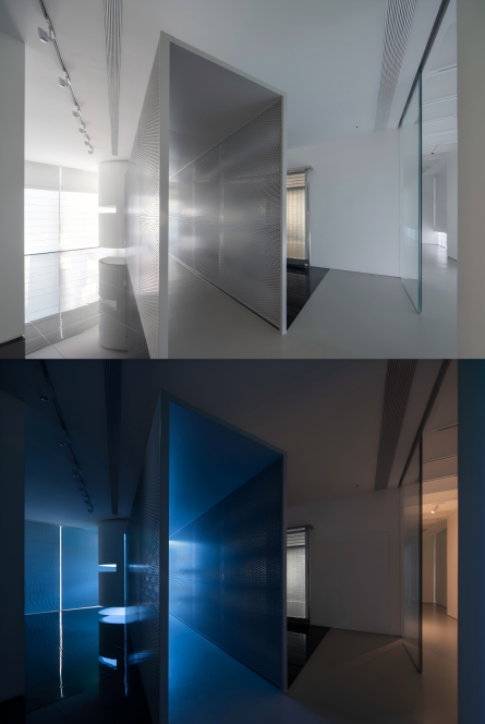 The spatial experience unfolds through six steps—Turn, Step Back, Transition, Slow Down, Light Leaks, and Heart. Two turns shift perspectives and lead into the hall; setback spaces form external exhibition areas where light flows naturally; folding creates spatial hierarchy that broadens horizons; a slower pace reveals the inner rhythm in light; cracks allow light to enter, symbolizing insight born from imperfection; and finally, the multifunctional hall concludes the journey as the spiritual axis, symbolizing wisdom and unity.