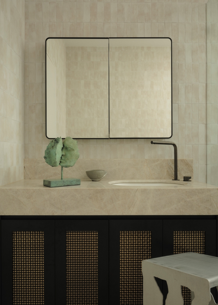 A cultivation of tactility and stillness through Private spaces - including the own private bathrooms (Taking 'His' and 'Hers' to new heights), as well as a custom made-to-size stone bath, temper the aforementioned bravado with a resolution that promotes connection - both to one’s self and equally to those we love.