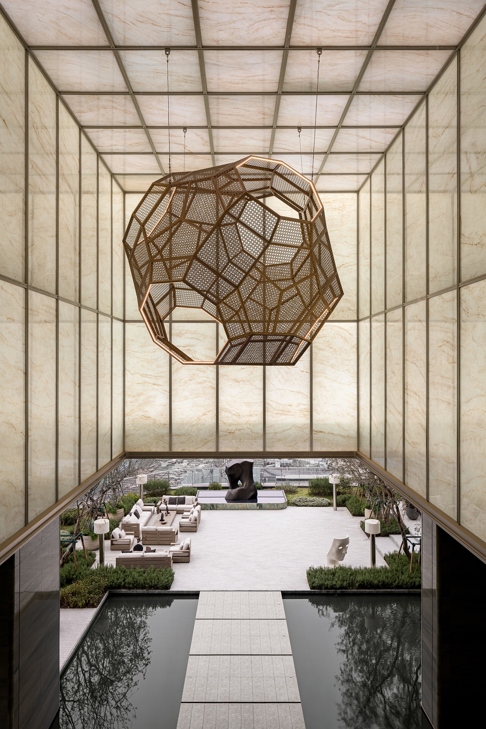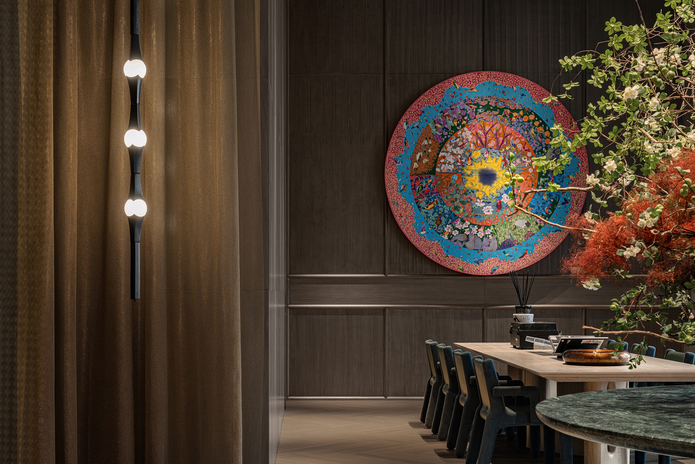 This case fuses Chongqing's fantastical DNA with global aesthetics, crafting an urban sanctuary where art and nature coalesce at the heart of Guanyinqiao commercial district. Layered spatial storytelling generates visual intensity through modern geometric reincarnations of traditional bamboo weaving, spiral installations echoing Eastern paper art's film-like unfurling, and artisanal warmth radiating from jade-sliced glass and custom silk carpets. Functional zoning transcends conventional paradigms as art galleries, private lounges, and tiered gardens engage in multidimensional dialogues. Material collisions and light choreography amplify immersive experiences, ultimately using "Chongqing Resonance" as medium to guide urban dwellers through reality-dream interweavings, awakening personalized lifestyle aesthetics through architectural alchemy.