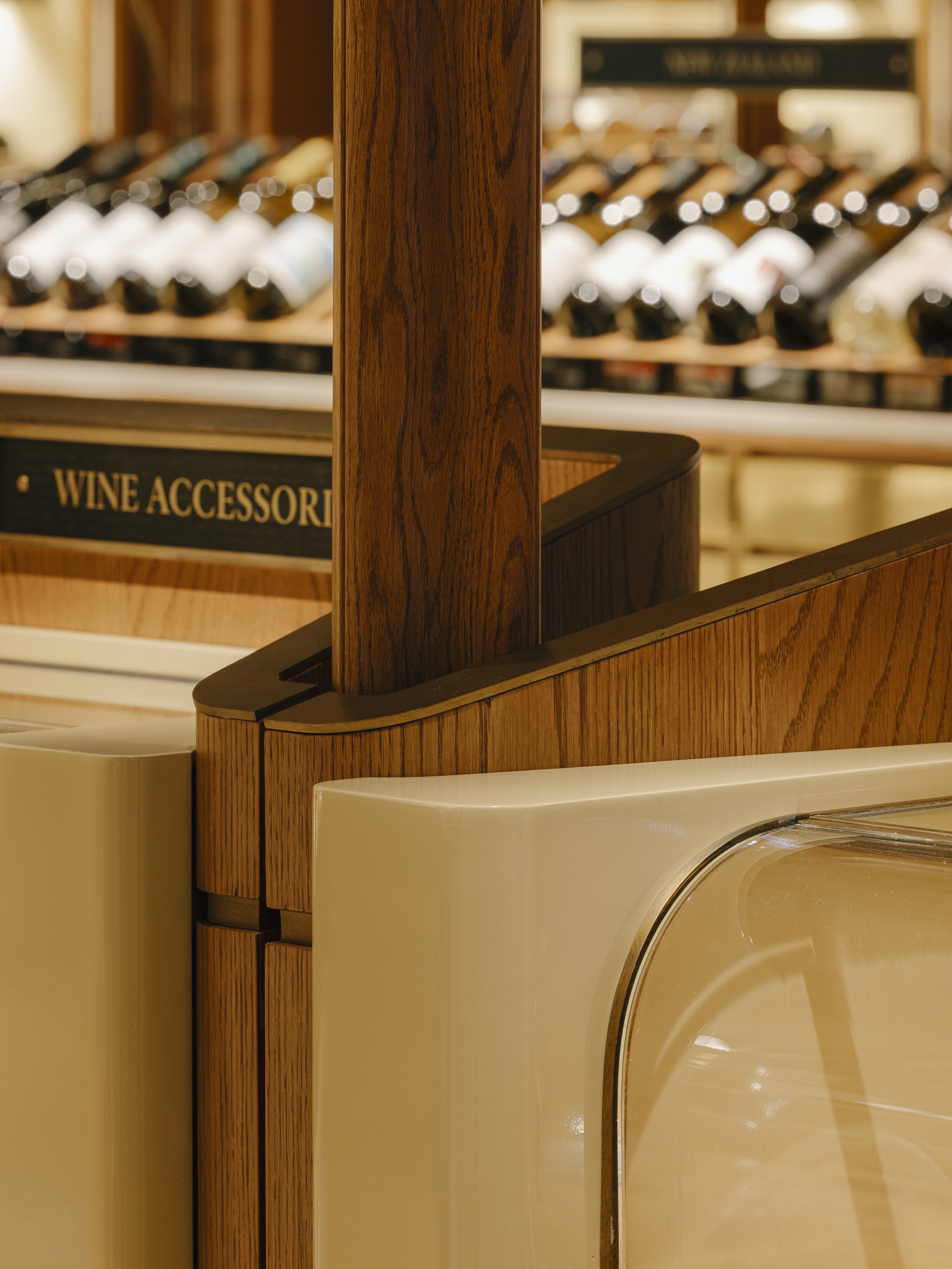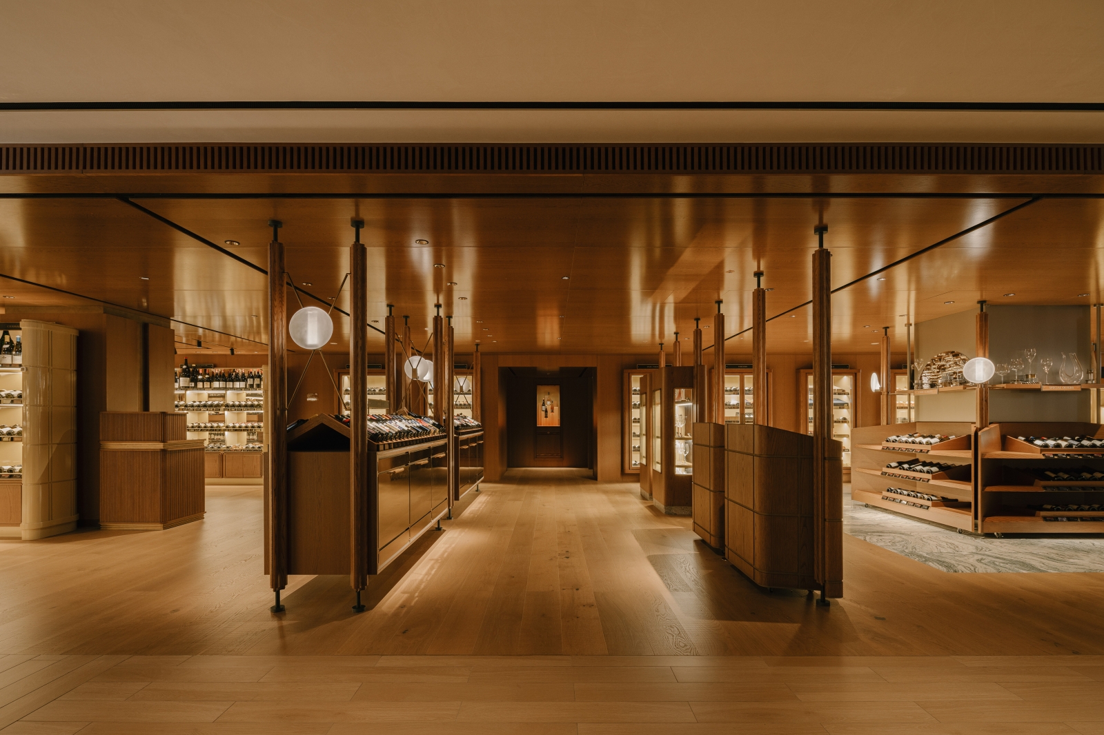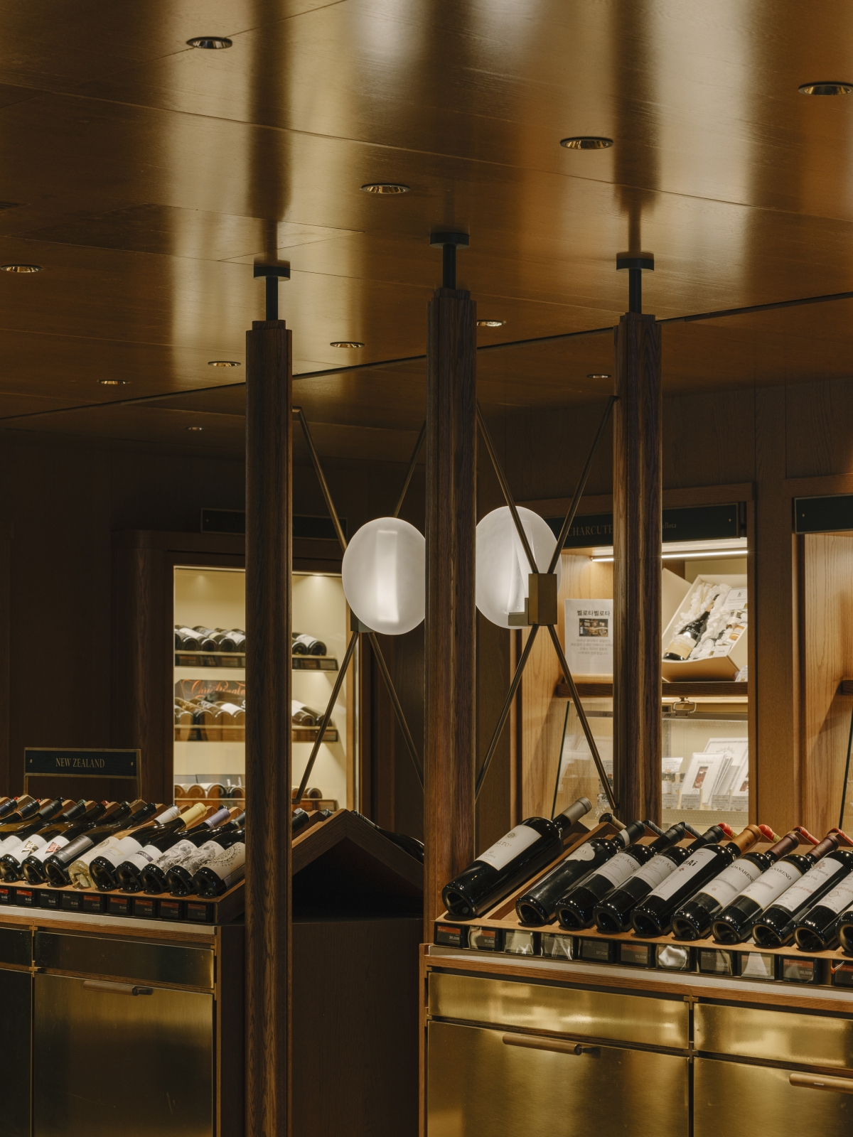 We reimagined the travel and retail space in the heart of Shinsegae’s Gangnam flagship through a gastronomic experience, curated wine and premium cellar, and a living mezzanine, anchored by a connecting central atrium. Moving past transactional retail, we envisioned an environment that comforts and invites customers to linger. By capturing the essence of a home—familiar, layered, and soft—we designed a retail space where ritual replaces routine. The material palette reinterprets 1950s mid-century glamour and luxury through a contemporary retail lens. Solid timber anchors the space, its warmth offset by brass and high-gloss lacquer planes. Deep jewel-toned upholstery provides tactile counterpoints, while reflective, mirrored surfaces multiply spatial perceptions and create space within space. More than a transitional space, the atrium is reimagined as an inviting social anchor—the core that radiates all light. This was underpinned by the conceptual framework of 'discovery as ritual,' where material contrasts, concealed reveals, and a circadian lighting system that mimic’s time’s rhythm transforms shopping into spatial storytelling.