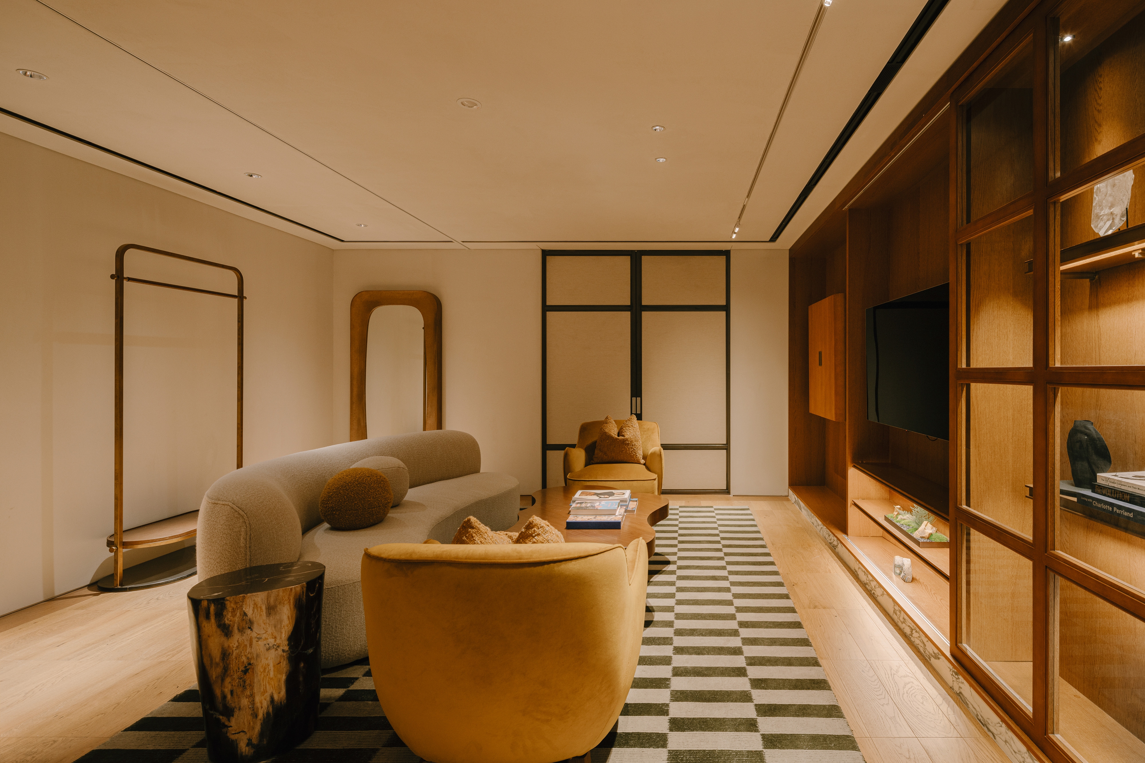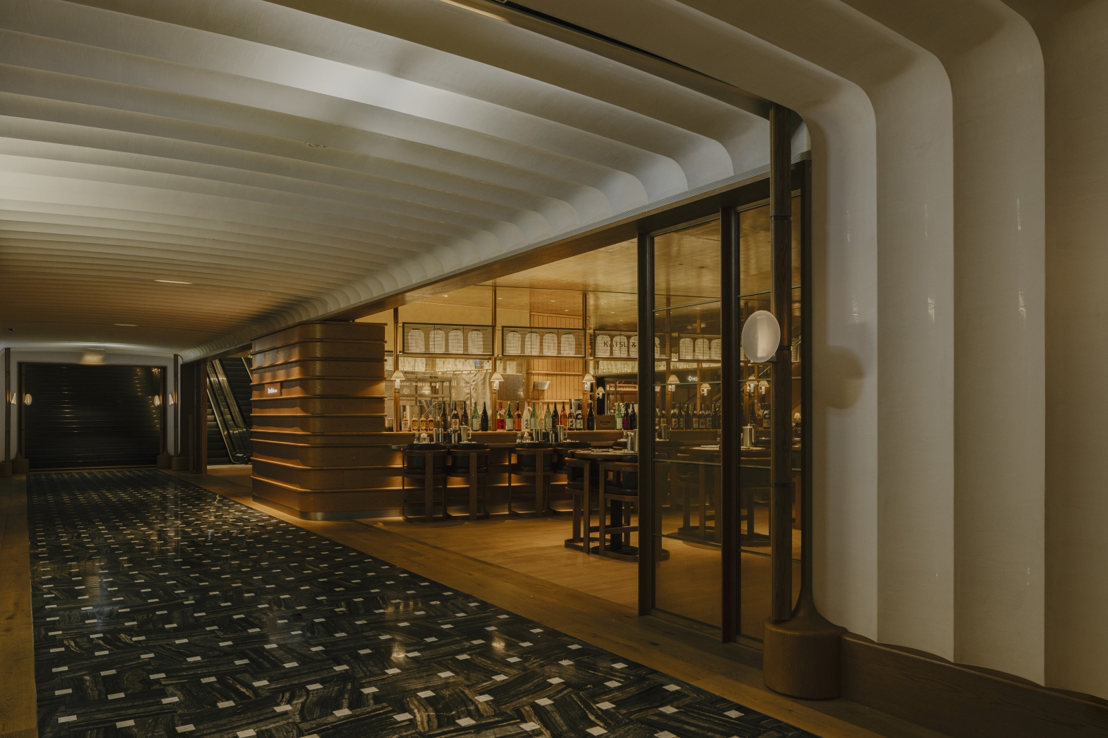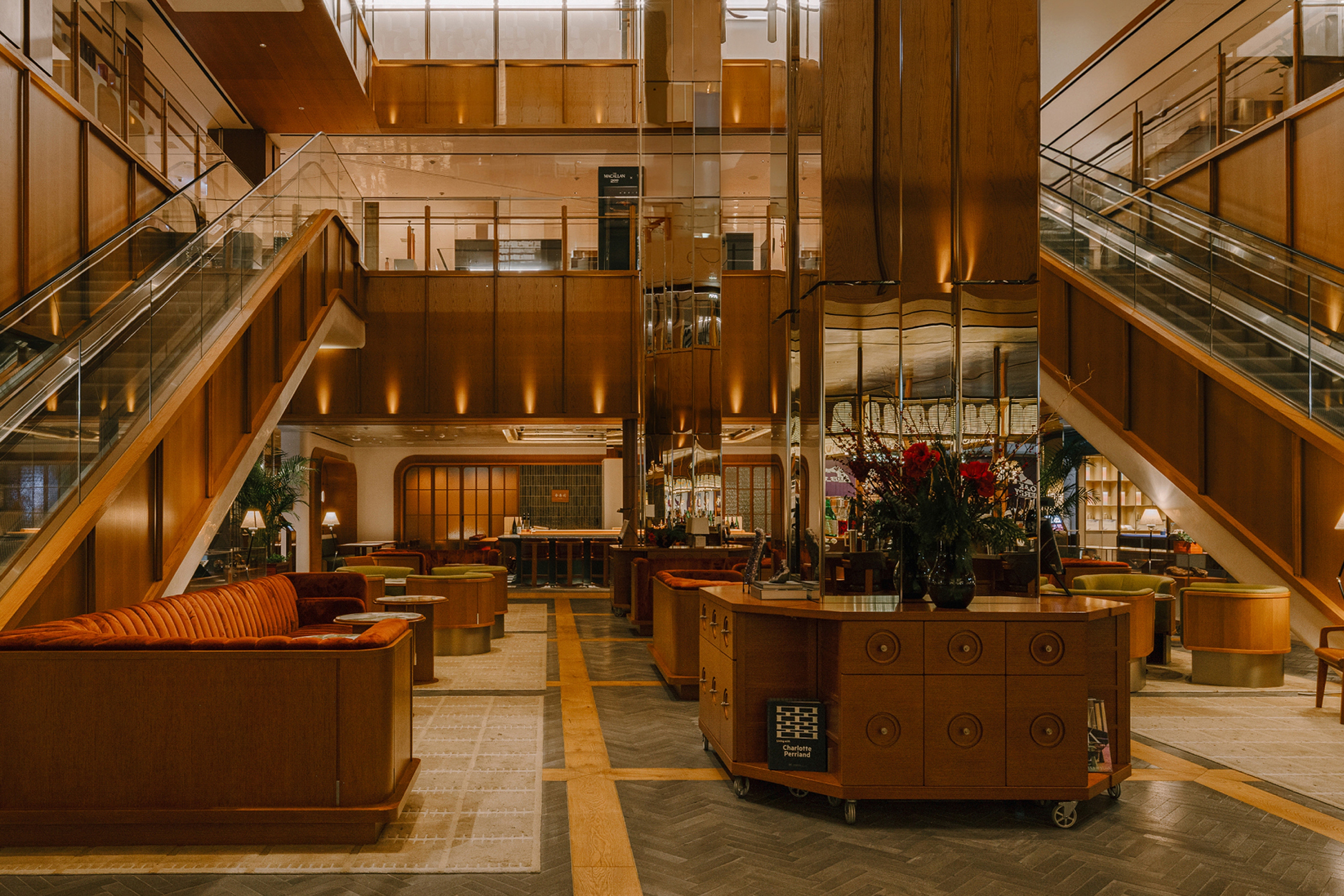 We reimagined the travel and retail space in the heart of Shinsegae’s Gangnam flagship through a gastronomic experience, curated wine and premium cellar, and a living mezzanine, anchored by a connecting central atrium. Moving past transactional retail, we envisioned an environment that comforts and invites customers to linger. By capturing the essence of a home—familiar, layered, and soft—we designed a retail space where ritual replaces routine. The material palette reinterprets 1950s mid-century glamour and luxury through a contemporary retail lens. Solid timber anchors the space, its warmth offset by brass and high-gloss lacquer planes. Deep jewel-toned upholstery provides tactile counterpoints, while reflective, mirrored surfaces multiply spatial perceptions and create space within space. More than a transitional space, the atrium is reimagined as an inviting social anchor—the core that radiates all light. This was underpinned by the conceptual framework of 'discovery as ritual,' where material contrasts, concealed reveals, and a circadian lighting system that mimic’s time’s rhythm transforms shopping into spatial storytelling.