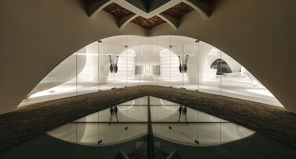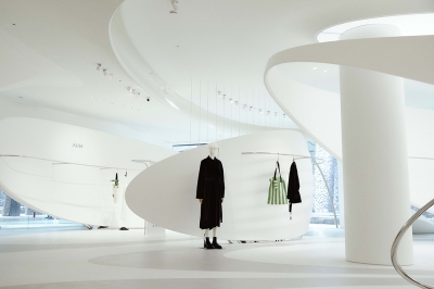 Located at the heart of Marisfrolg Fashion Group’s Shenzhen campus, the 2,900 sq. m Marisfrolg Showroom interiors are informed by the rich textiles, timeless design and precision tailoring embodied within the group’s nine unique labels.