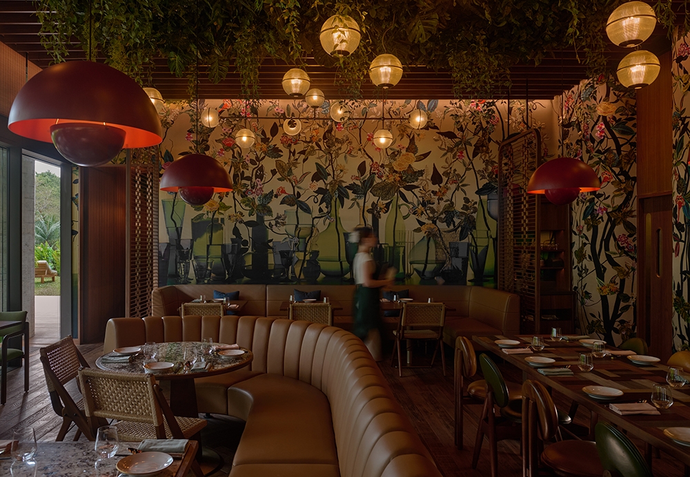 The abundant greenery continues through to Kaya Restaurant where nature playfully takes over, enveloping guests into an oasis. Lush creepers drape from the ceilings, and quirky pendant lights are nestled within. The swim-up pool bar’s greenery is an extension of Kaya's immersive botanically-inspired experience.