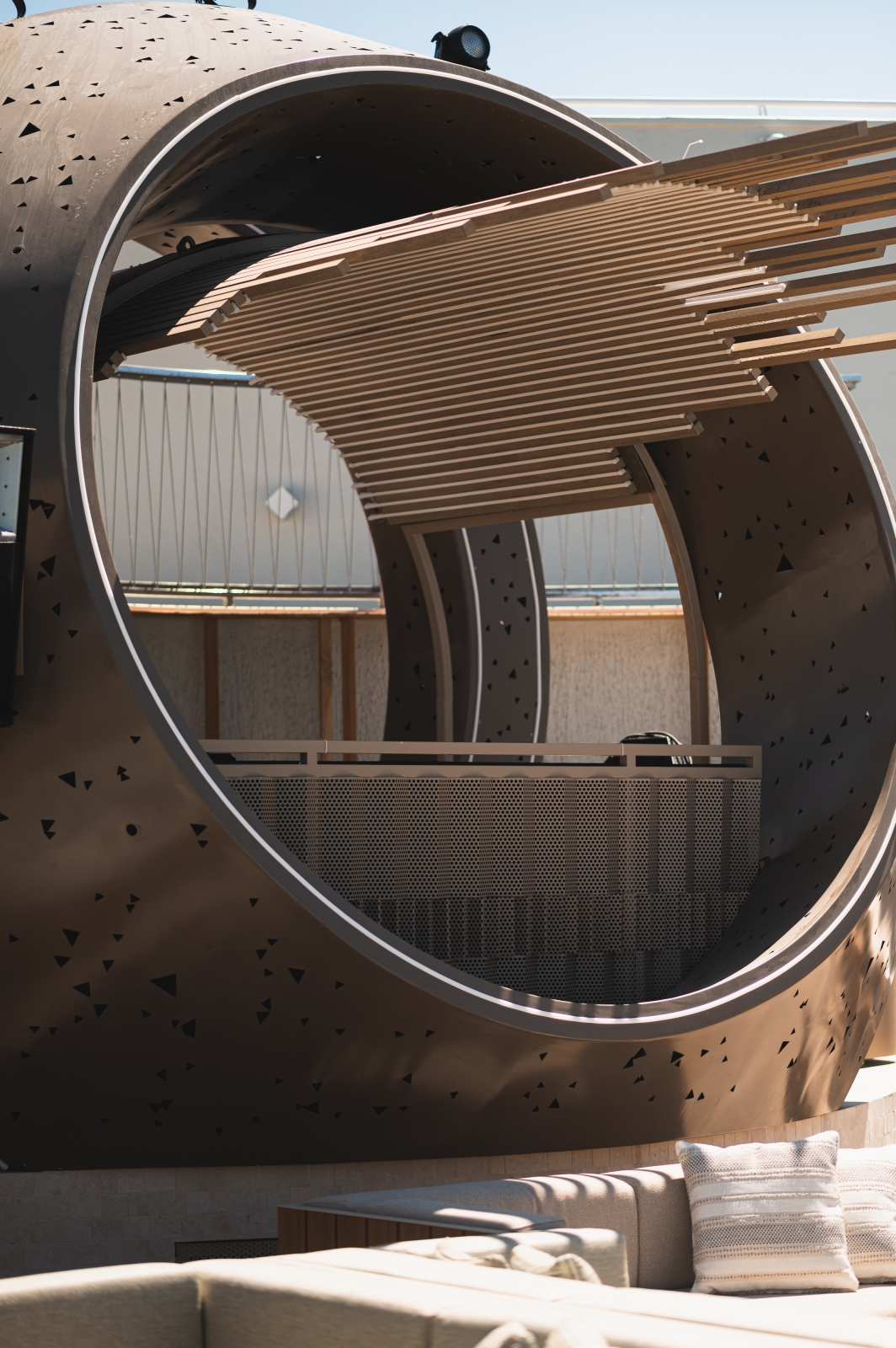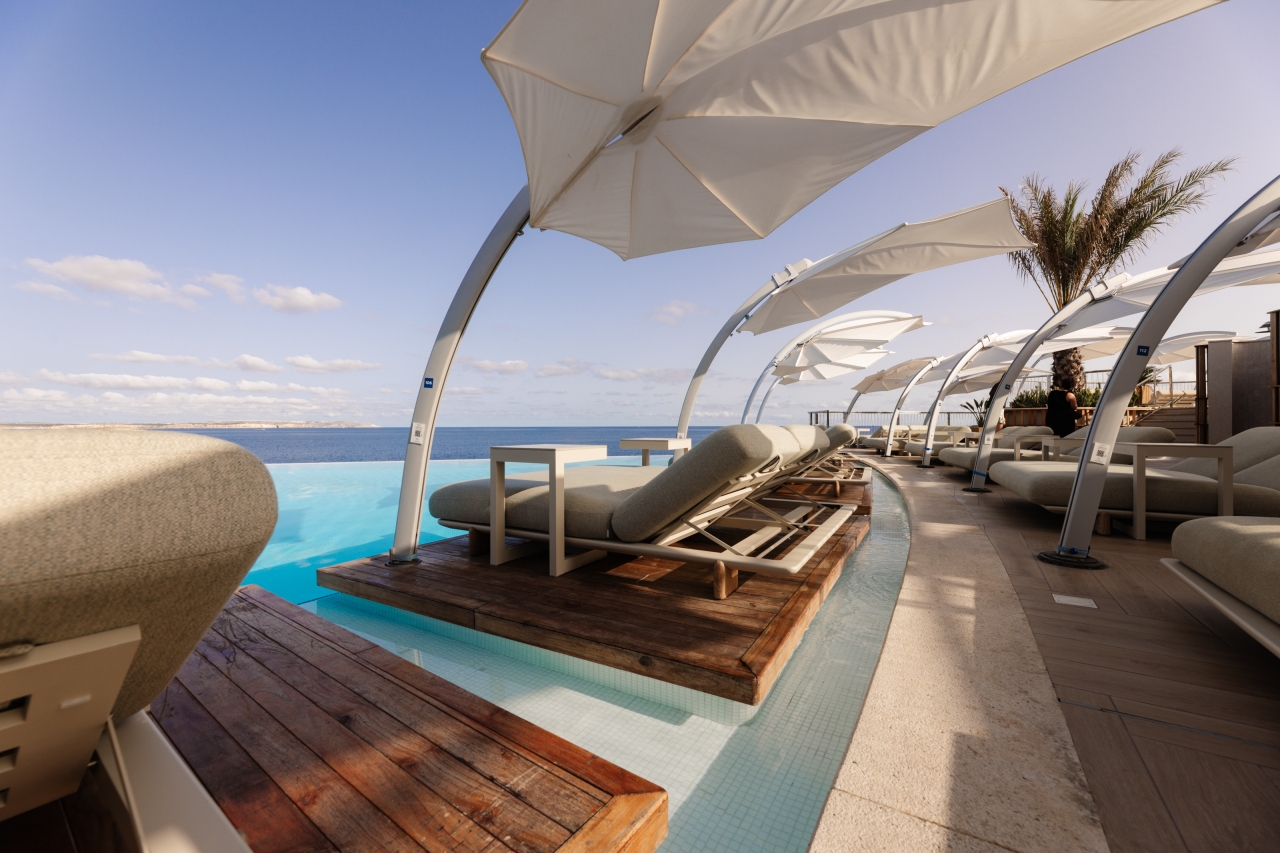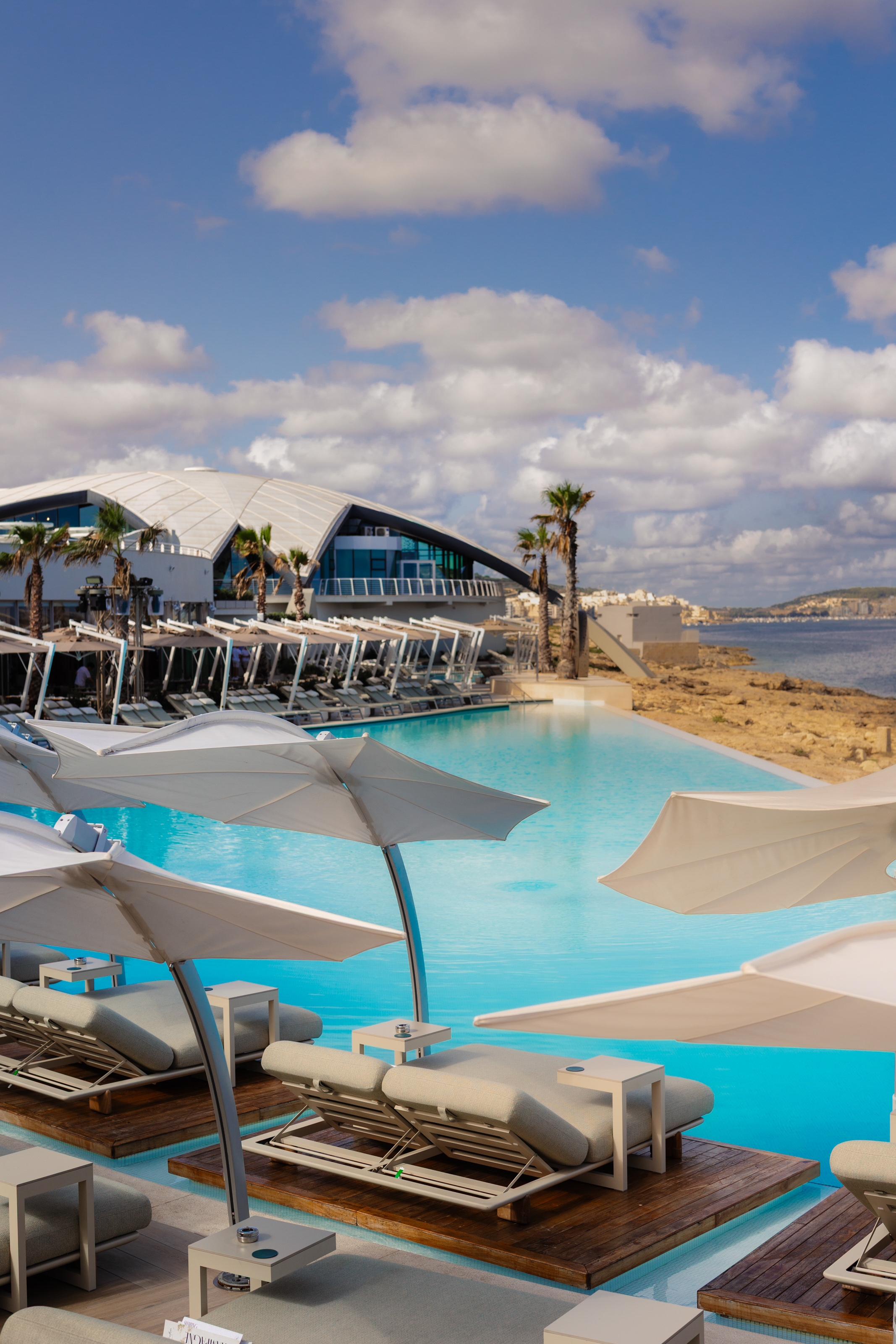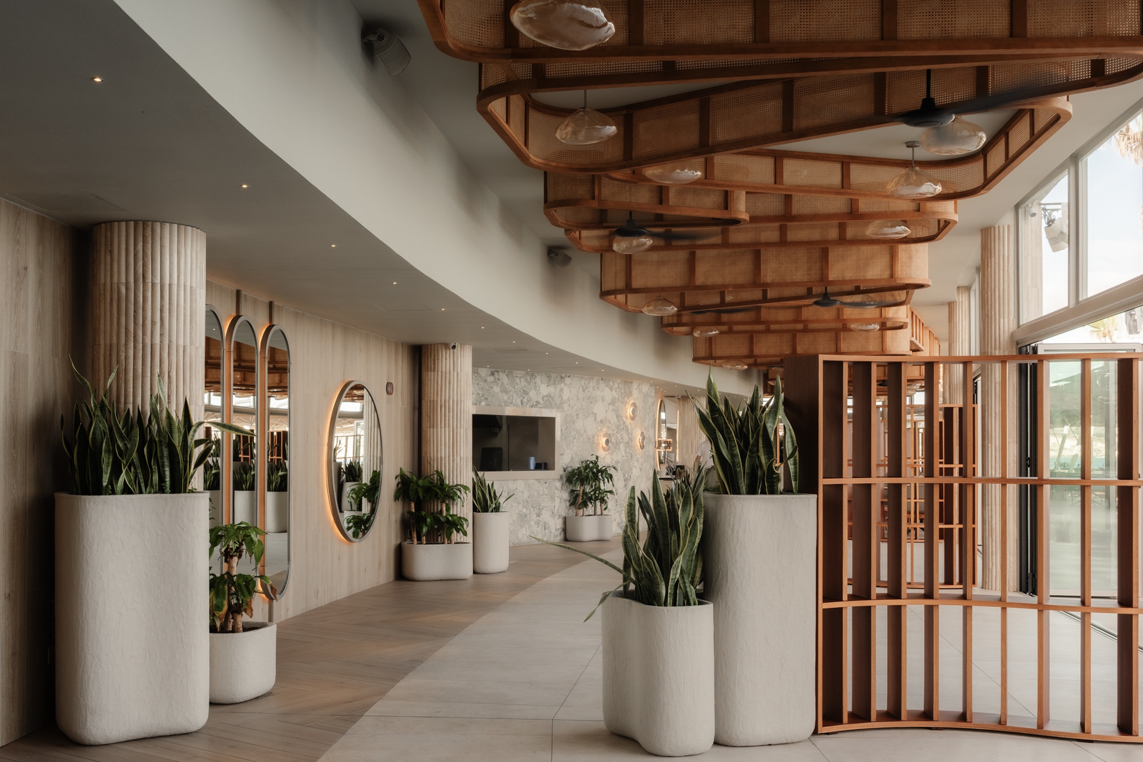 Café del Mar Malta blends sculptural identity with Mediterranean ease. Anchored by a striking DJ portal, the design flows through organic lounge interiors, tactile materials, and curated spatial rhythms. Natural textures, warm tones, and custom elements create an atmosphere that is both relaxed and iconic — where architecture, sound, and light converge to elevate the coastal hospitality experience. Every element is crafted to evoke sensory warmth, from the rattan canopy to the sculpted seating, creating a seamless indoor-outdoor narrative rooted in comfort, elegance, and place.