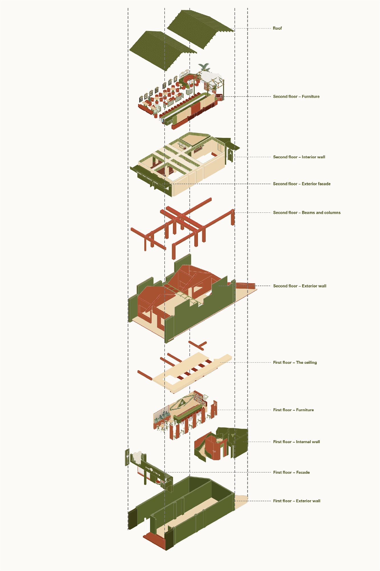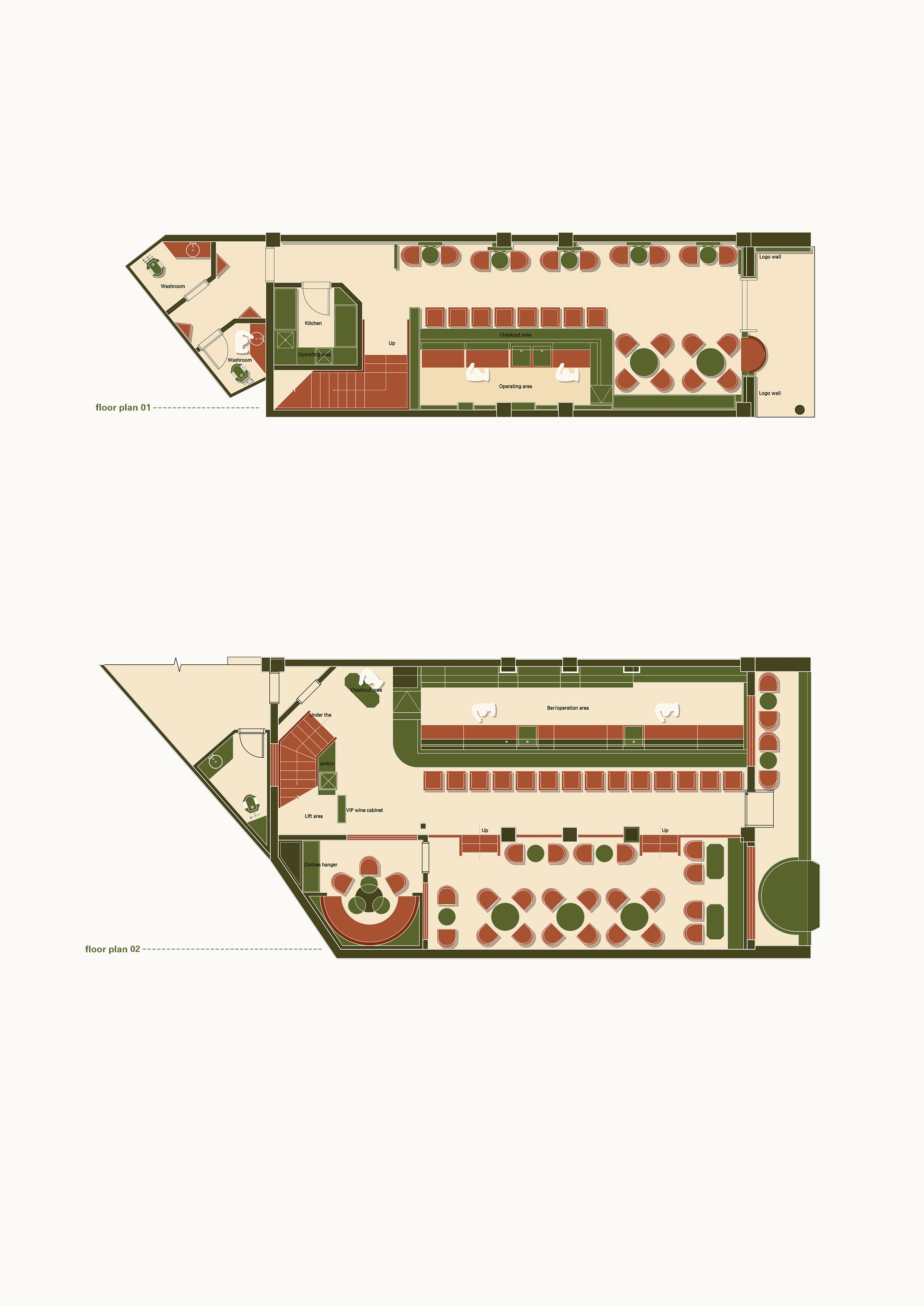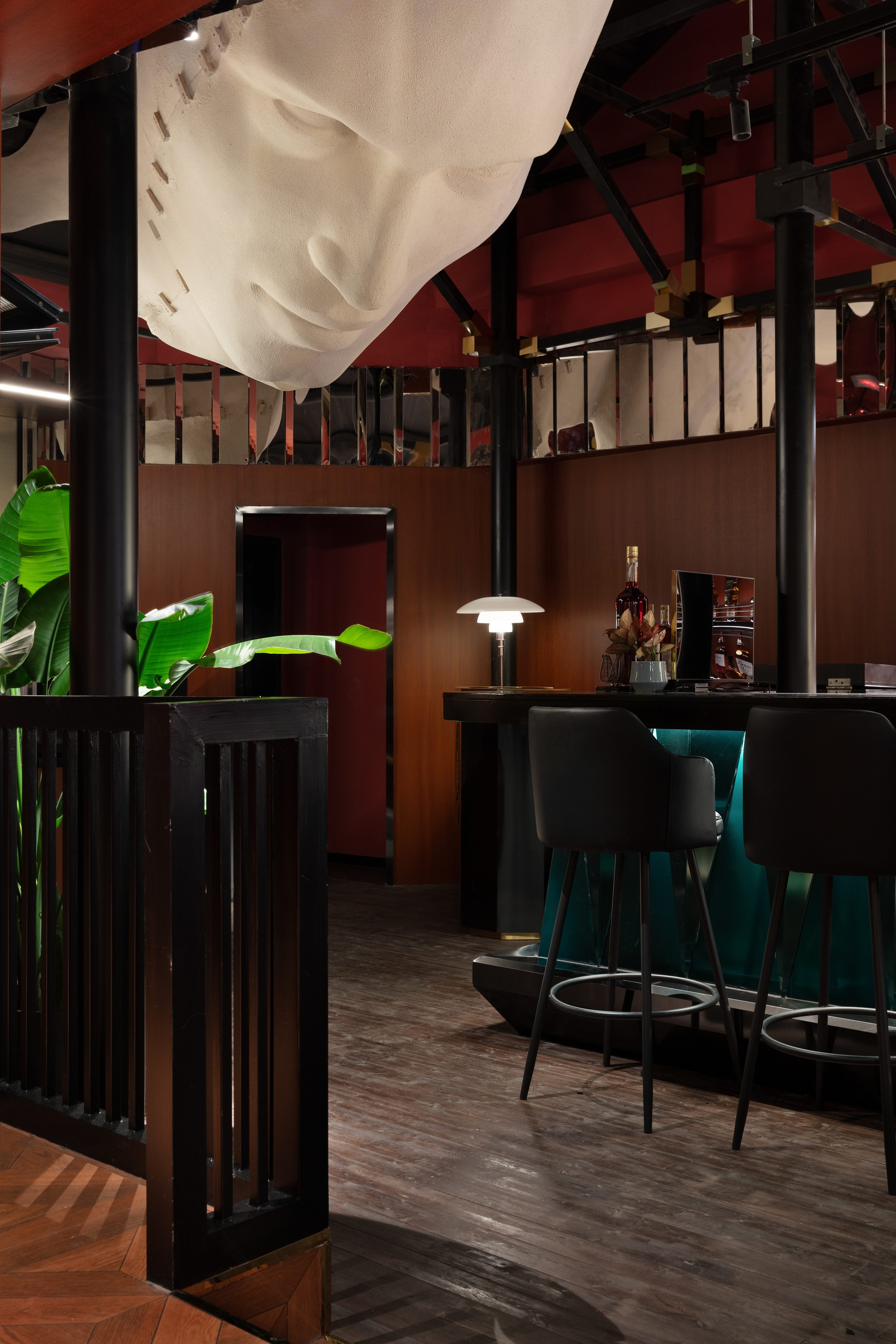 According to the operational function of the project, the first floor is the supporting space and the second floor is the main venue. The first floor is loose, open, relaxed which serves coffee. The seating is relatively spacious. Bar counter and loose seating area on the second floor is different, more compact but not crowded. The sense of distance between people familiar or unfamiliar is more subtle. We hope more conversation and stories can happen there.