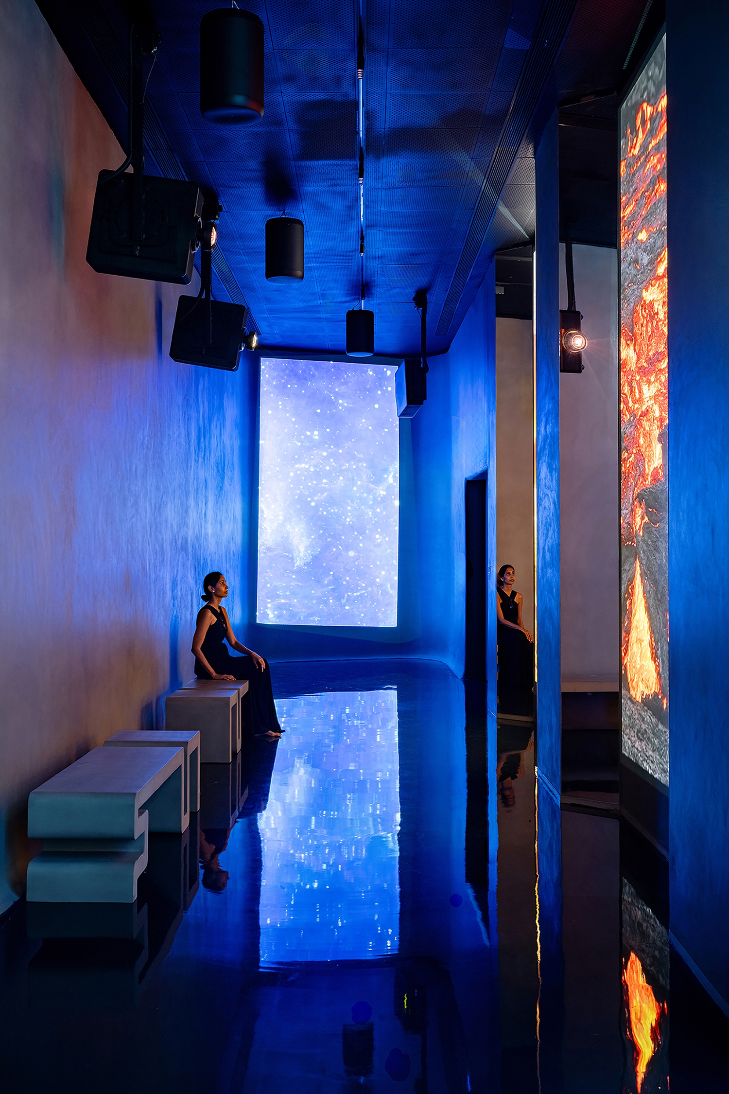 The design of this museum overcomes the challenge of working with a floor plan that is irregular in shape with multiple structural elements, creating a sequential flow of volumes & experiences with a neutral palette throughout, to enhance the audio visual & immersive experiences within.