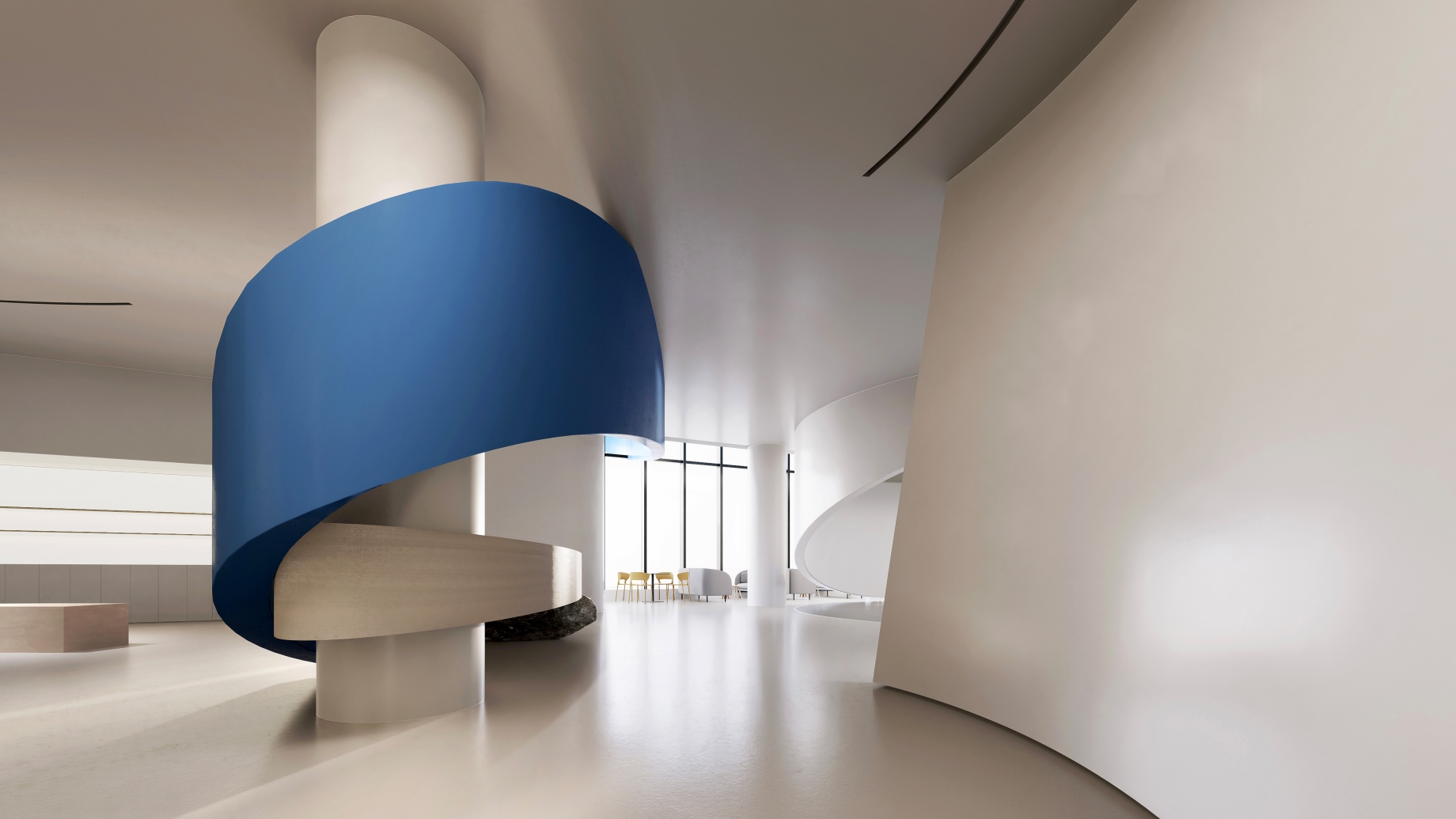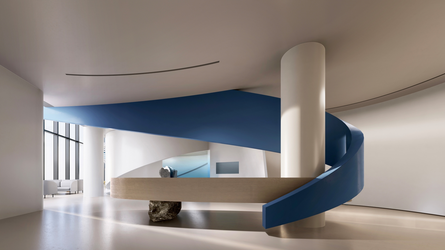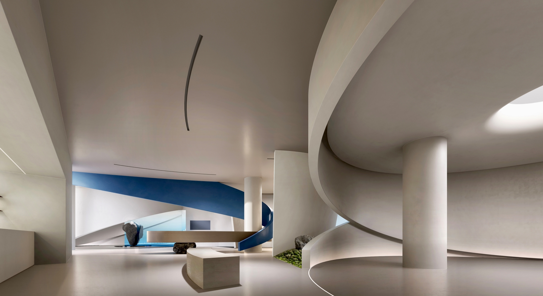 1.The project is located beside the Thomson Lake in Wuhan. The designer used water as the design inspiration for the space. The changing state of water is dynamic and full of energy. We drew inspiration from water and creatively applied it to the exhibition hall space. At the same time, the integration of landscape injects vitality into the space, and the light travels through the space, bringing a different experience.