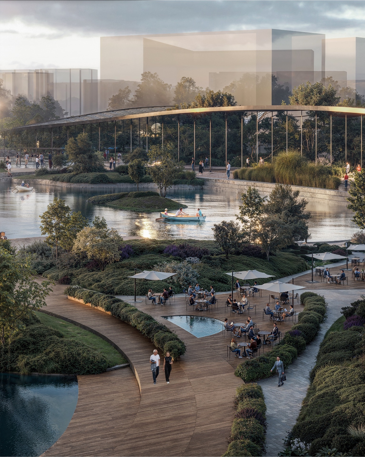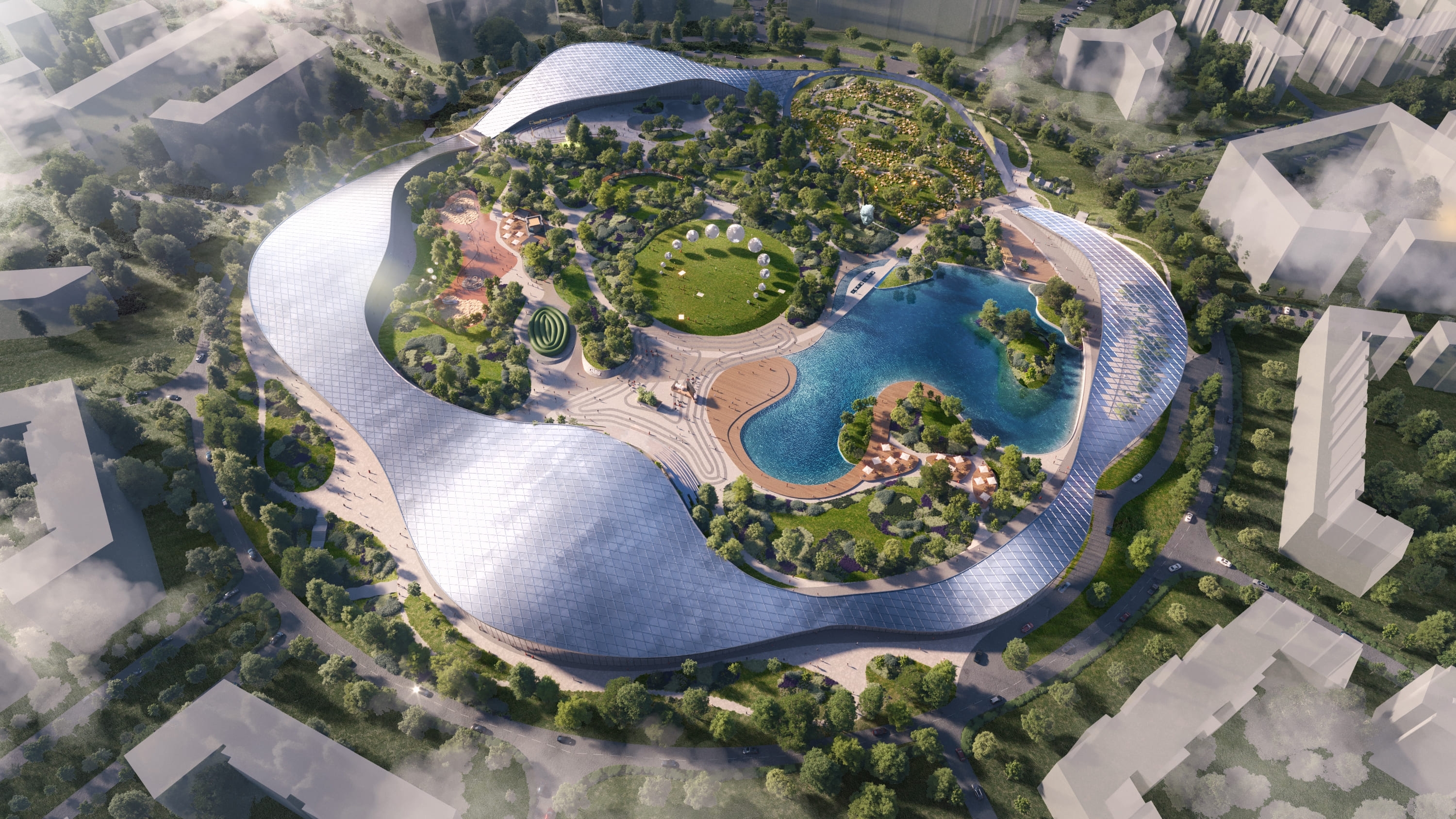 We have decided to create a unique microclimatic park. To enhance visitors' comfort and convenience, we planned the park's layout with permeability and the mixing of various functional areas in mind.