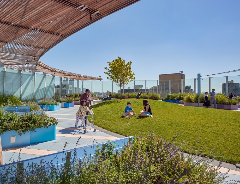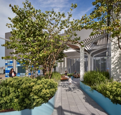 The gardens feature over 4000 native and adaptive plants, selected to support pollinators and migratory birds while thriving in urban conditions. Dark-sky compliant lighting systems create intimate, sensory-sensitive nighttime environments. Each garden space is thoughtfully calibrated to accommodate different stimulation thresholds and social preferences, from active play to quiet reflection. Integrated with the hospital's art program, the gardens demonstrate how strategic green space can transform healthcare delivery through careful attention to the full spectrum of human experience.