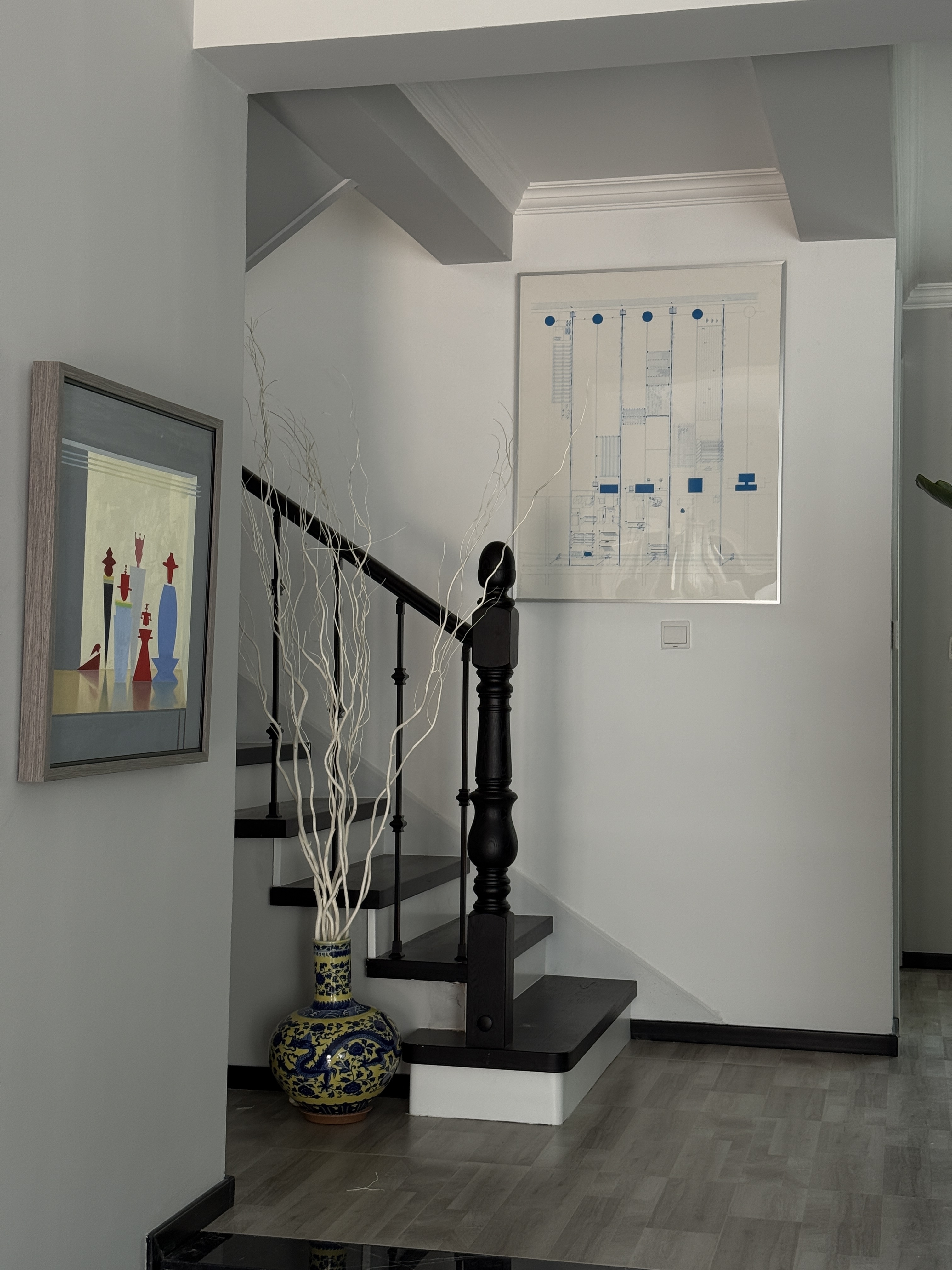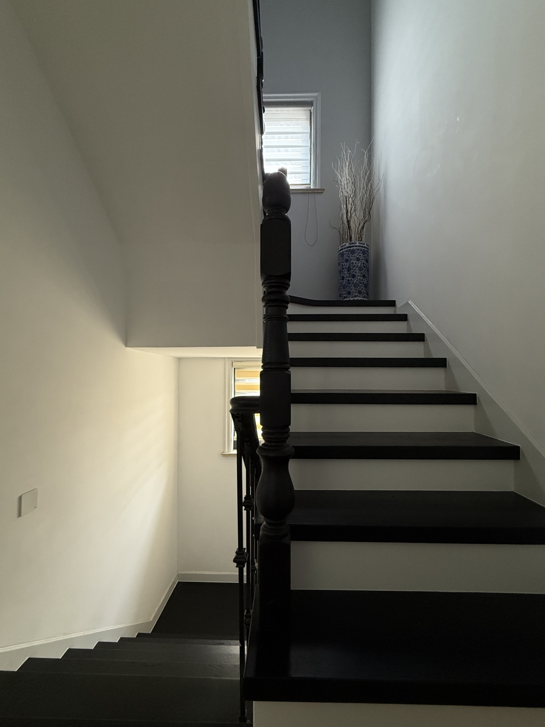 The walls, finished in layered shades of grey, shift with the day, absorbing and reflecting brightness that carries the passage of time. The entrance hall is a threshold, where cross-ventilation and natural light create a balance, transforming the arrival into an act of reorientation rather than enclosure.