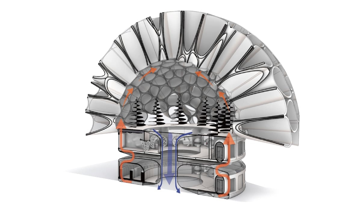 This project explores a visionary headquarters design for a global tech company, addressing the growing challenge of energy-intensive data infrastructure. The design centers around a critical question: how can server room waste heat, often seen as a liability, be transformed into an asset that enhances employee well-being and community benefit? By utilizing waste heat recovery strategies, the design enables localized energy reuse, supports rooftop agriculture, and contributes to net-zero energy goals. Through contextual research on remote and hybrid work, the project identifies the evolving needs of today's workforce and integrates flexible, human-centered spaces that promote health, connection, and productivity. The result is a future-oriented workplace that merges digital operations with environmental and social responsibility. This sustainable infrastructure concept proposes a new way of thinking about the intersection of data, people, and the planet.