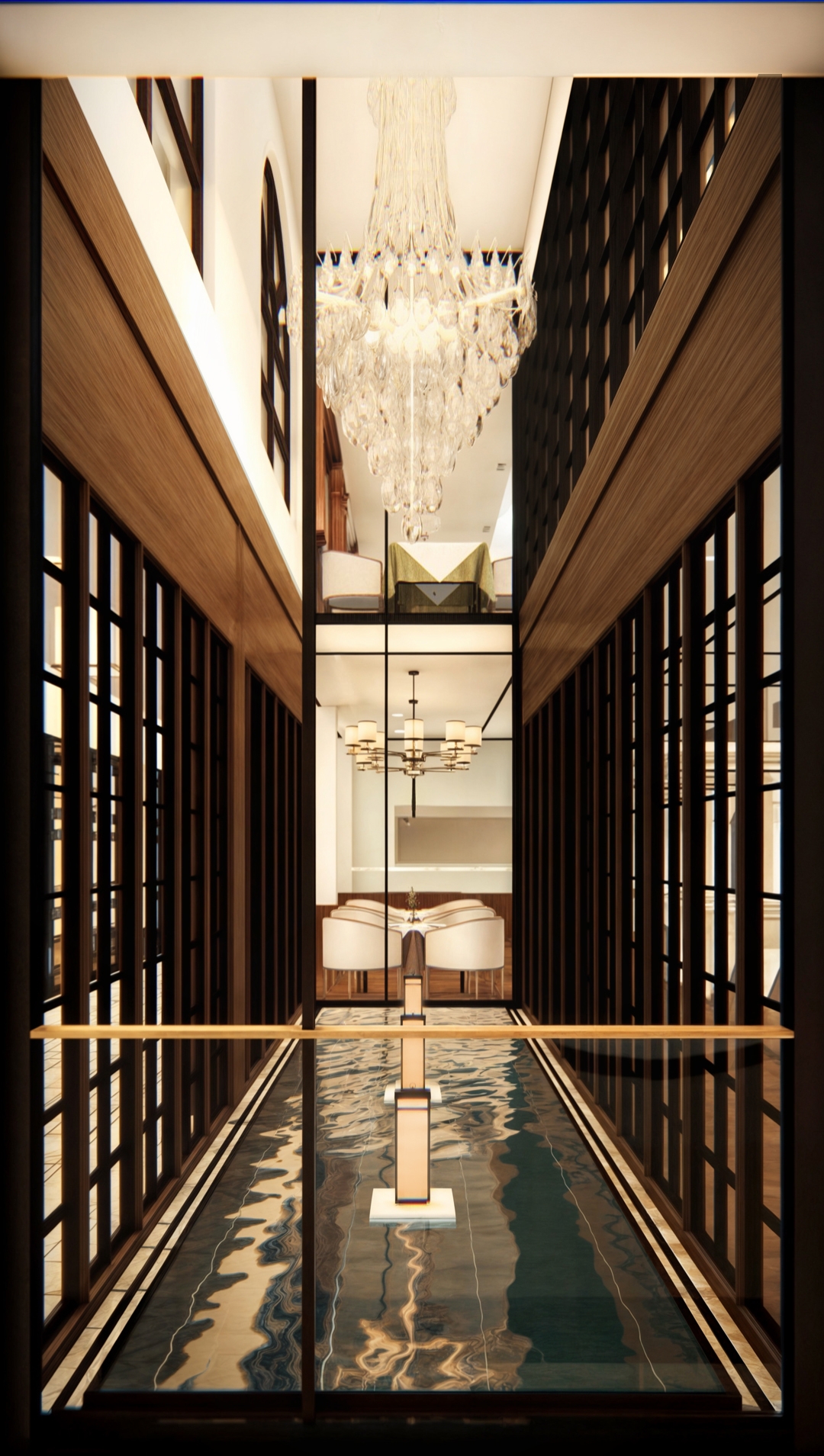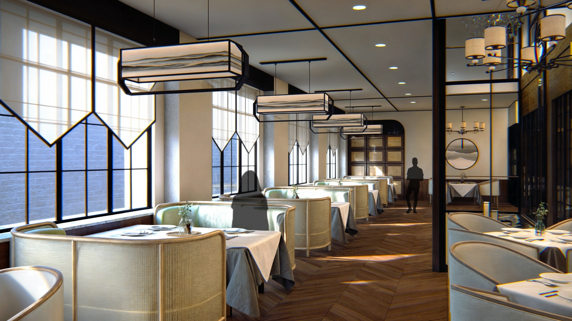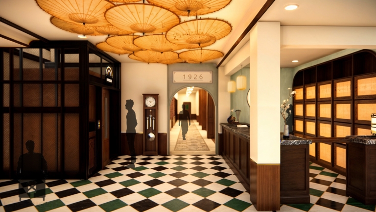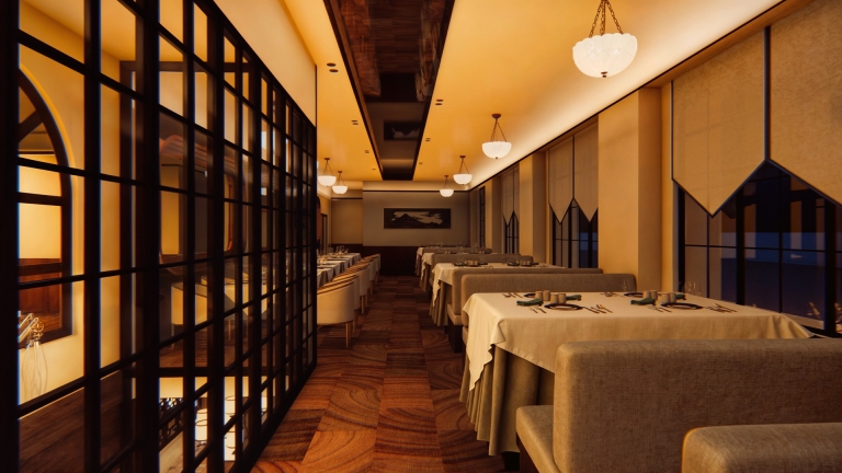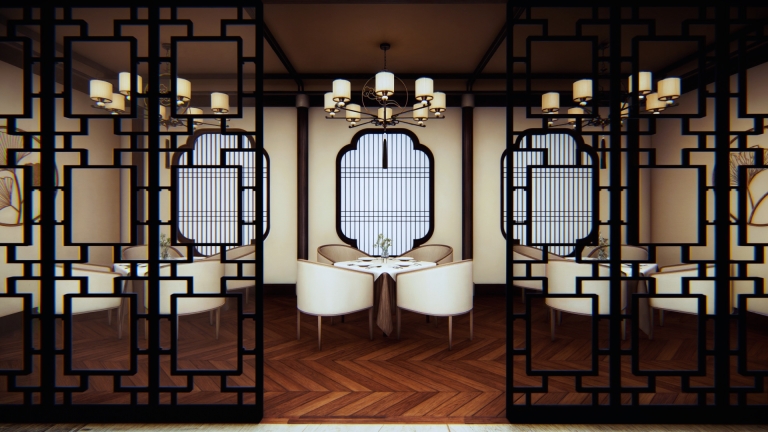 The restaurant captures the charm of Old Shanghai’s golden age, blending Eastern and Western influences. The first floor leans into rich Chinese traditions with subtle Western accents, while the second floor offers a refined Western aesthetic with Chinese touches for balance. Inspired by Shanghai’s historic Shikumen architecture and the elegance of vintage trains, the design reflects a time of cultural fusion and progress. Warm gold tones, deep greens, and classic Chinese motifs create a nostalgic yet sophisticated atmosphere, immersing guests in the era’s vibrant charm.