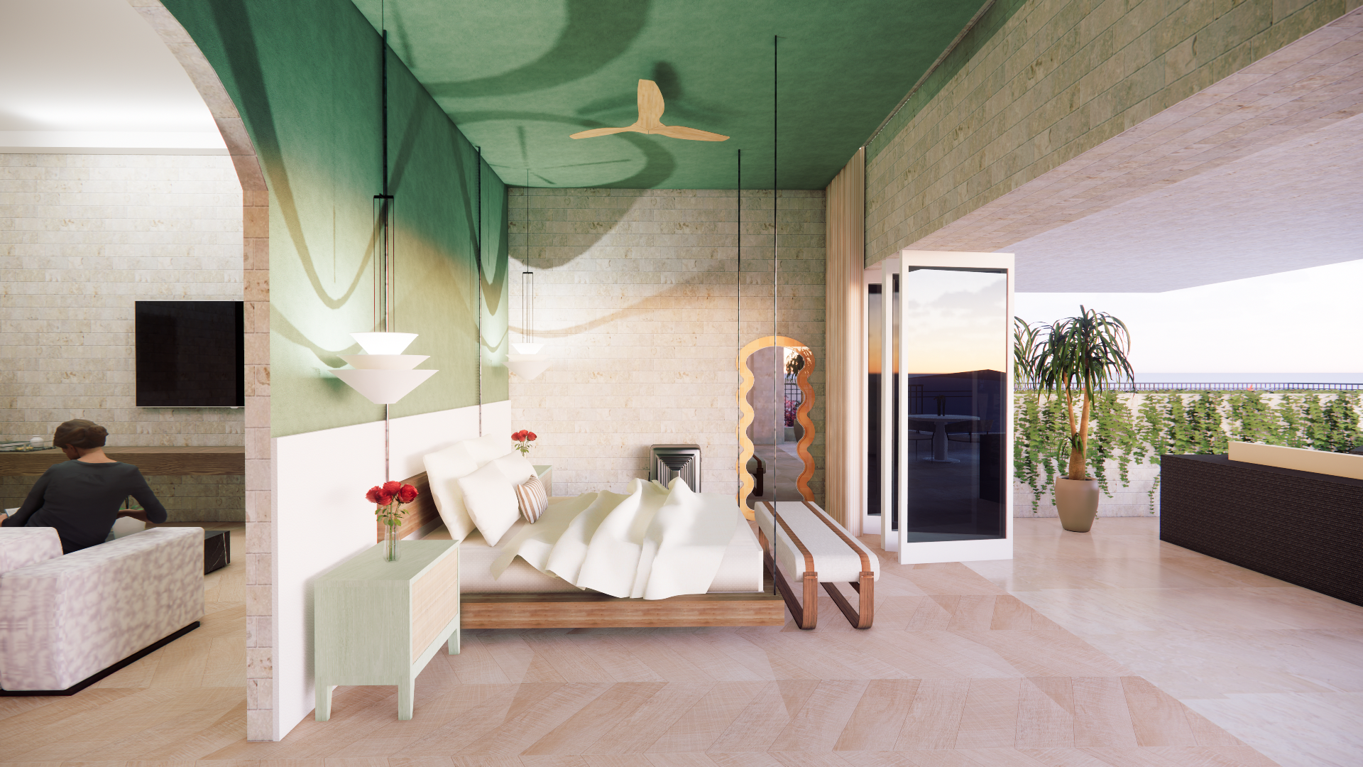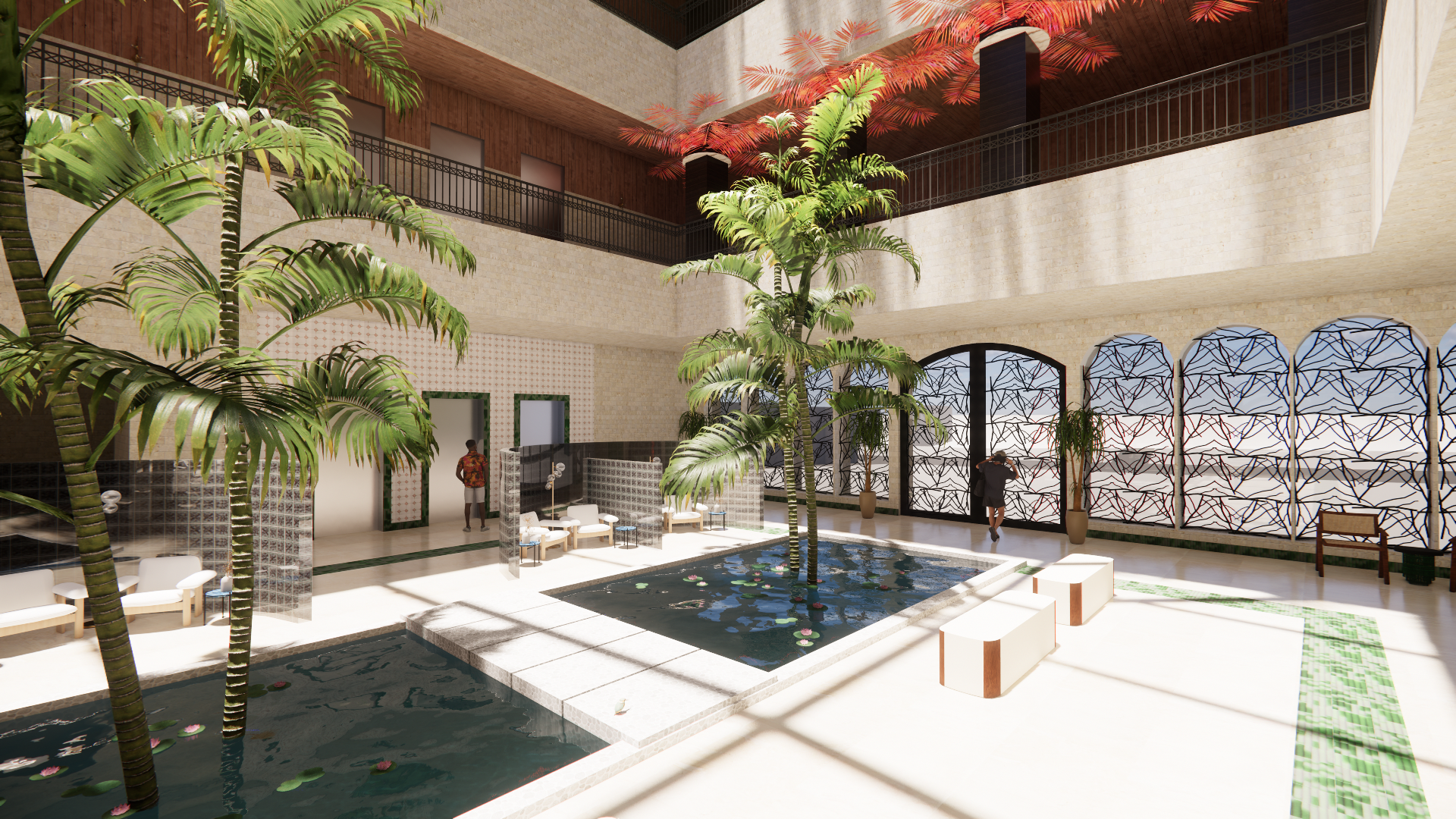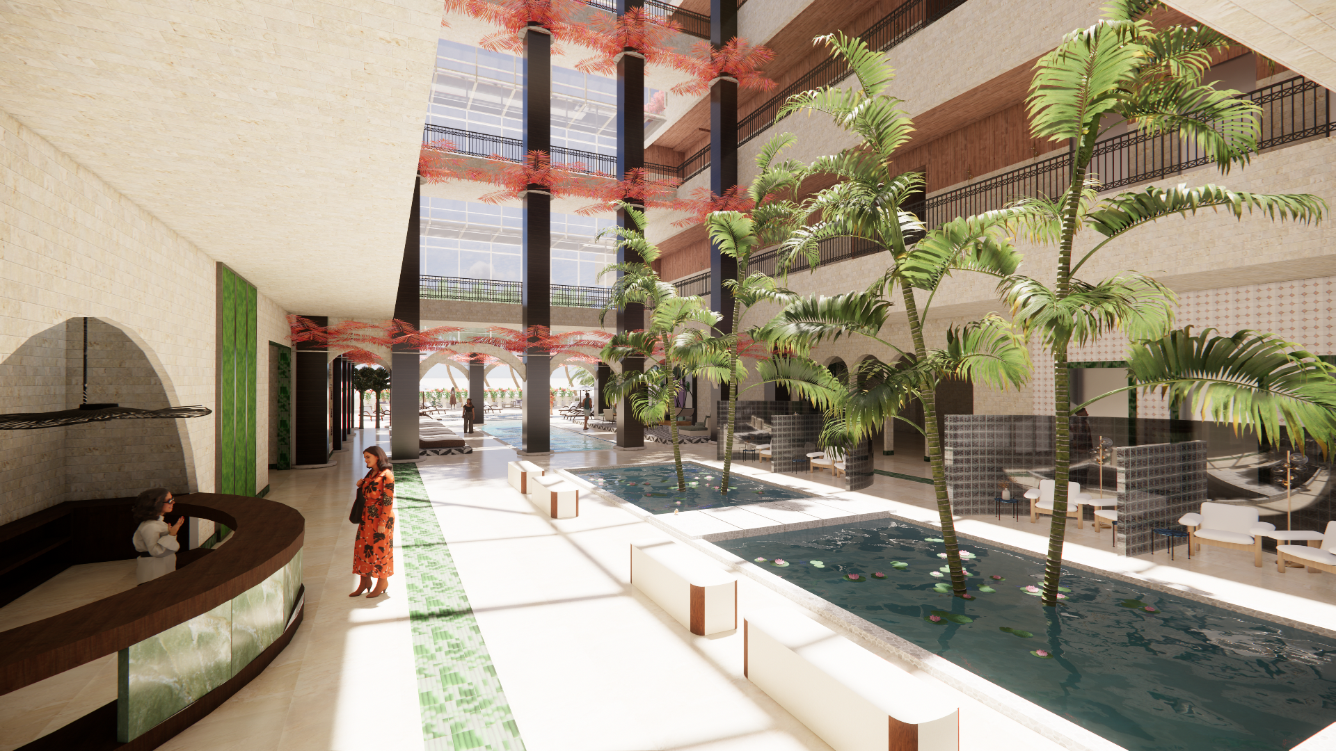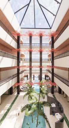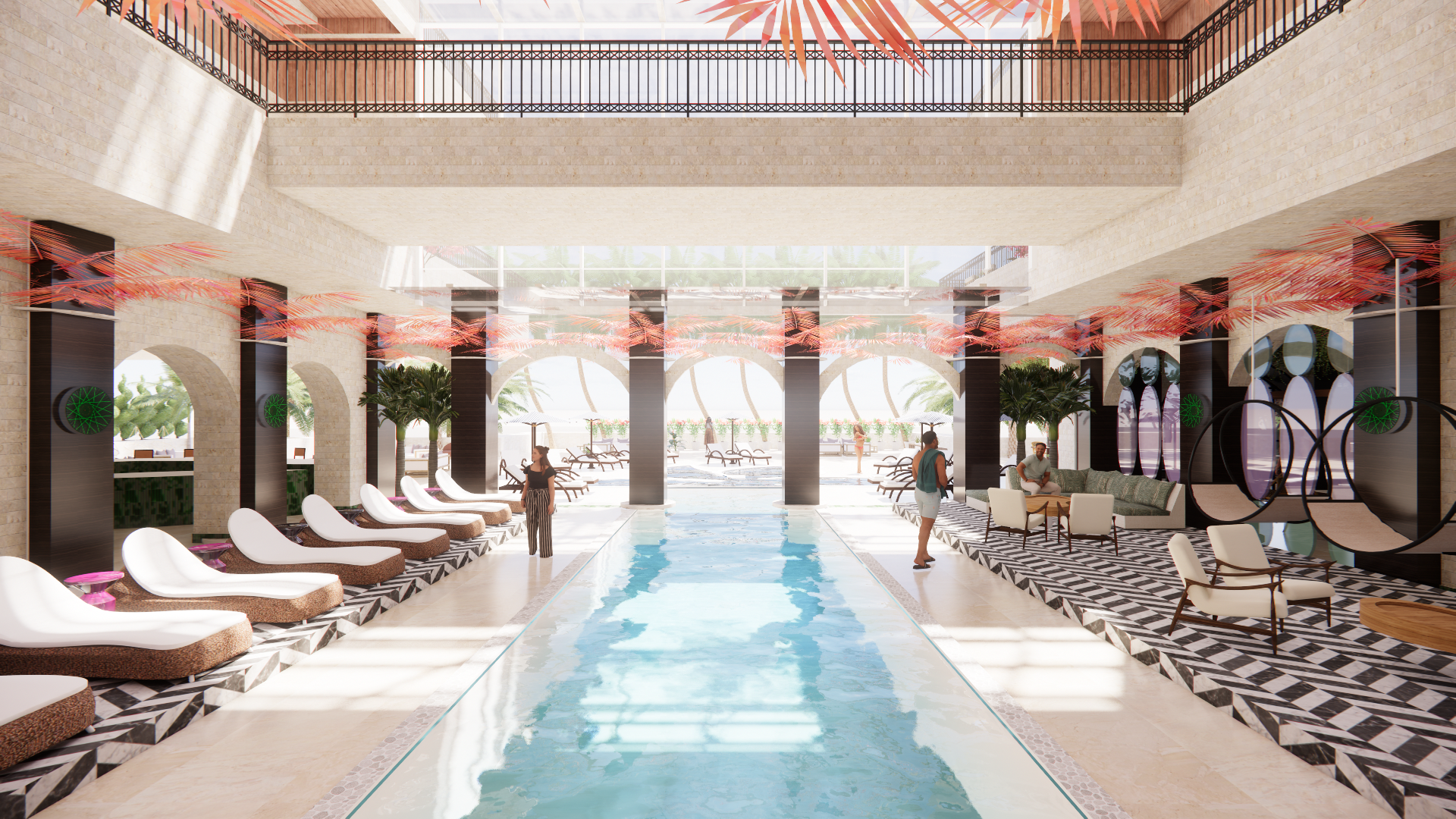 Conceptually, Envio is based on a palm tree. Each public and private space branches outward from a central trunk, ensuring all experiences feel connected but independent. This fosters a sense of belonging, community, and intuitive wayfinding. Just as a palm bends and flexes, Envio’s layout supports a variety of wellness experiences without feeling rigid.