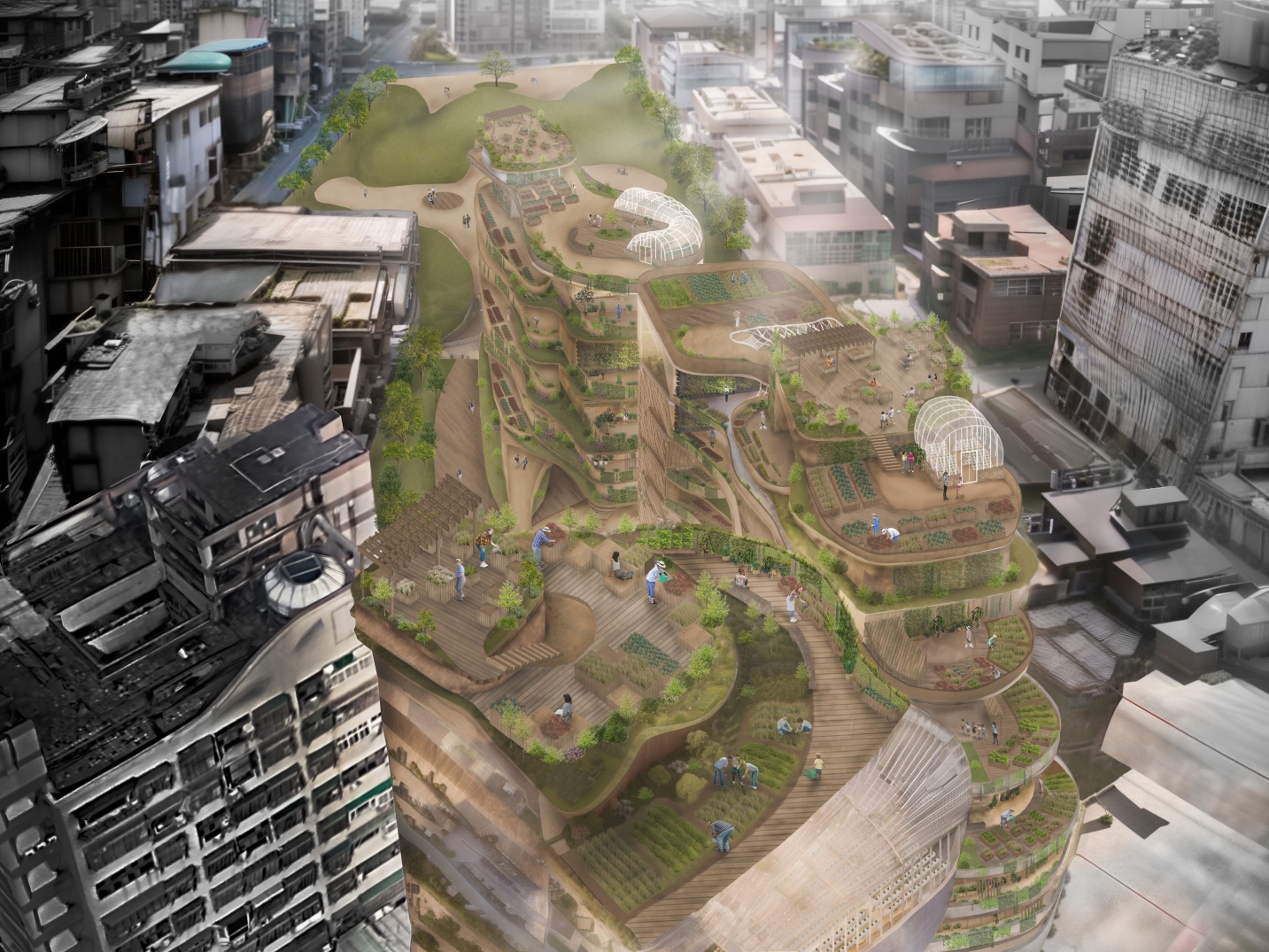 This design incorporates Urban Farming into dense urban structures to improve ecology and build community ties. Supported by night market culture, it creates a Circular Economy through shared spaces and sustainable practices. The program features a daytime/night market on the ground floor, vertical farms and courtyards in the middle, and a rooftop farm with hydroponics, rainwater harvesting, and composting. By recycling market waste and supplying fresh produce, the design forms a closed-loop system that reduces waste, increases greenery, and enhances resilience for a sustainable urban future.