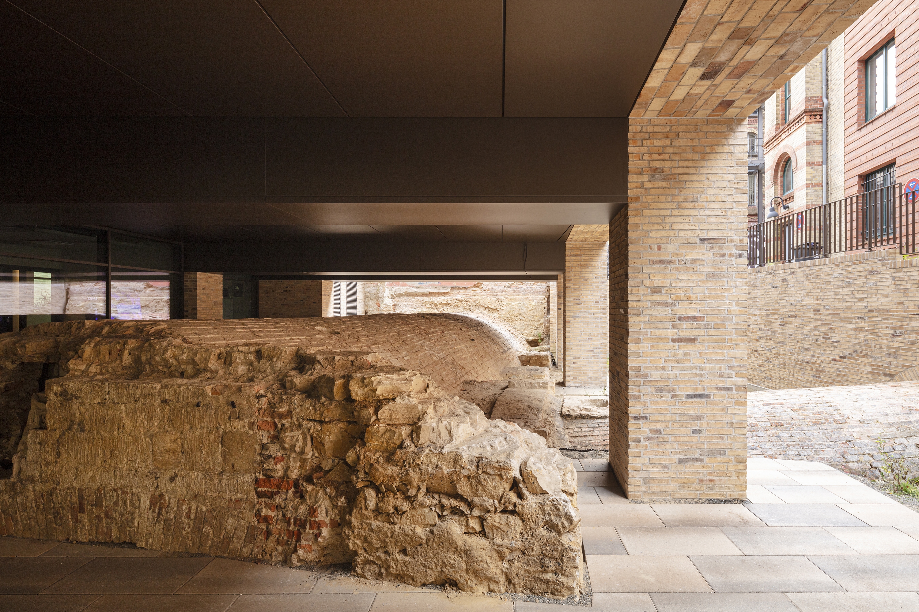 The former, partially exposed vaulted cellar, which was used as a beer storage room, was preserved and sensitively integrated into the new building.
