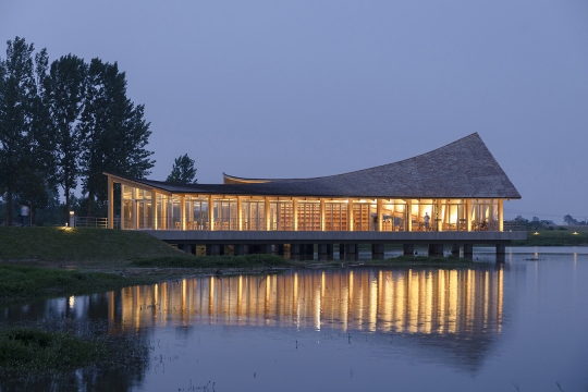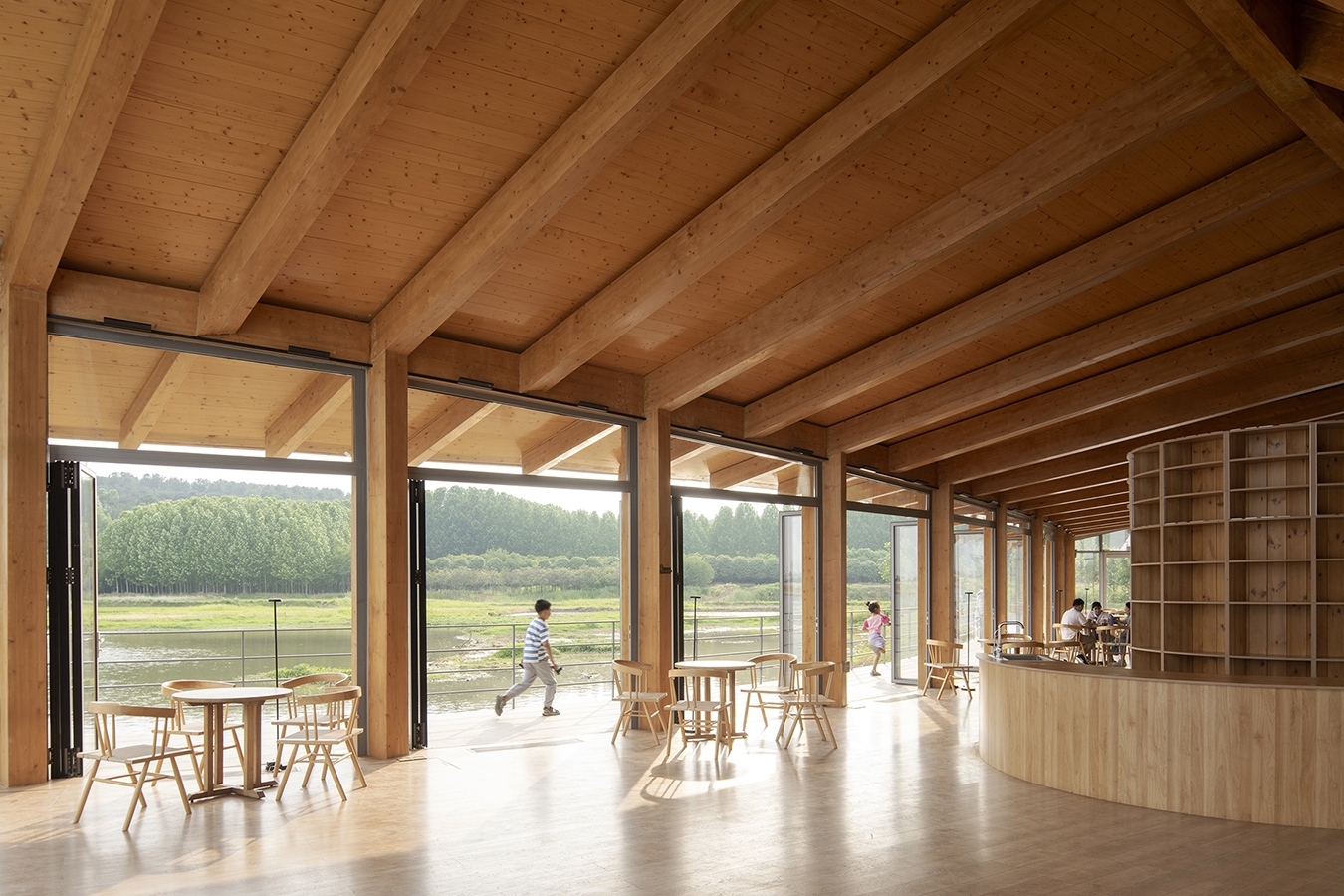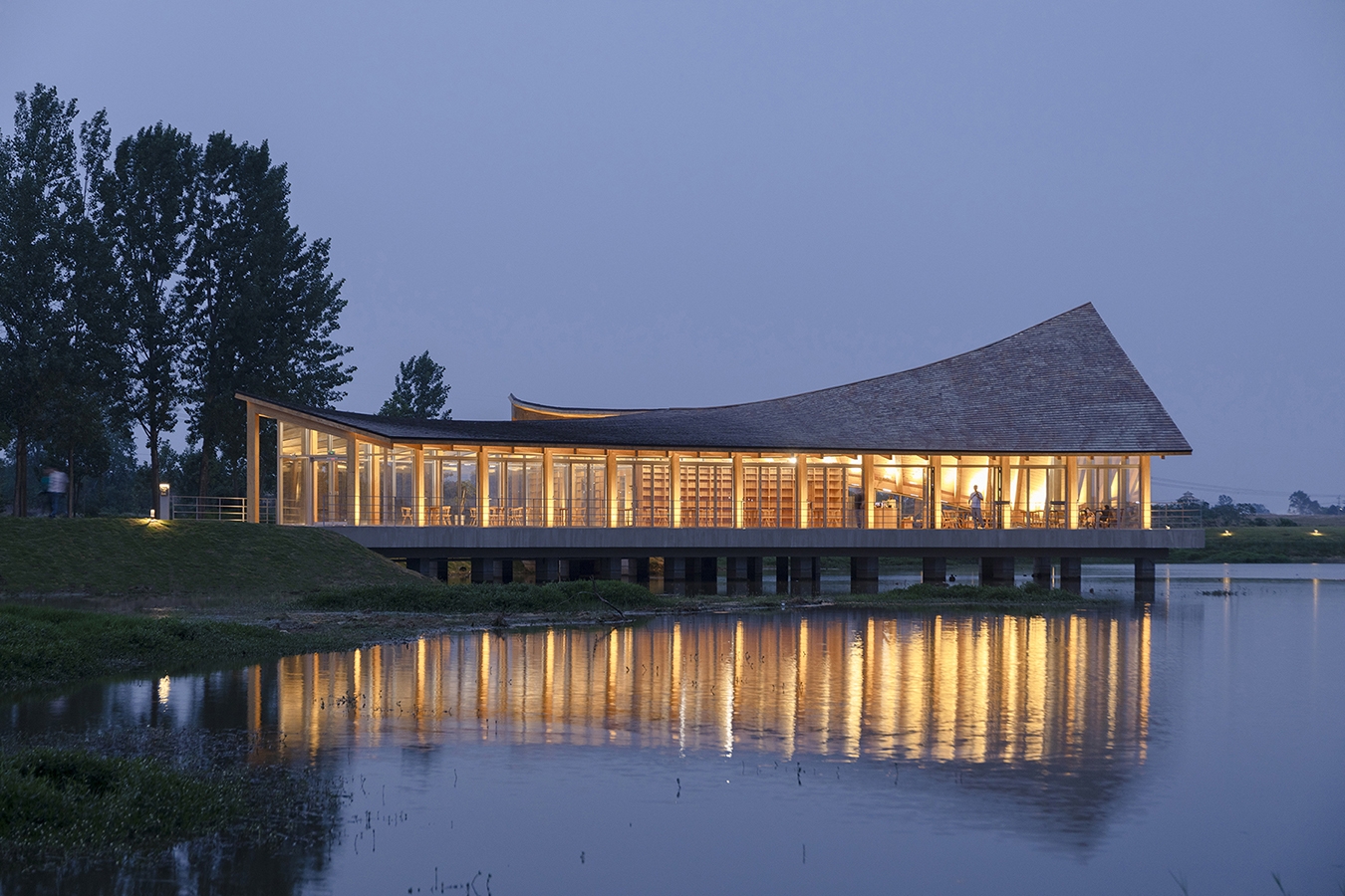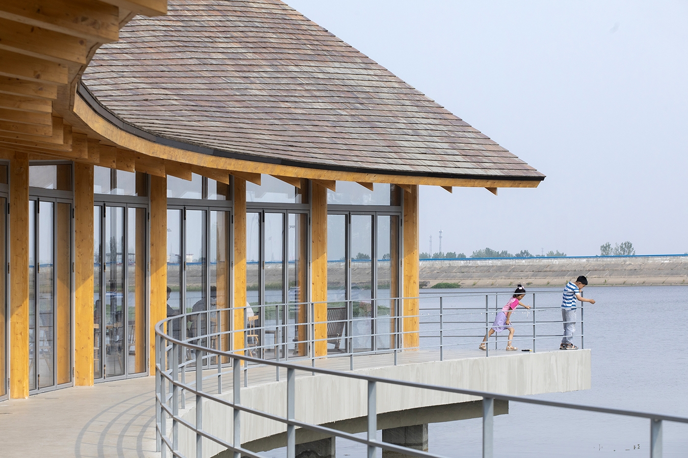A stretch of the dike path along the reservoir was chosen as the cue for the architectural circulation, allowing the floor plan to naturally extend from both ends, making the building an organic continuation of the dike road.