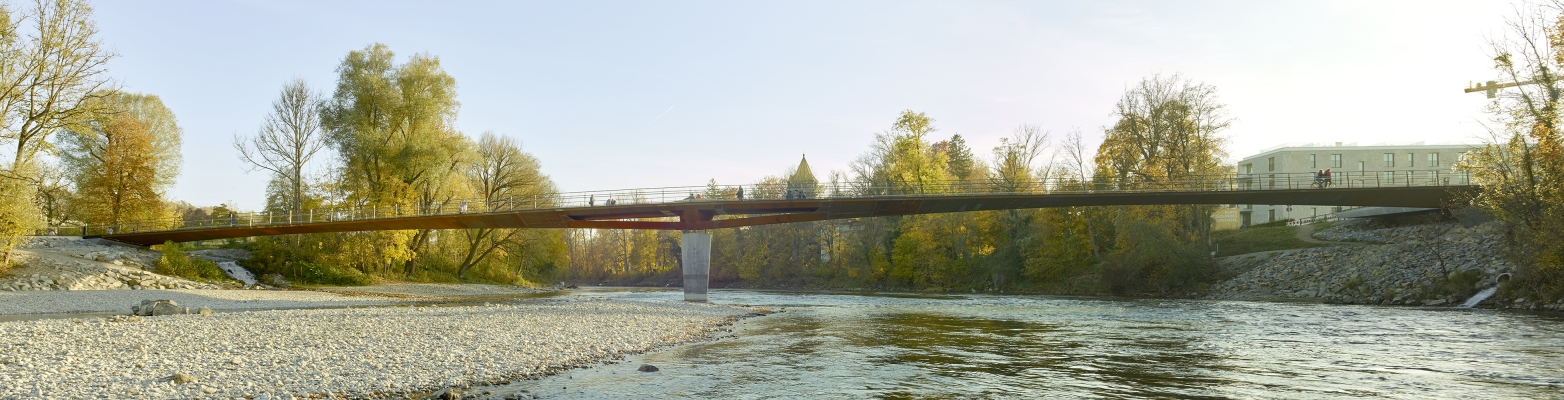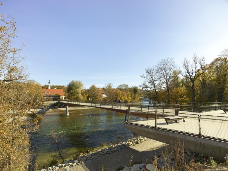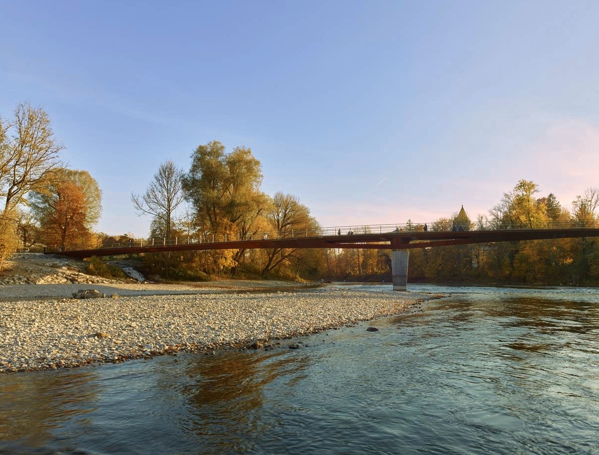 With the Lady-Herkommer Bridge across the Lech, close interdisciplinary collaboration has created a delicate, technically sophisticated pedestrian and cycle bridgeThe design concept combines, through its simple and clear architectural language, the modern planning possibilities of engineering with a respectful and sensitive integration of the structure into the high-quality natural environment of the Lech floodplains. It creates a new connection for sustainable mobility between the old town of Landsberg am Lech and the Katharinen suburb. that serves as a model for a new generation of infrastructure.