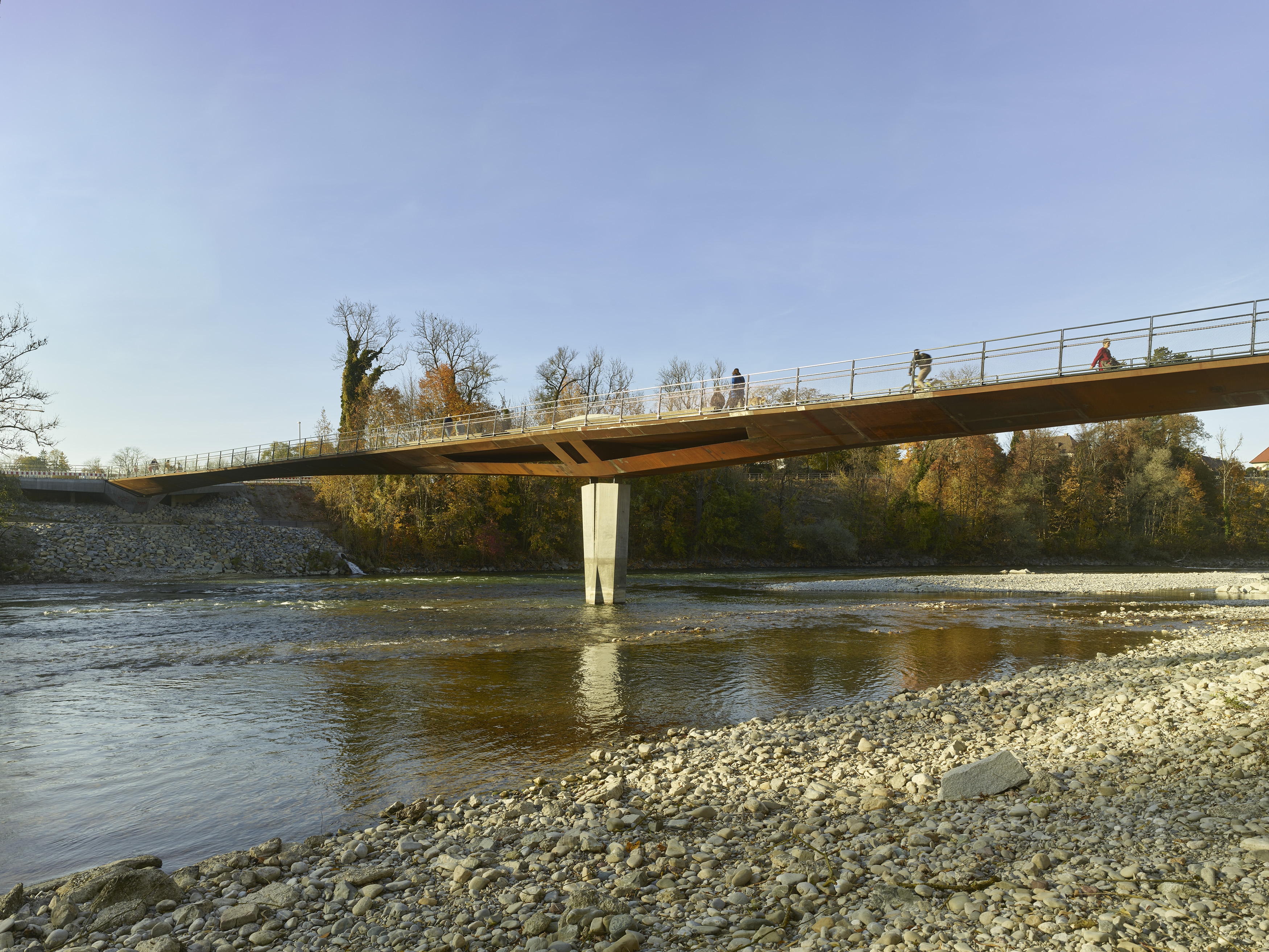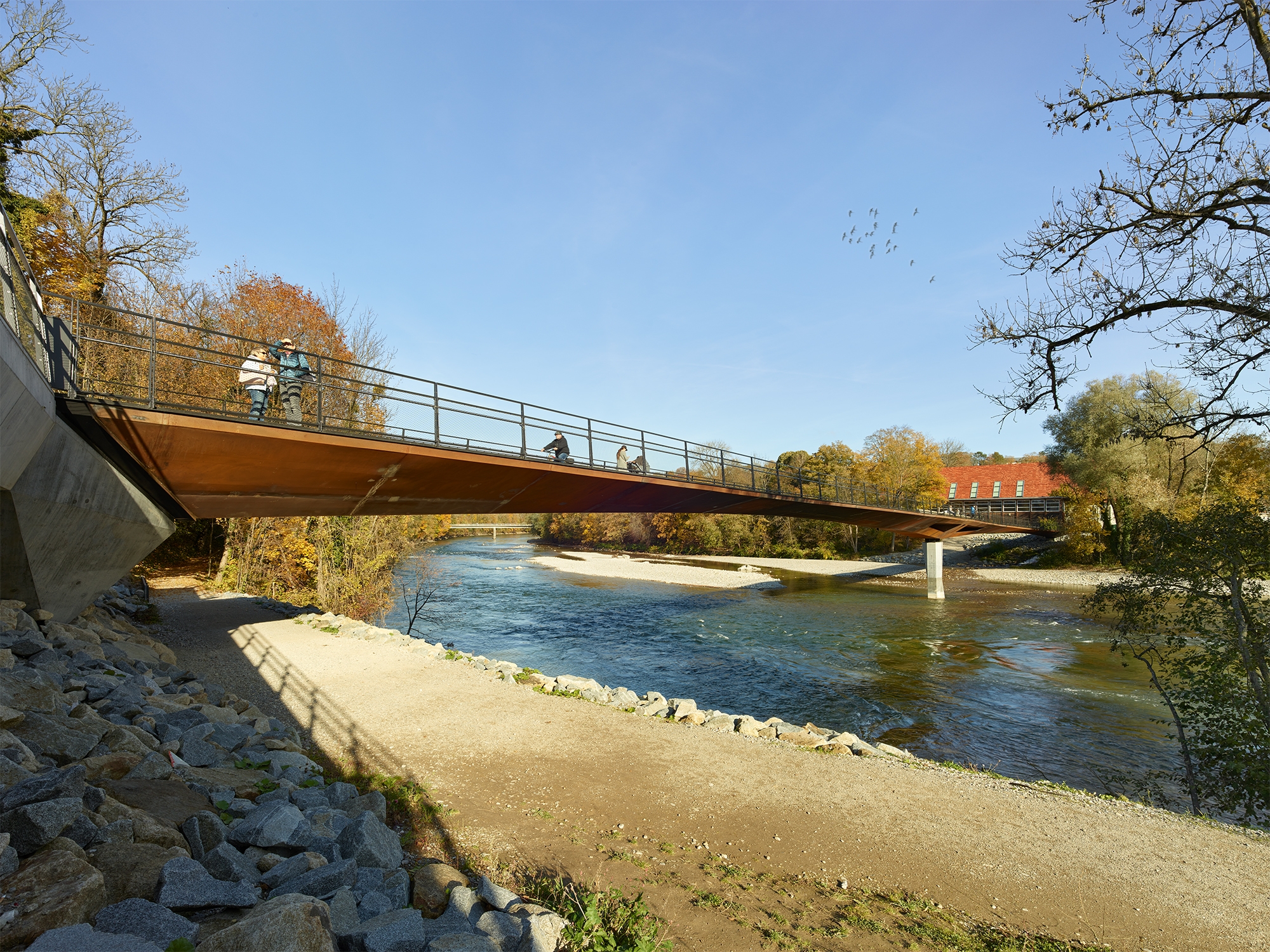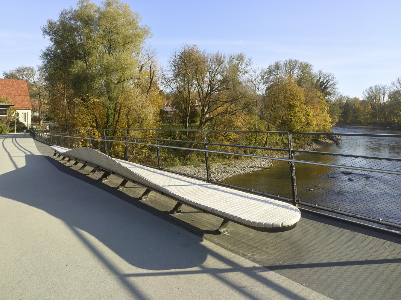 The new Lady-Herkommer Bridge for pedestrians and cyclists is an important urban design element for the future development of Landsberg am Lech. The structure was integrated respectfully and sensitively into the valuable natural environment of the Lech. A minimal, simple, and clear design language highlights the outstanding engineering artistry. Through a central viewing platform on the bridge, which logically results from its design, the new structure becomes a place to stay and gather.