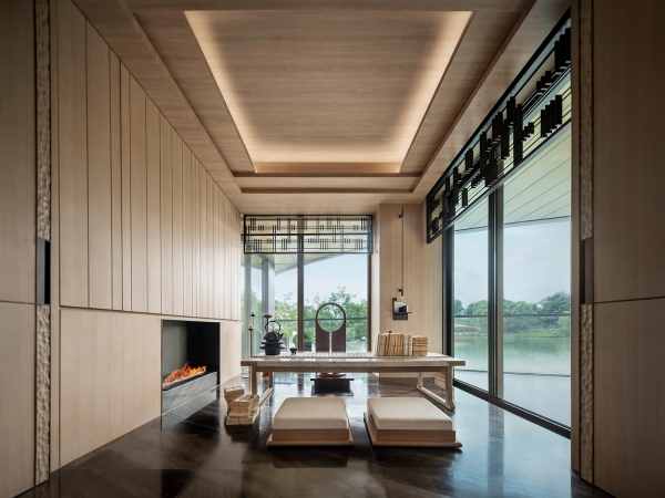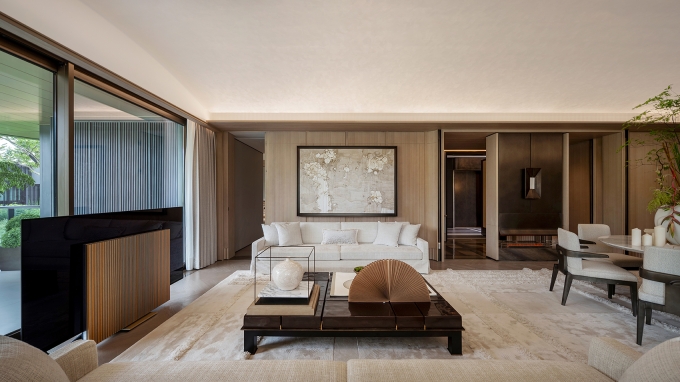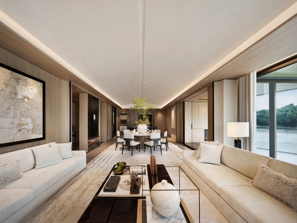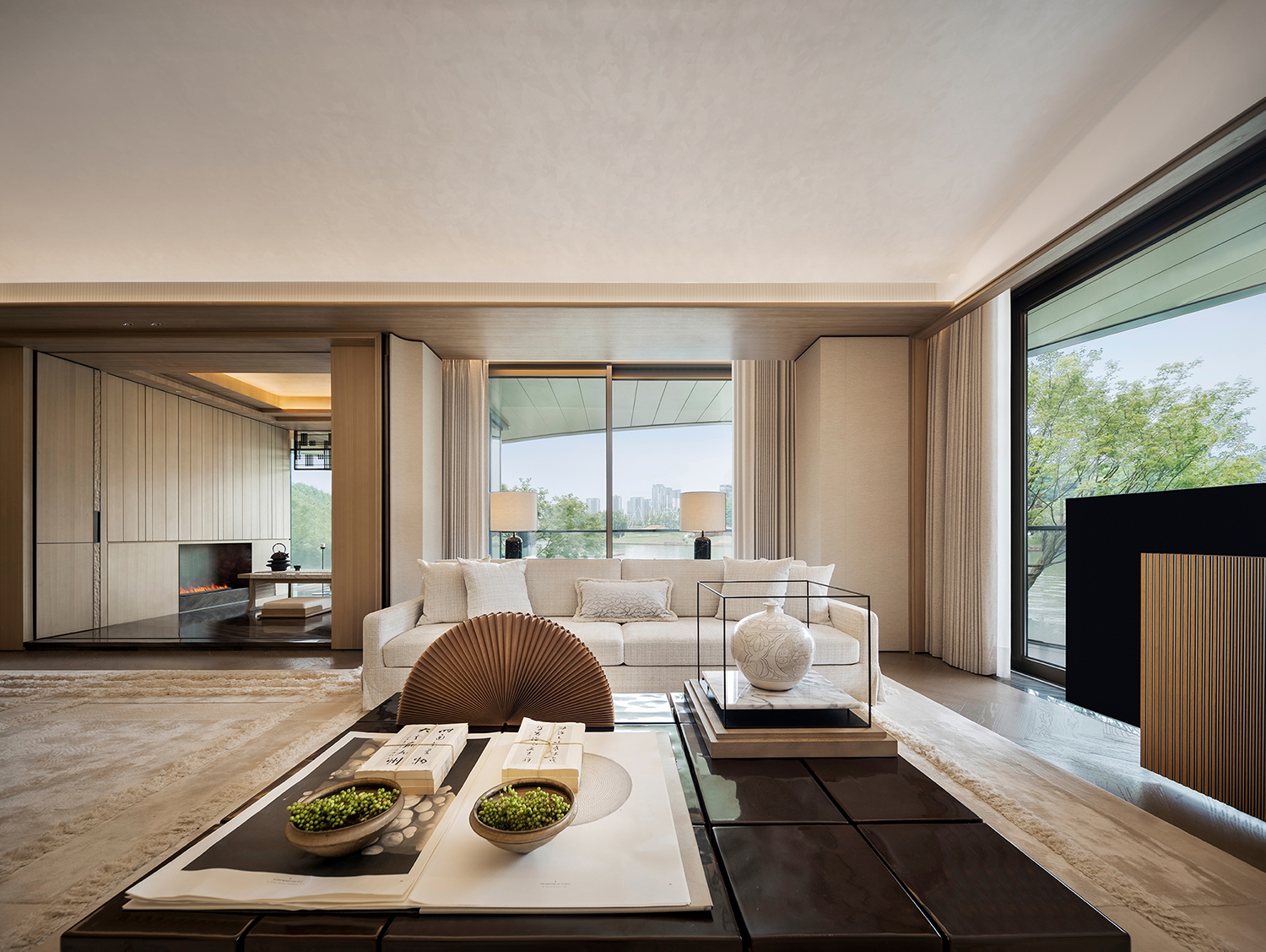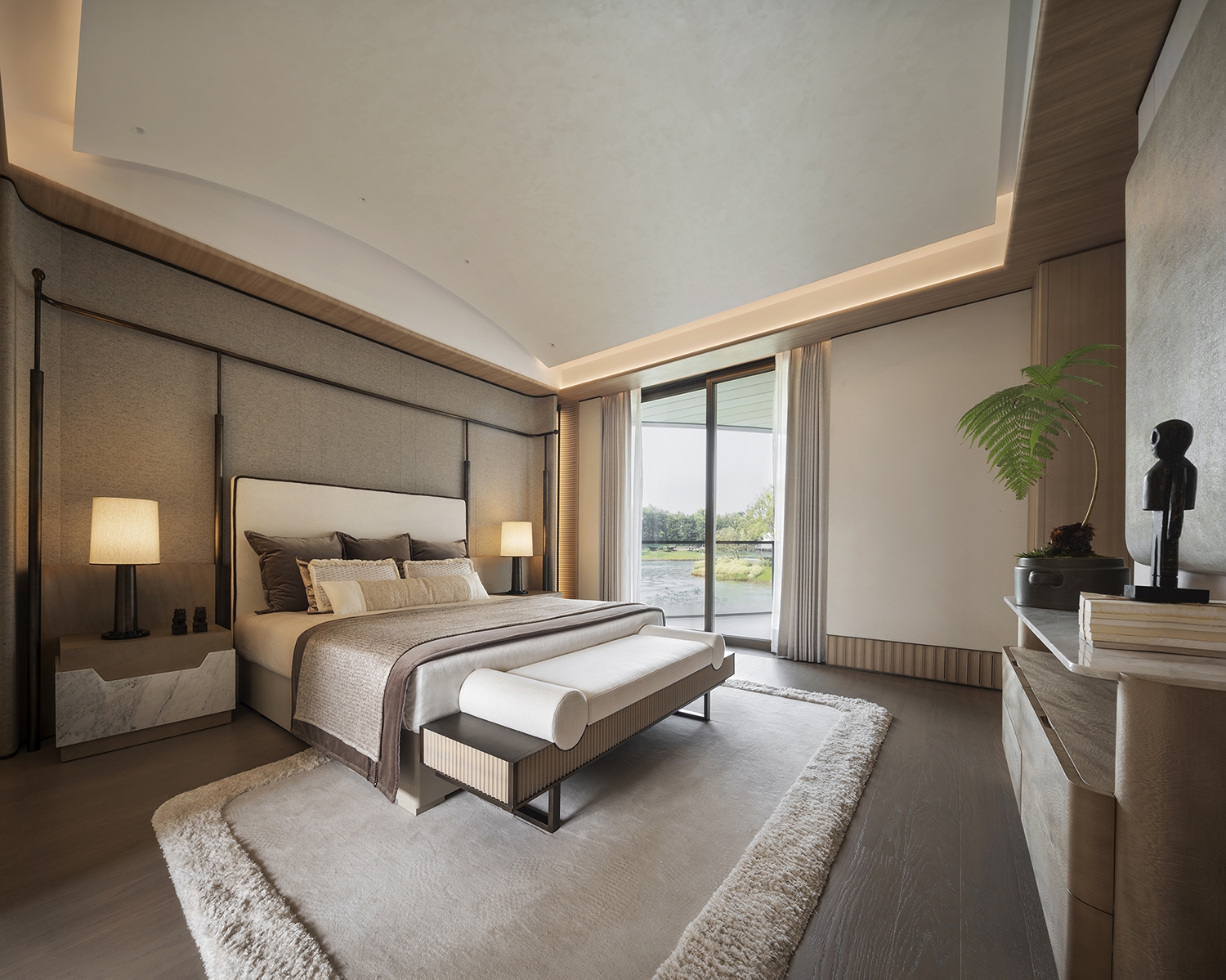 Natural elements underpin the design philosophy, forging a harmonious living environment that interweaves refined craftsmanship with the site’s aquatic surroundings.