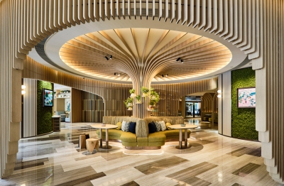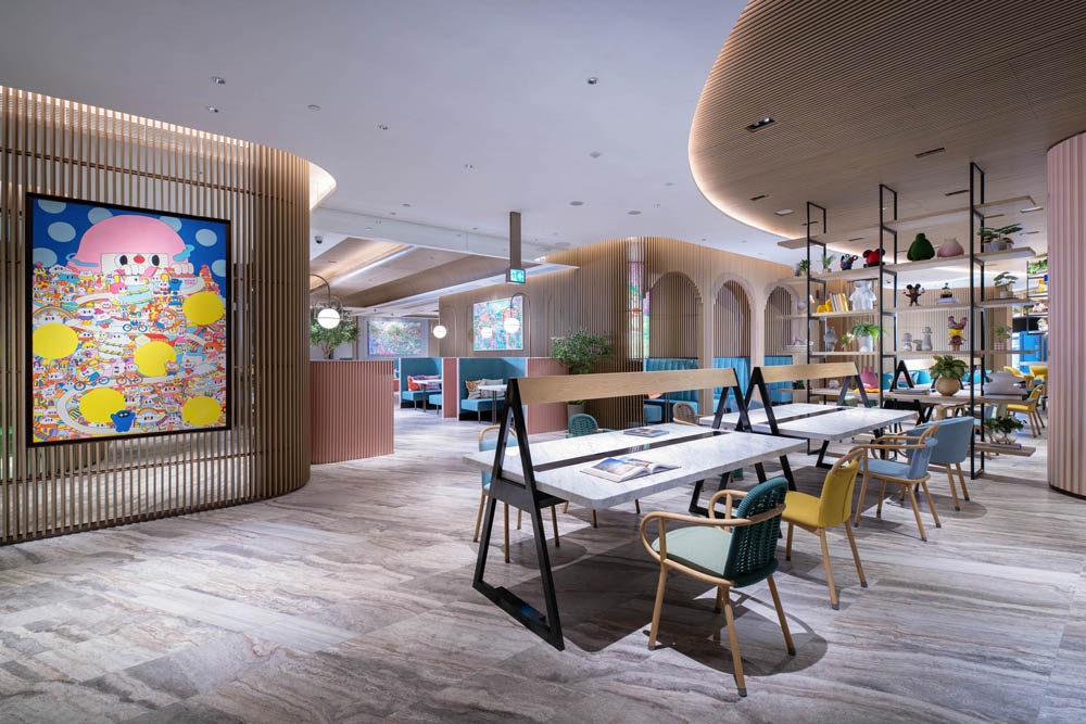 There area 100+ art pieces from local Hong Kong artists. These cover 4 concepts: joy and harmony, health and wellness, green living and family love. Interior landscaping brings warmth and softness to the interiors.