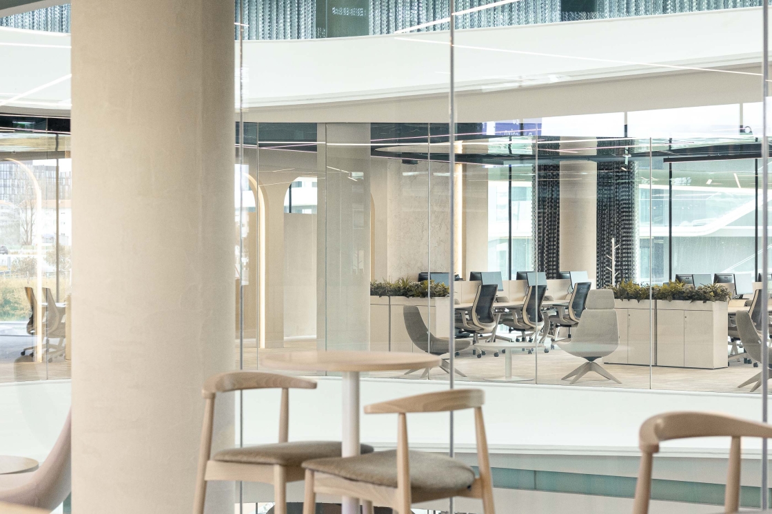 Forvis Mazars’ new offices in Porto were designed to reflect the company’s identity and values, combining technology and handcrafted elements in a flexible, human, and contemporary space. The design moves away from the traditional corporate model, promoting well-being, collaboration, and innovation. Natural and technological elements coexist in harmony, creating depth and emotion. A neutral colour palette contrasts with the brand’s colours, reinforcing a serene and timeless aesthetic. With practices such as clean desk and anywhere office, the environment responds to the demands of modern, global, and digital work, prioritising productivity, mental health, and human connection.