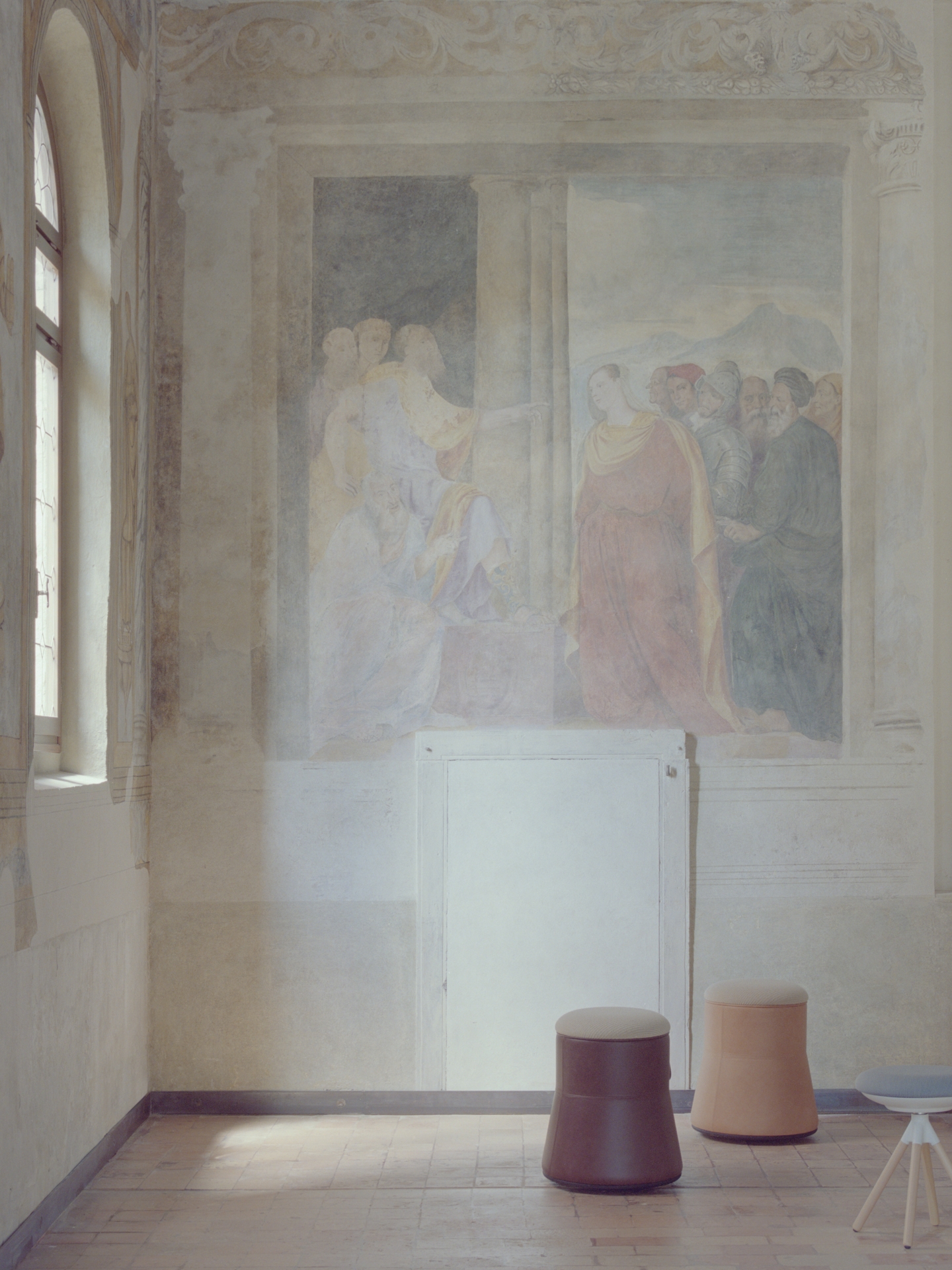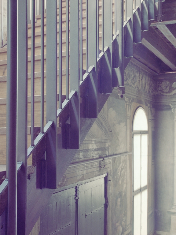 Through a restoration project, the upper floor was expanded with seismic improvements and structural revisions to the staircase for better accessibility. Additional spaces were created in the basement, restrooms were modernized, and architectural barriers were removed to enhance accessibility. The intervention also included renovating the cooling and heating systems with a geothermal installation and designing custom enclosures for the Oratory’s spaces in compliance with the Superintendency of Cultural Heritage.