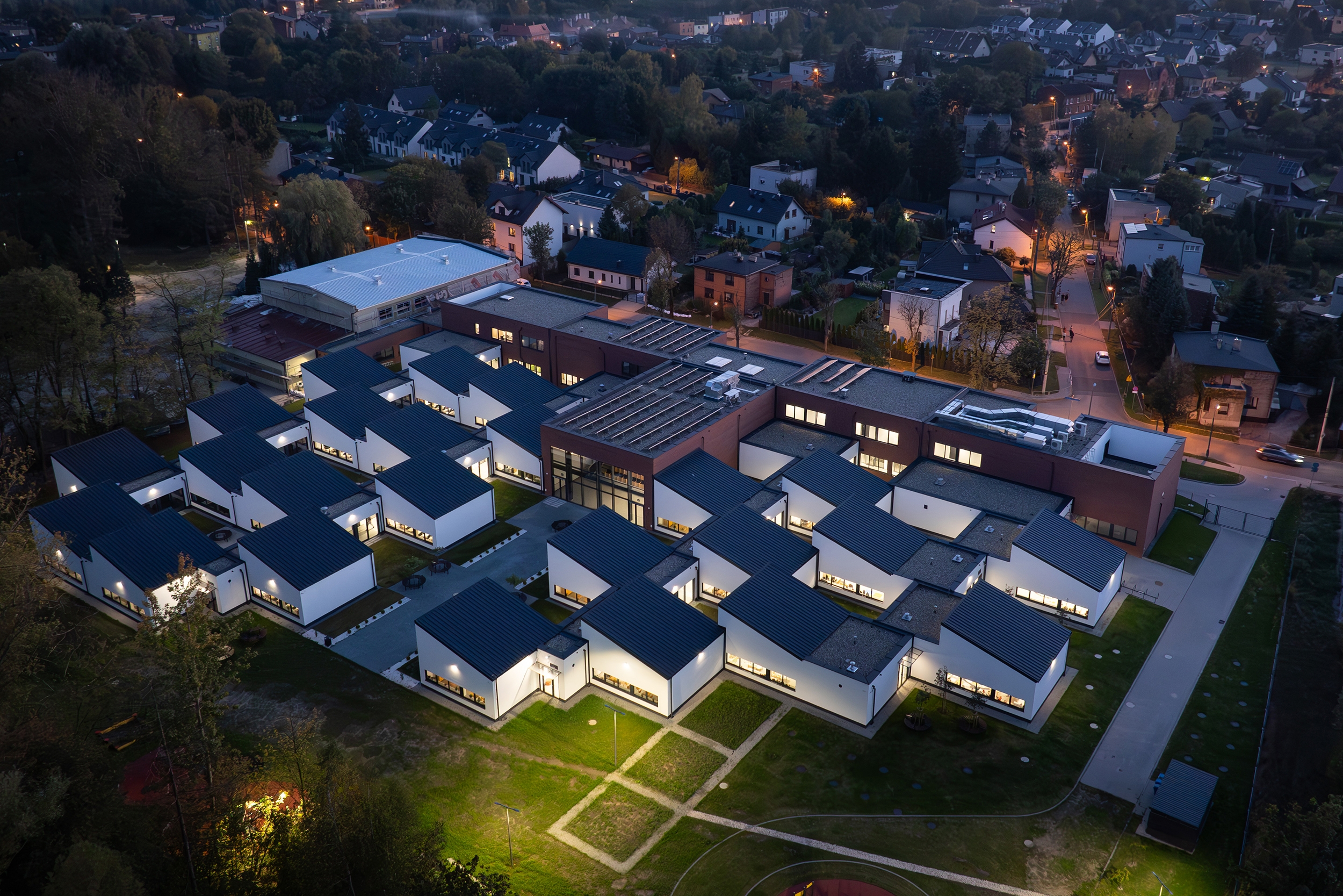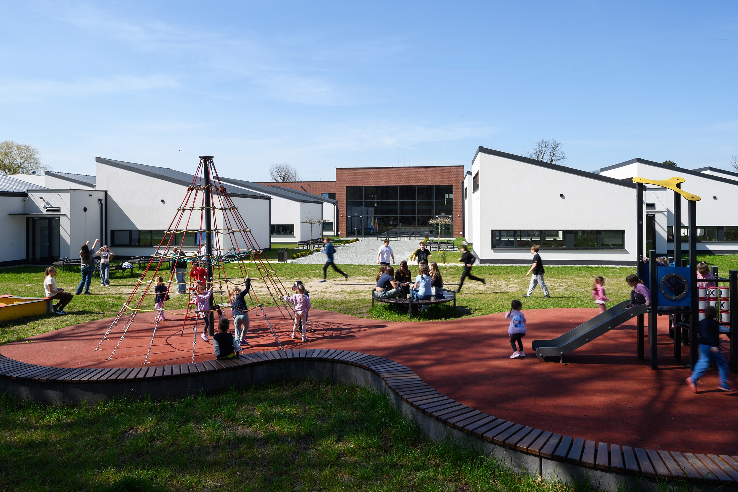Built on land compromised by decades of coal mining, the new school in Ruda ?l?ska, adapt a communist-era prefab whose 5 % tilt and jammed doors made daily life—and even serving soup—unsafe. The modern, fully geology-adapted facility eliminates those hazards and demonstrates how damaged sites can be transformed into functional, resilient community assets.