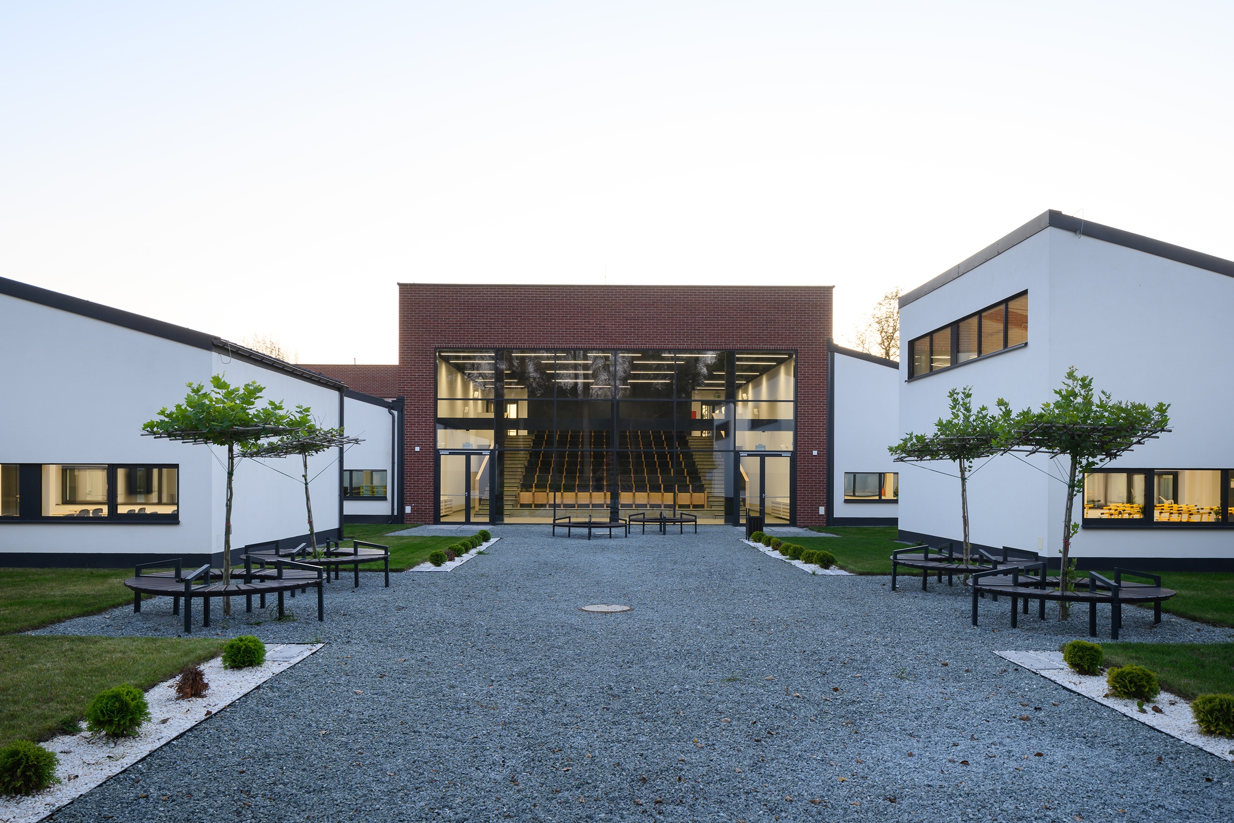 The school’s modular layout places each ground-level classroom in its own segment, so if mining-related ground shifts occur, individual modules can be realigned without disrupting the rest of the building. Generous courtyards and atriums between these modules double as green social hubs, boosting comfort, well-being, and a daily connection to nature for students and staff.