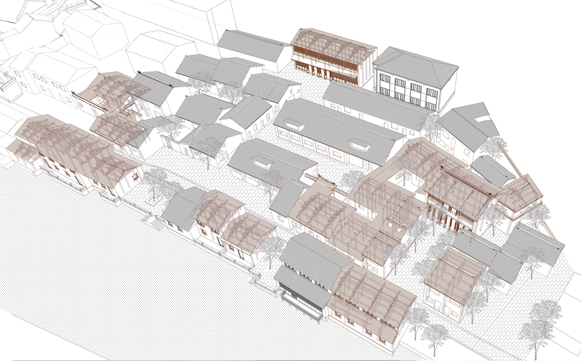 The principle of the regeneration design is "prioritize analysis over intervention". Through in-depth study, identify the construction methods and preservation status of each structure. After removing concrete roofs and illegally built additions, recreate the spatial frameworks of the sauce workshop.