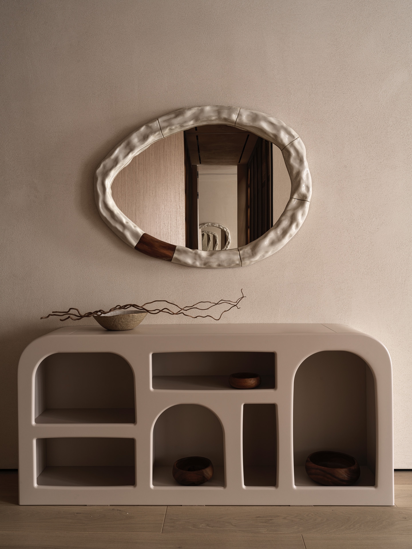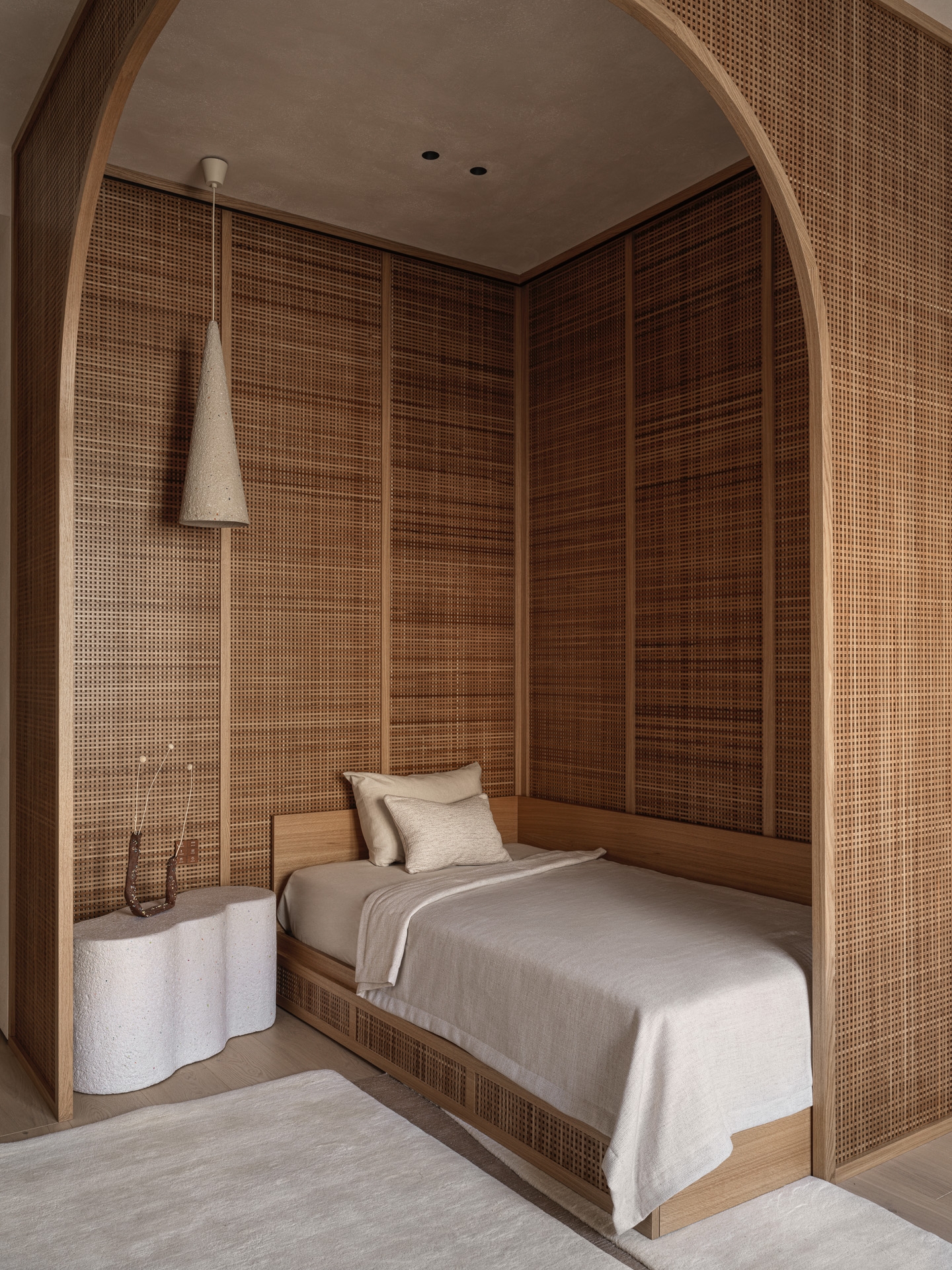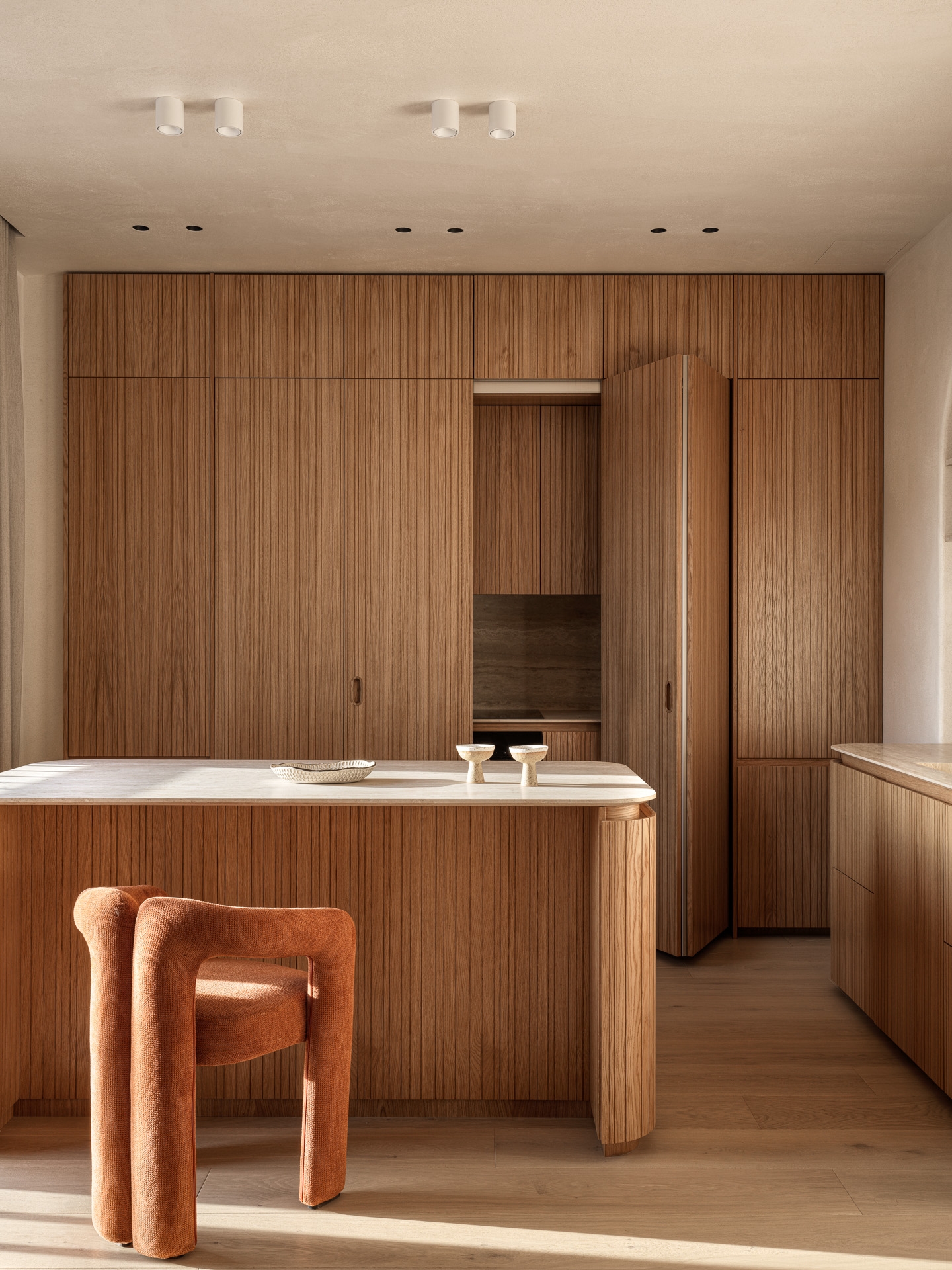 The project was a real challenge for me - to create an interior in the Japandi style, which at the time I started work was still rare and unusual for residential properties. The design is based on natural materials, textures and calm natural shades. Many elements - from lamps to decorative panels - are handmade according to the author's sketches, which gives the interior a special uniqueness. Among them are ‘stone’ lamps, ‘rocks’ on the walls, felt and wool products and art objects. This creative approach filled the space with warmth and soulfulness. I make interiors as if for myself. As a result, we got the most logical and comfortable configuration of rooms, where each element of the interior is filled with meaning and carefully thought out. This project became not just a job, but a real creative union between the designer and the clients. The result is a timeless interior.
