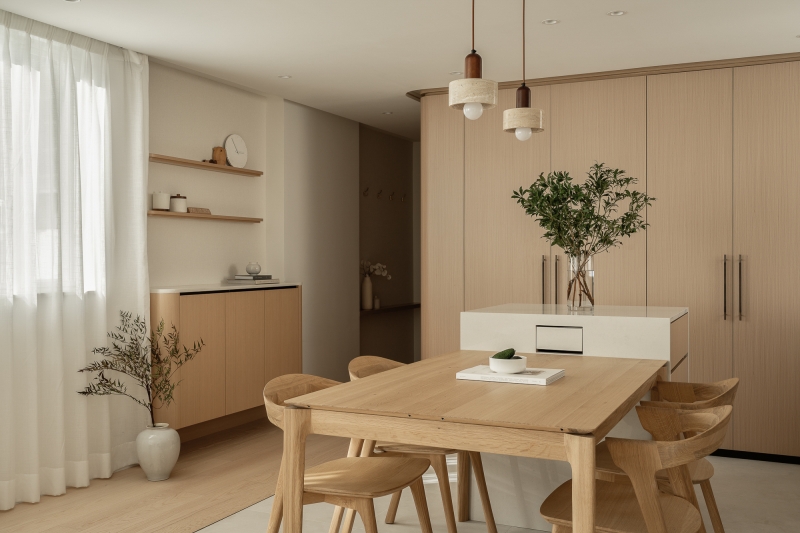 A Home of Light, Timber, and Intergenerational Harmony. Duke Garden is a refined study in how light, materiality, and careful spatial planning can respond to the evolving needs of a multi-generational household. With a guiding focus on longevity, warmth, and clarity, this reconfigured residence delivers a layered living experience shaped by daylight, subtle textural contrast, and function-led detail. Responding to the clients’ desire for a timeless family home, the design team restructured the existing layout, transforming a three-bedroom configuration into a four-bedroom plan, adding a helper’s room, and a guest powder room.
