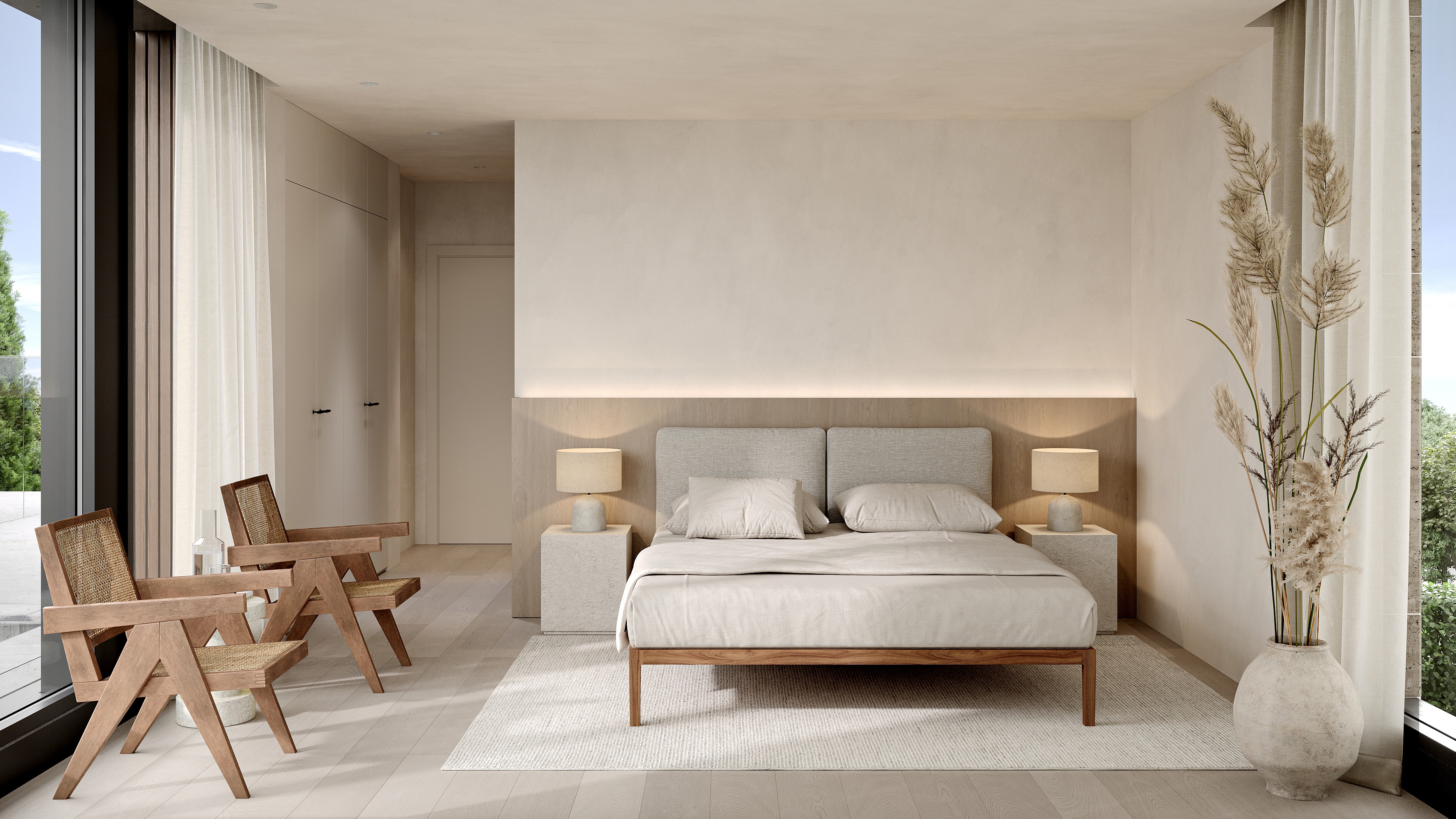 The interior stands out with its clean lines and neutral tones, creating a serene and relaxing atmosphere. The color palette is thoughtfully chosen to allow each owner to add personal touches and transform the space into a reflection of their individuality.