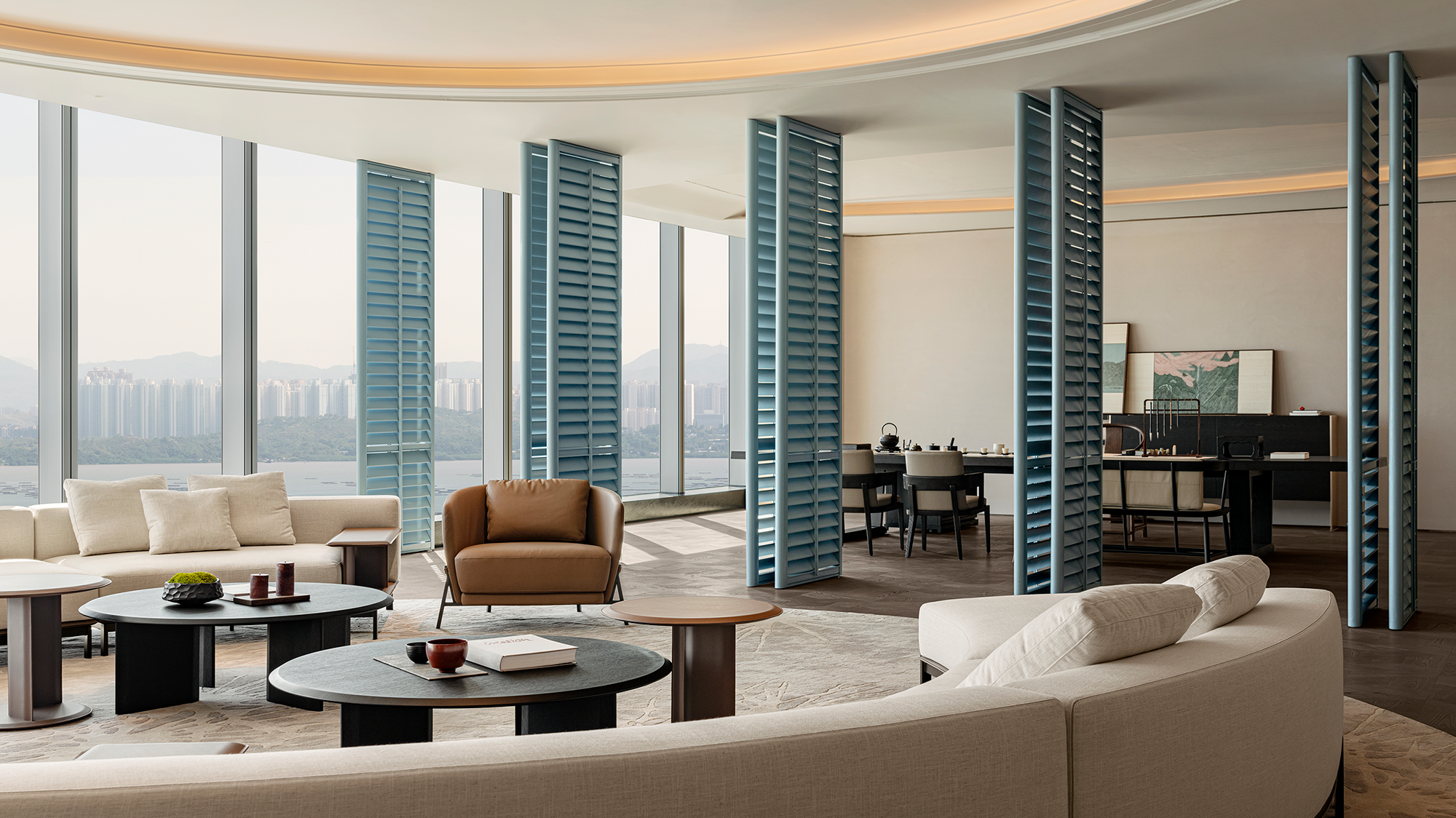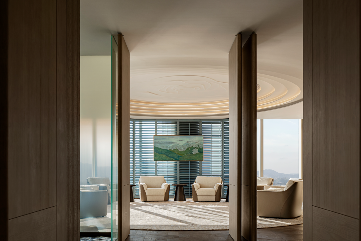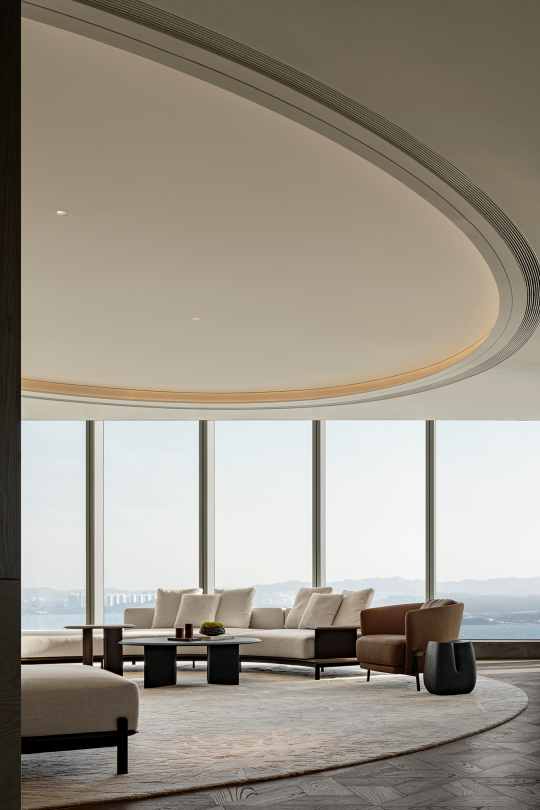 Located in the heart of Shenzhen’s Super Headquarters Base, the project integrates global corporate clustering, urban cultural landmarks, international exchange hubs, and a world-class coastal public realm — setting a benchmark for the city of the future. The SIC Shenzhen Bay Ruiyun Center Exhibition Hall & Lounge spans an interior area of 1,850 sqm. The design is rooted in a deep understanding of the clubhouse typology, blending art, culture, and contemporary lifestyle to foster diverse social interactions. Drawing inspiration from Shenzhen’s local “marine culture,” the design abstracts this regional essence into a symbolic expression of the new era. The space aspires to create a dynamic and inclusive showroom ecosystem, offering a model for Bay Area living.