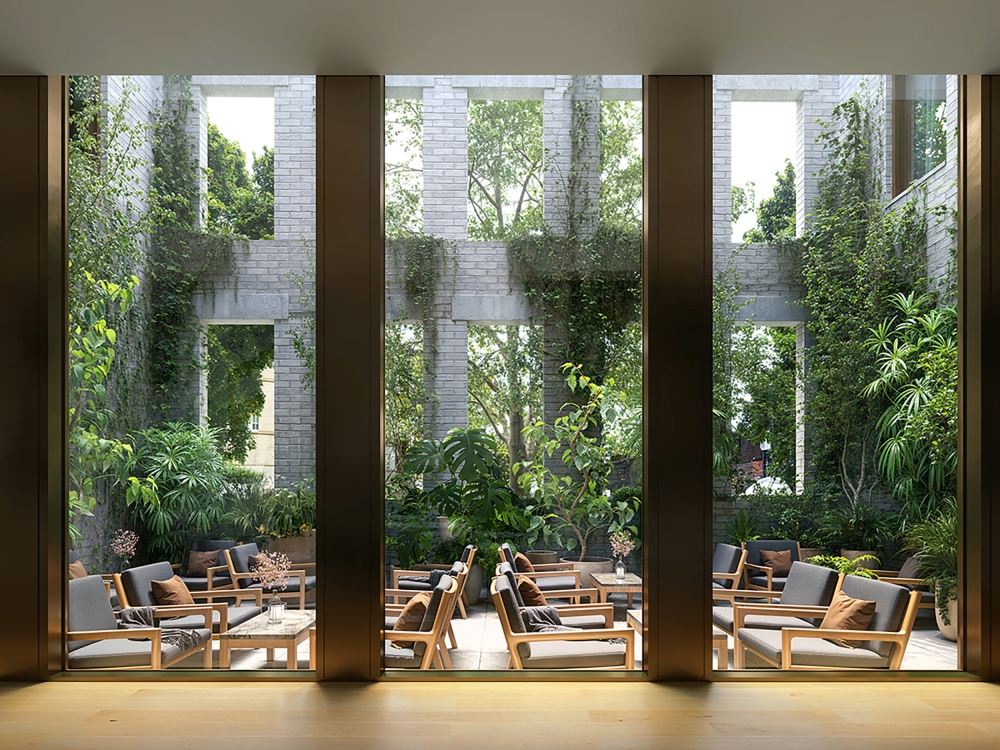 Guest suites will comprise the upper floors of the formerly industrial Post building, with additional guest rooms, amenity areas and the main corridor located in the companion tower. A large, open void in the addition brings air and na