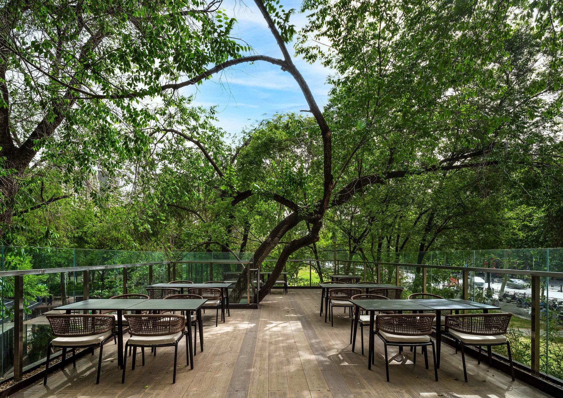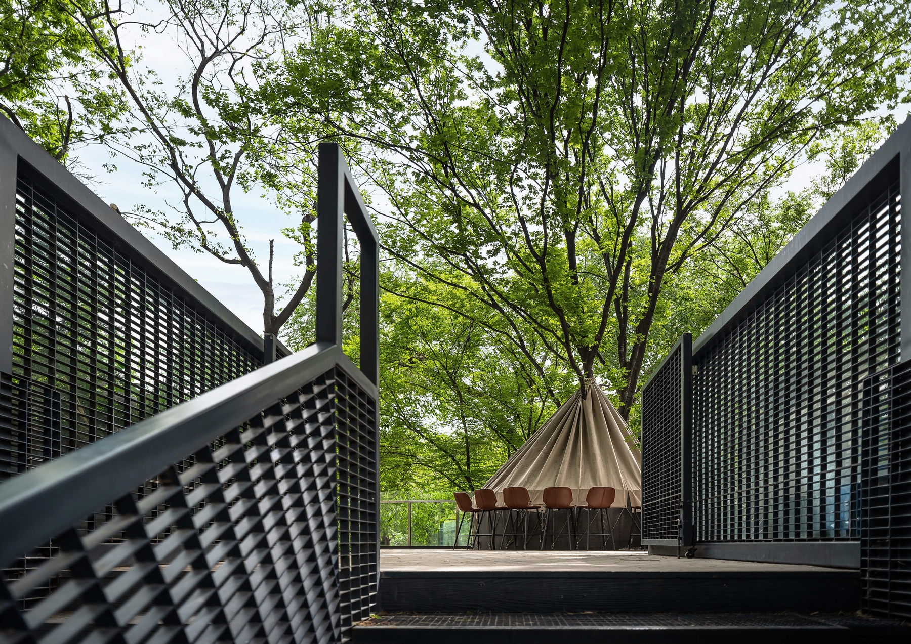 The space enhances public life by supporting multiple user types and rhythms. From solitary tea to group gatherings, it provides shaded terraces, private nooks, and open lawns that encourage diverse social interactions. The café extends park use into a calm, immersive civic experience.
