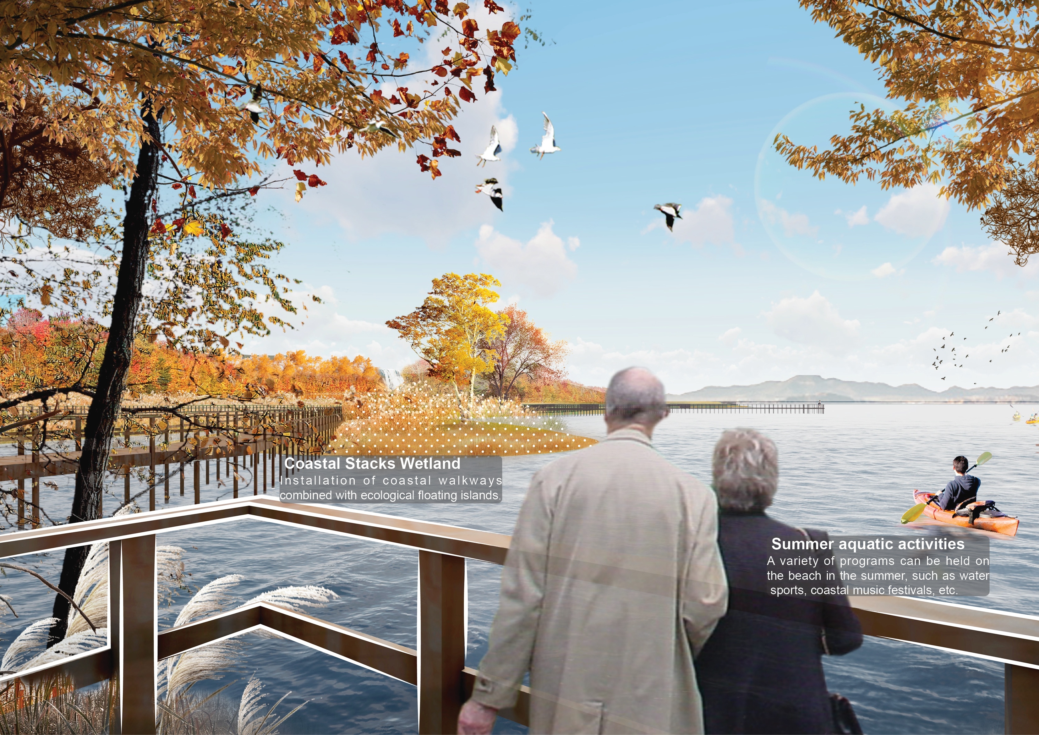 Return to the Riverbank is a vision for the next generation of land management on the east bank of the St. Lawrence River. The future Littoral Est will provide a model for urban development and rewilding in Quebec based on the interdependence of contemporary climate activists (including people, animals and plants). By connecting the lakefront to the city with interconnected green infrastructure, expanding parkland and softening the shoreline, the plan envisions a place where the city and nature are inseparable.