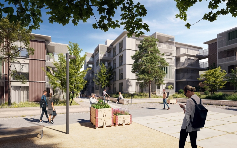 The Waldstadt im Pantli reinterprets the archetype of forest settlement while combining architectural clarity with ecological sensitivity. Switzerlands first forest village follows two orthogonal axes: urban alleyways contrast with natural meadow & forest edges. Each unit benefits from this duality—designed to open both toward communal, active zones and calm, green landscapes. The hybrid timber construction & varied facades emphasize individuality while forming a cohesive whole. The entire site remains car-free on ground level creating a seamless extension of the surrounding natural landscape. At the beginning of the 20th century, Pantli was a semi-self-sufficient workers' settlement area for several decades. After it was cleared for a project that never materialized, the site remained unused. Up until the «Waldstadt» project revitalizes the area with its hybrid, integrative architecture using natural materials and offering diverse housing for various residential needs—blending into nature while supporting community and quiet, safe living. Public infrastructures like a bistro, childs daycare or the public quarter hub are embedded in the spatial framework to promote community life.