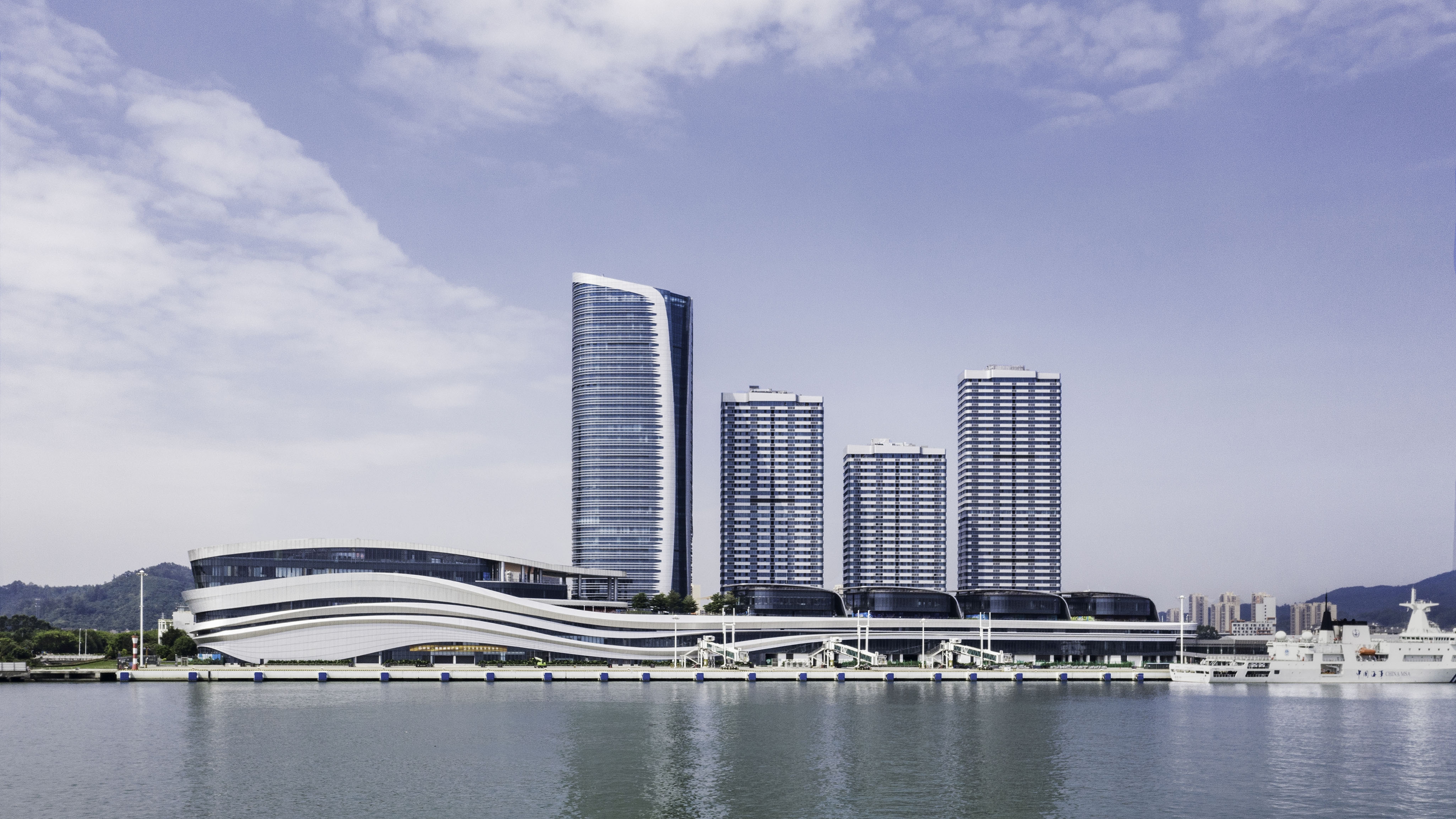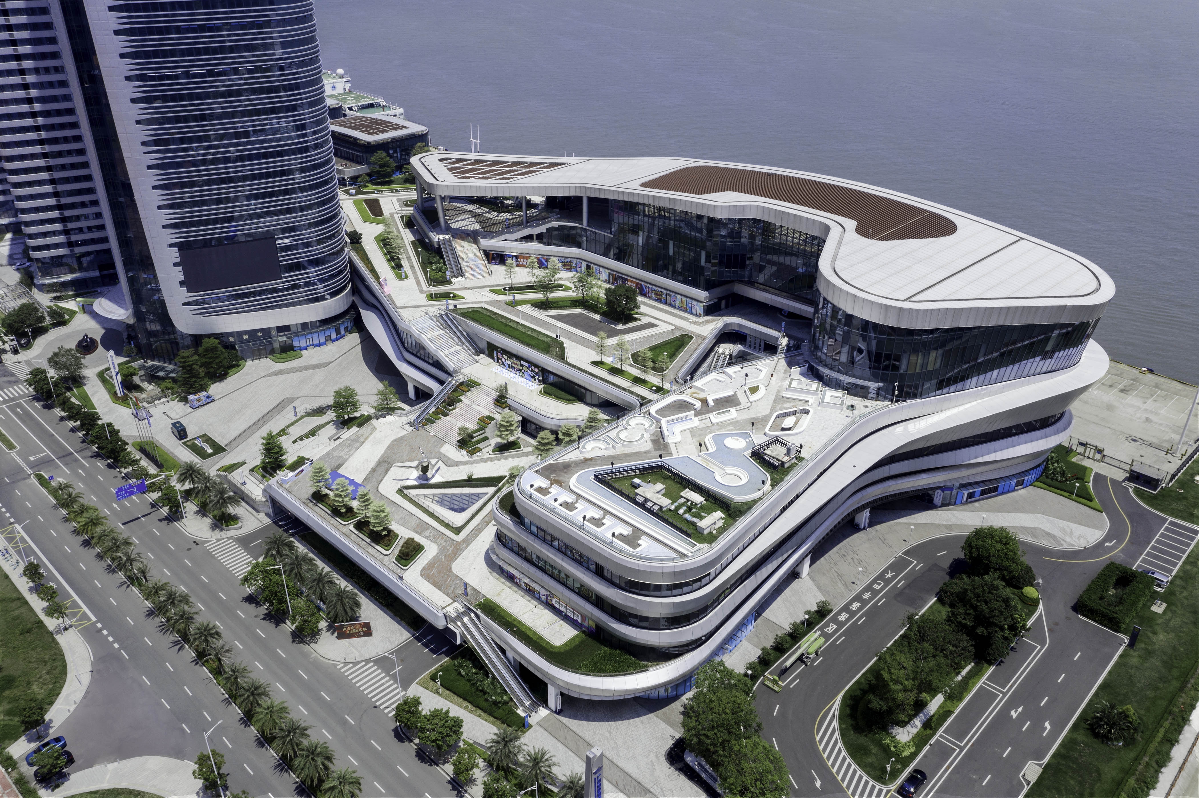 Inspired by the design concept of "The Silk Road: A Whale Ship Setting Sail," the port resembles a colossal vessel poised at the gateway of the Greater Bay Area. Its façade features a multi-dimensional curved ribbon design, drawing inspiration from silk to symbolize its role as a launching point for the New Maritime Silk Road. Positioned as a world-class coastal ecological transportation hub, the project integrates cruise tourism, cultural experiences, seamless multi-modal transportation connectivity, as well as cruise ship manufacturing and maintenance into a comprehensive industry chain.