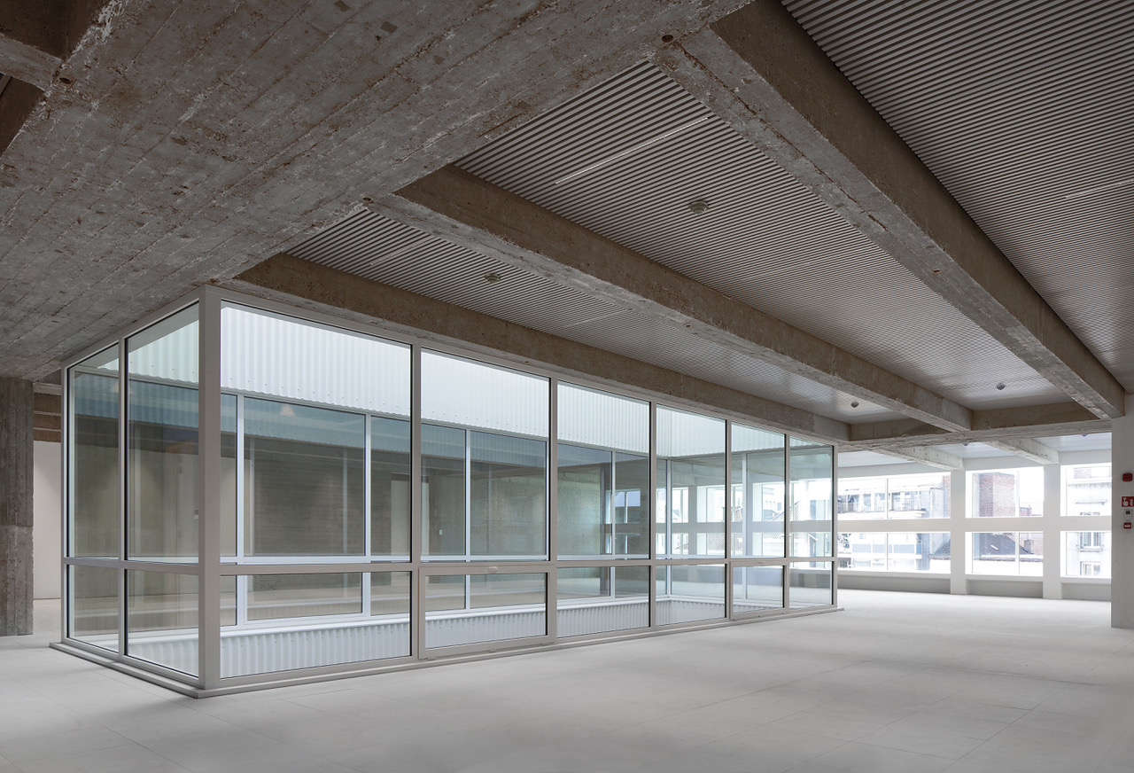 Throughout the project, respect for the building’s DNA remained paramount. Later alterations were removed, reinstating the clarity of Stynen’s vision. Original columns once hidden are now celebrated, while two new atria draw daylight into the heart of the structure, enhancing spatial quality and circulation.
