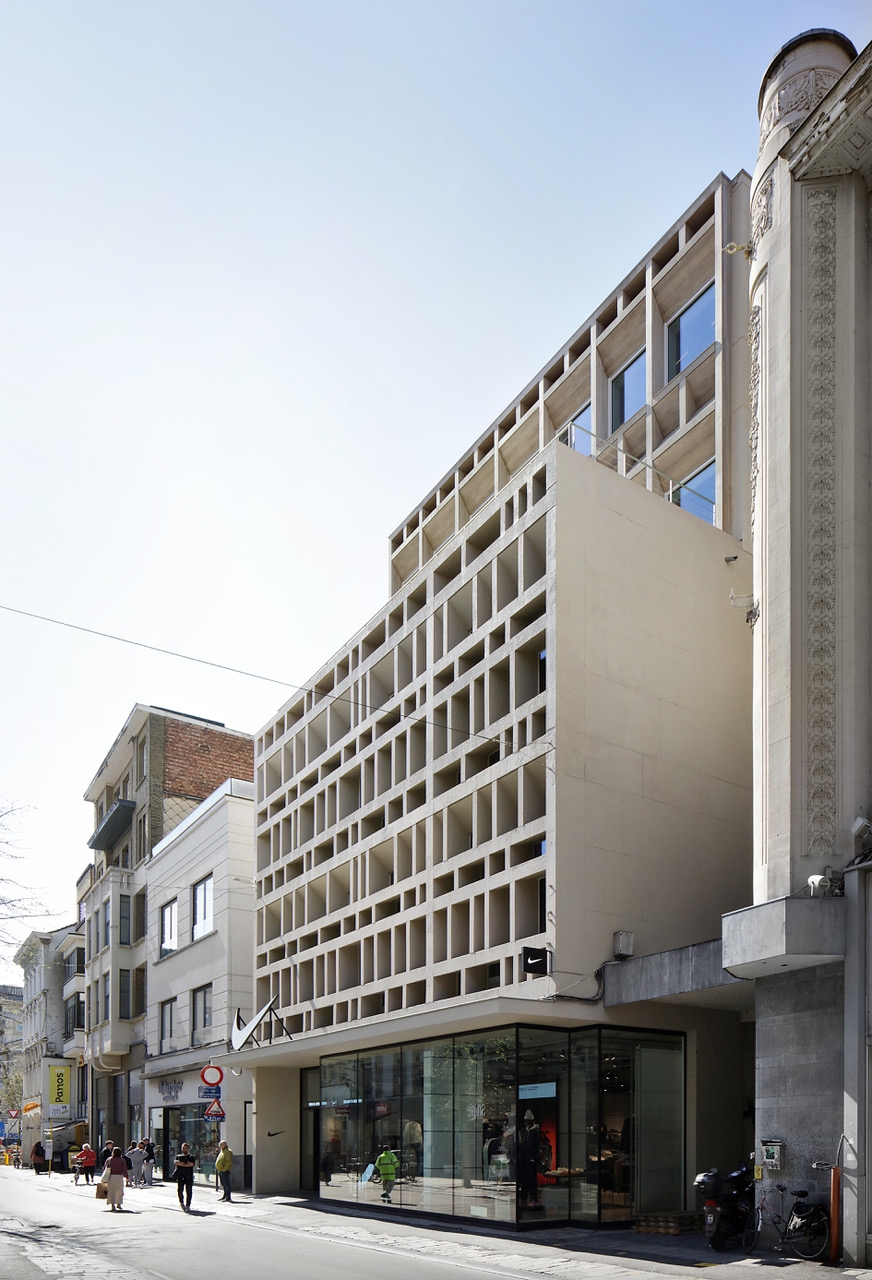This transformation of the former Fnac building in Ghent restores and reinvents a brutalist masterpiece by Léon Stynen and Paul De Meyer. Originally built in the early 1960s, the structure challenged its time with an expressive concrete grid and open façades. The building was reimagined for contemporary use, creating a vibrant blend of retail and office spaces. Two lightweight rooftop extensions, crafted in steel and timber, reinterpret the original concrete language with a refined, modern sensibility.
