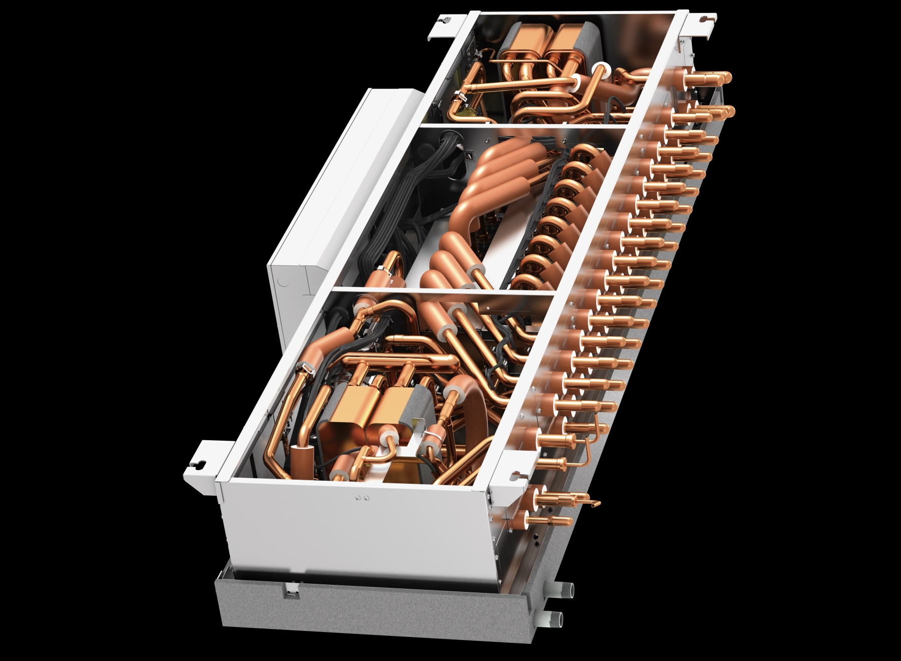 Hybrid VRF is a cutting-edge two-pipe variable refrigerant flow (VRF) system that heats and cools simultaneously without the need for refrigerant in indoor spaces, instead replacing it with water between the Hybrid Branch Circuit (HBC) Controller and indoor units. The Main HBC Controller supplies both cold water and hot water to the refrigerant-free Sub-HBC Controller, which then feeds the water to up to 16 connected zones. Hybrid VRF is a truly integrated, modern, quiet, and energy-efficient solution for occupied multi-zone commercial spaces.
