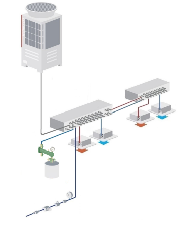 Hybrid VRF is quick, easy, and flexible to design and install using the same outdoor equipment and control solutions as other CITY MULTI VRF systems from the same manufacturer. Furthermore, Hybrid VRF’s system architecture makes phased installation and expansion possible, while maintaining the high levels of seasonal efficiency expected with VRF technology.