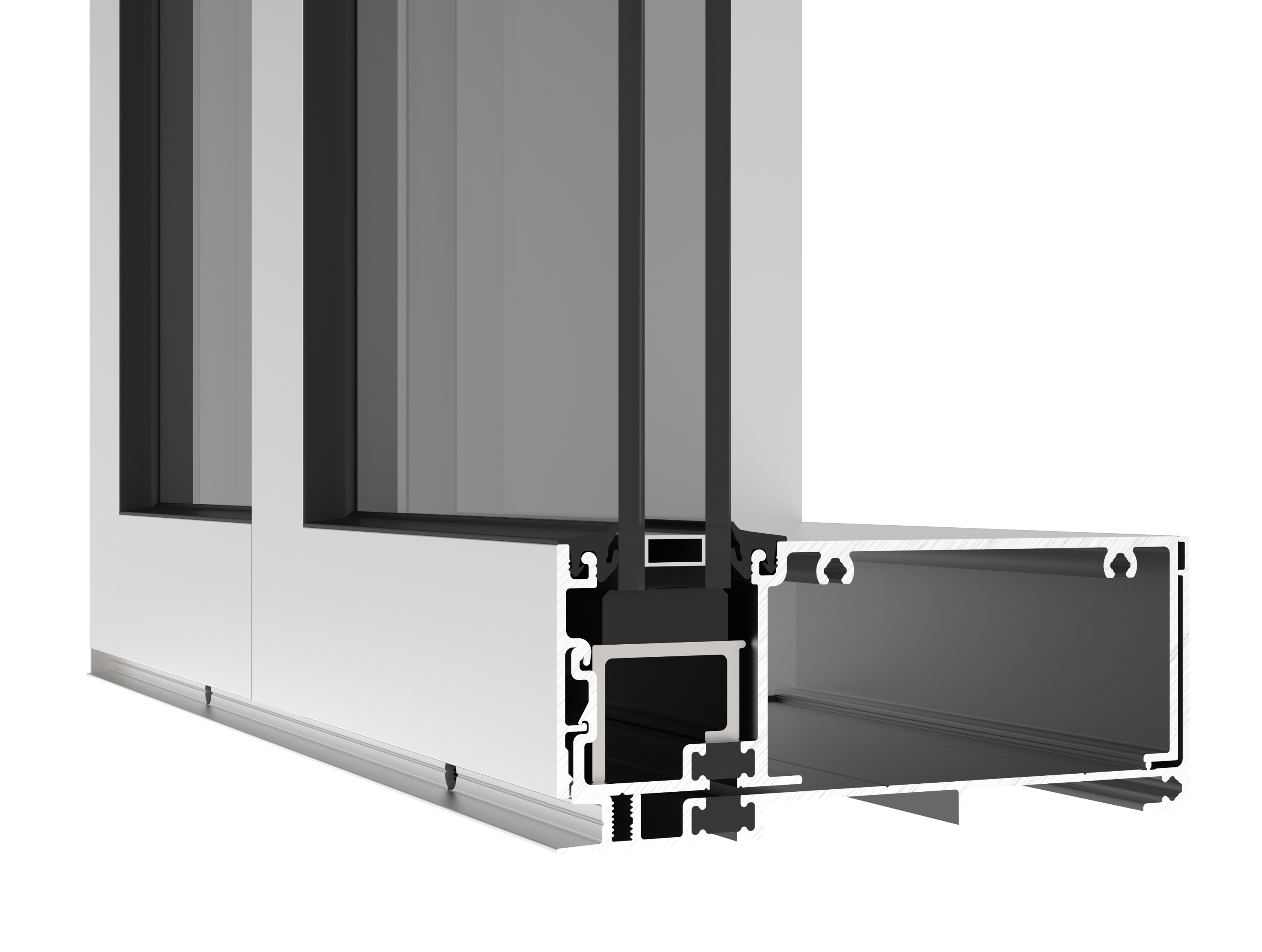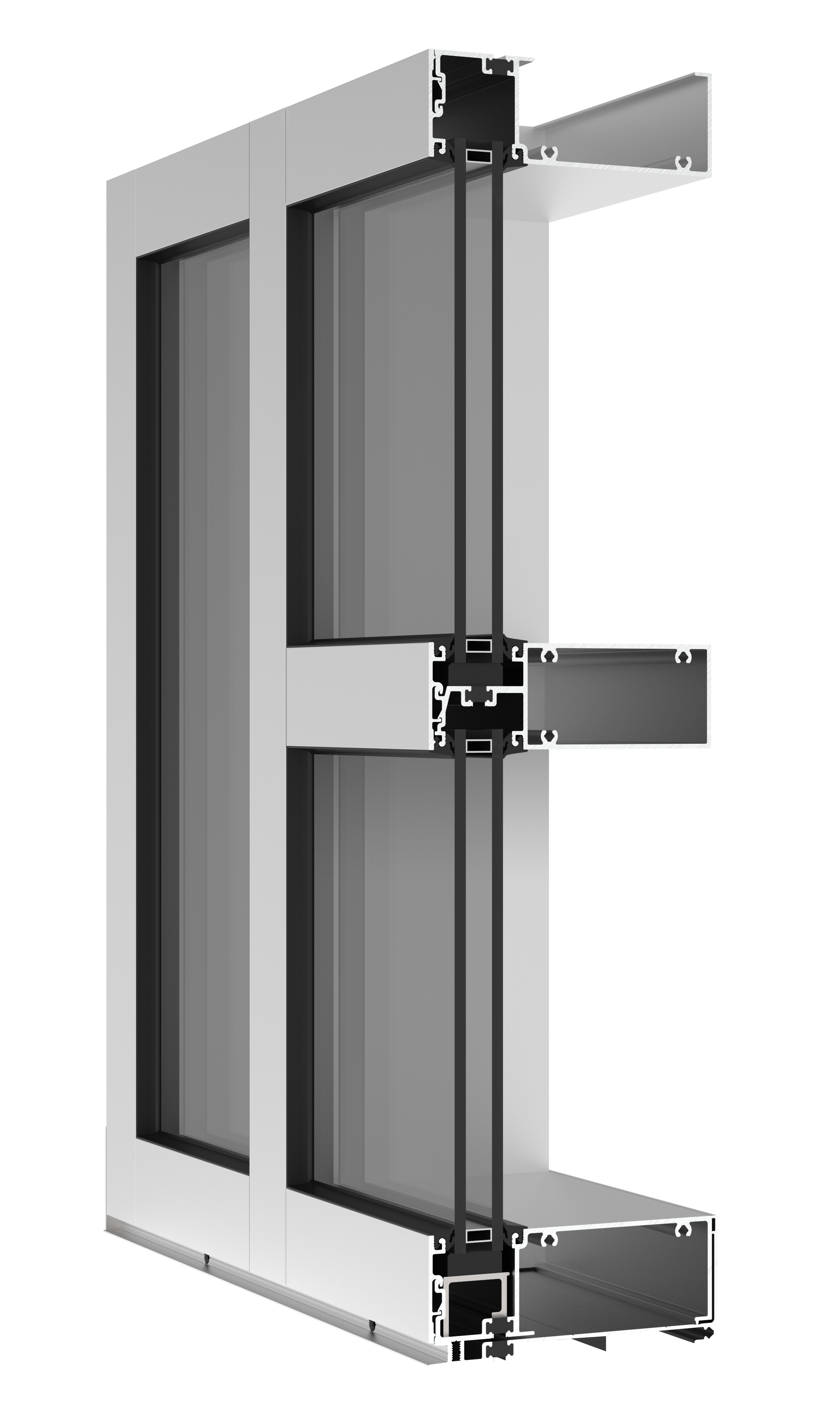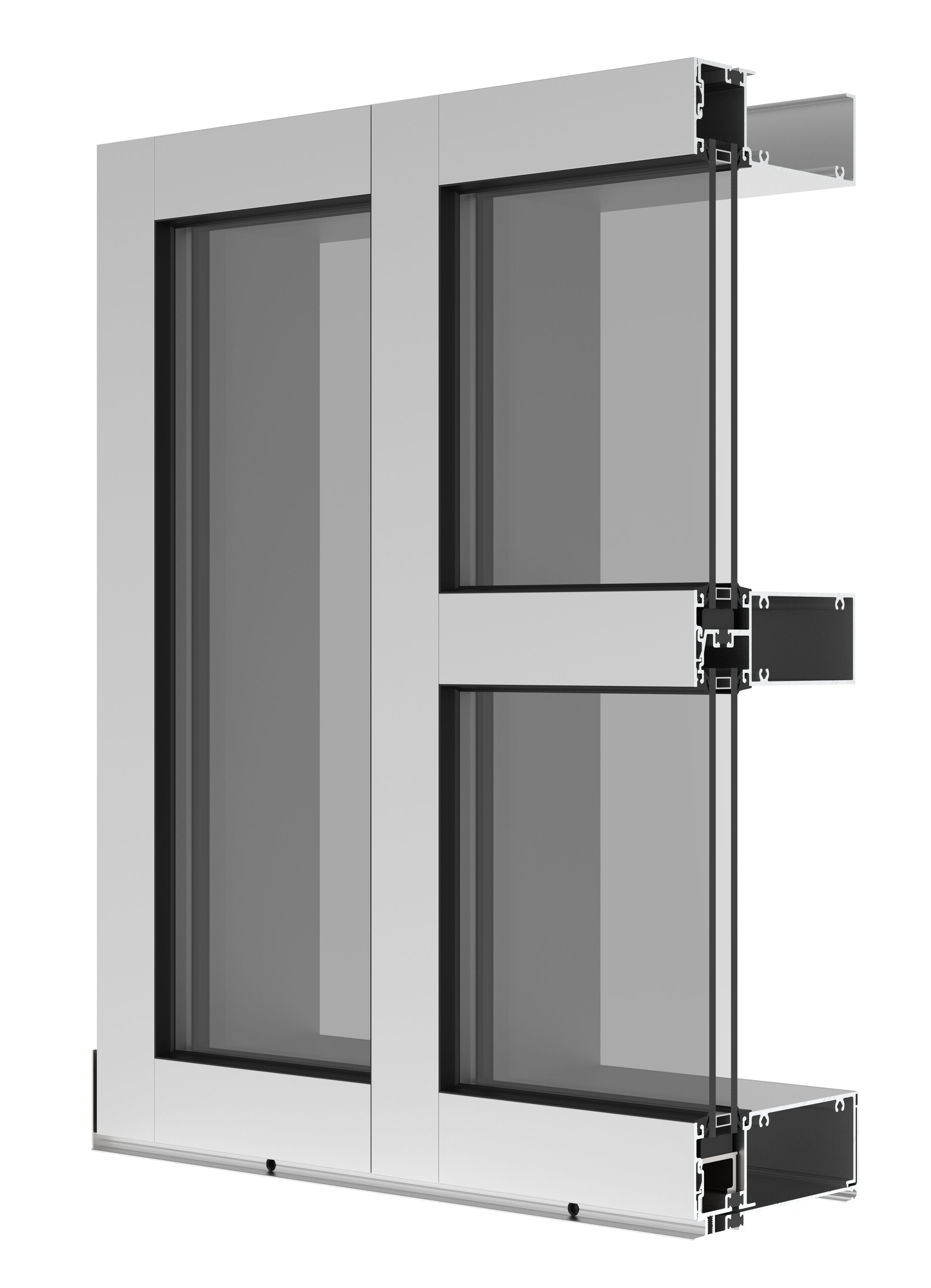Curtain wall look: Glass sits at the front of the system, giving a sleek, contemporary appearance.