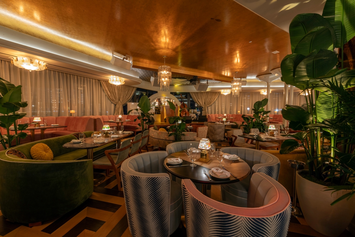Embracing the cabaret-style layout, Delilah features intimate tables, dancing platforms, and a prominent stage, creating an ambiance where guests enjoy their meals and live entertainment, a classic motif of Miami supper clubs.