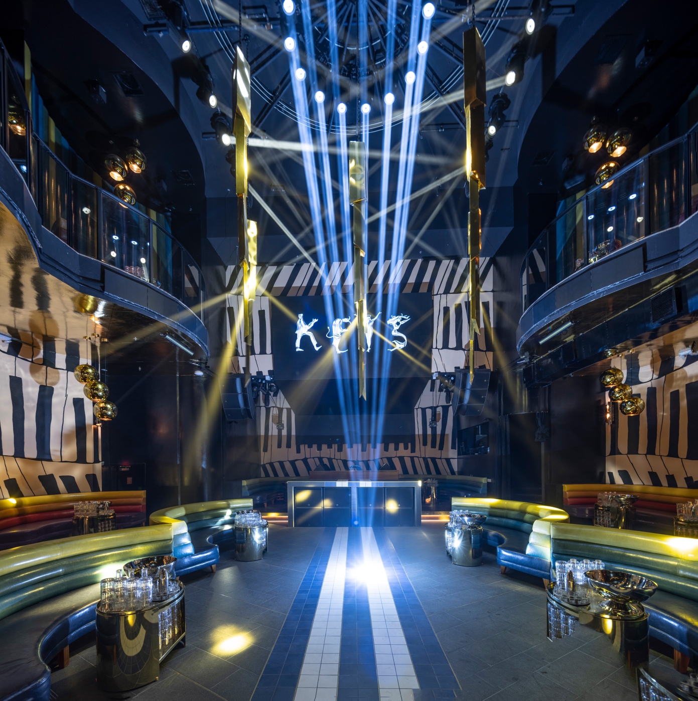 The core of Keys is emulating the concept of sound. Sound through colors, sound through shapes. The architecture creates a pulse that drives the energy of the night. The lighting at Keys centers around the philosophy of layering lights. Not only is the lighting at Keys a portal that beams down from the ceiling, but it is also a dynamic element that combines with the haze and music to create an electric feeling for the guests.