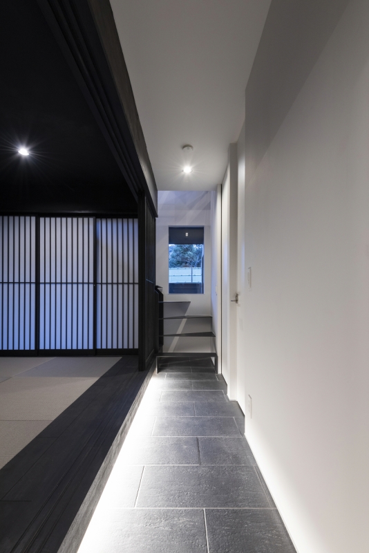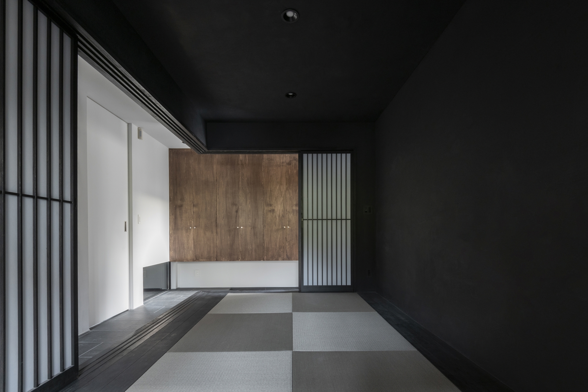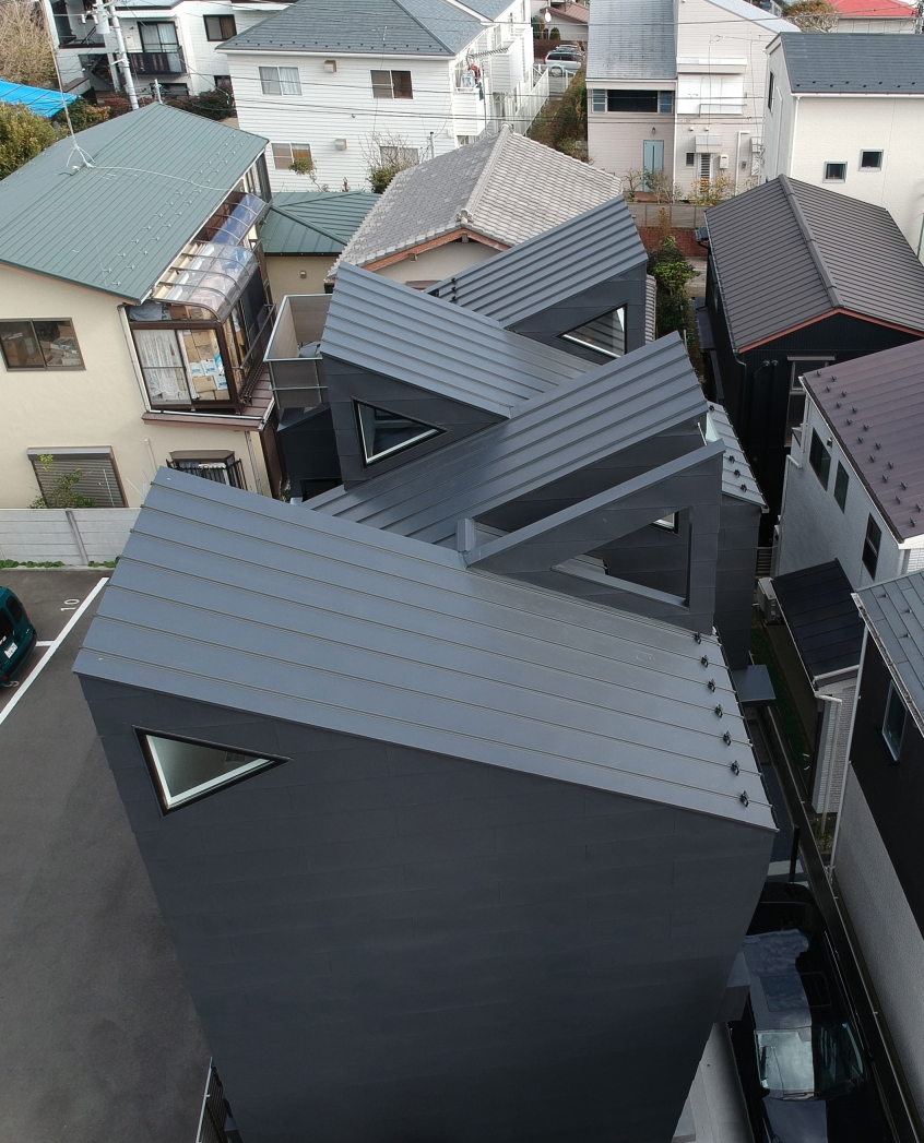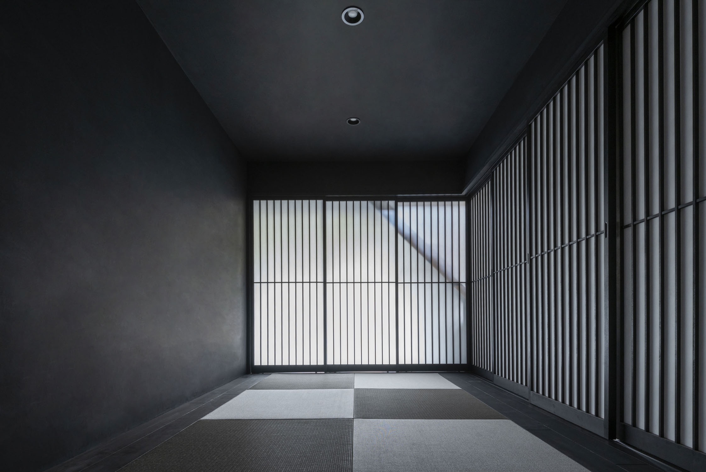 It is close to the Great Buddha in Hase. There is a constant influx of people during the daytime, and after the evening, it is enveloped in silence. On the lower floor, where almost no light reaches, we created a Japanese space that makes the most of the gloom, a meditative space where one can escape from the hustle and bustle of the city. The upper floor is designed to be a space of "movement". The four cores are staggered and the roof slope is alternately folded to create an aperture at the top of the building that allows active sunlight to flow through during the day, and a silent starry view at night.
